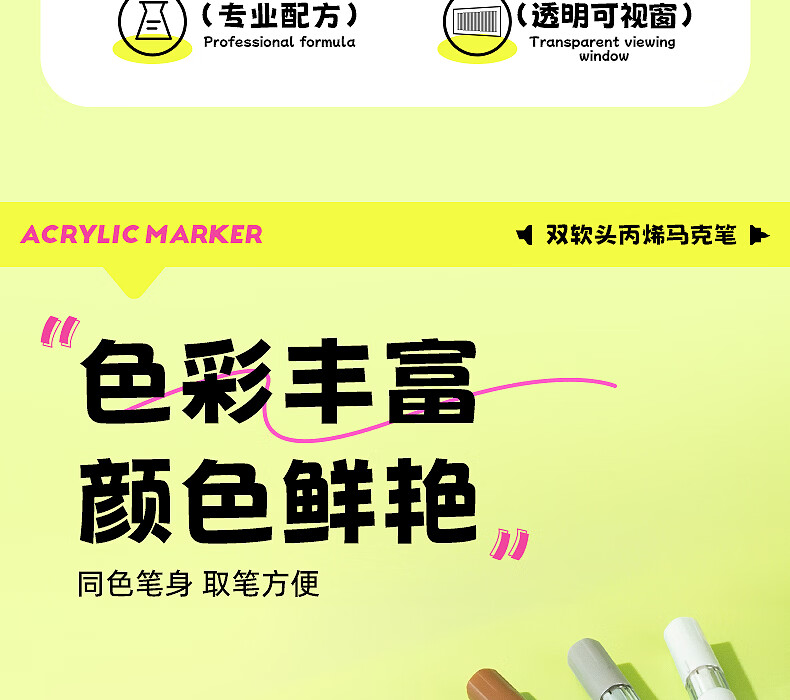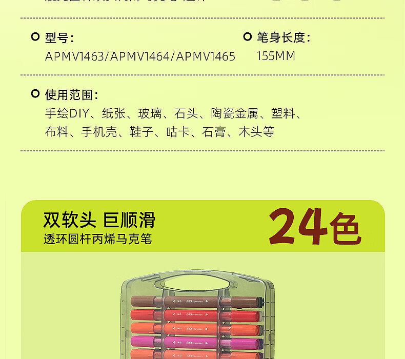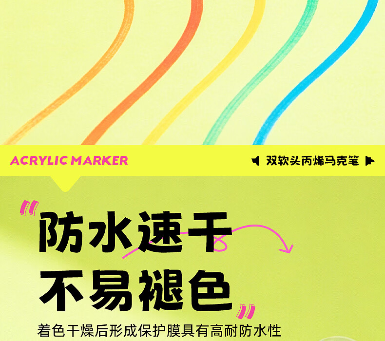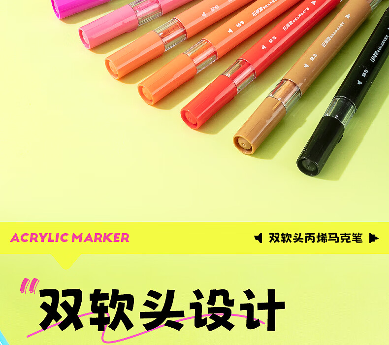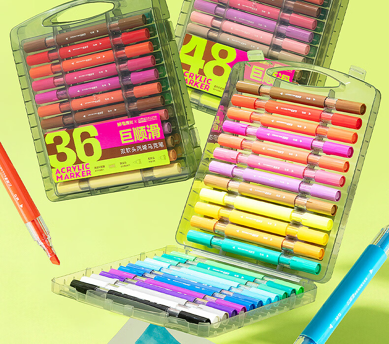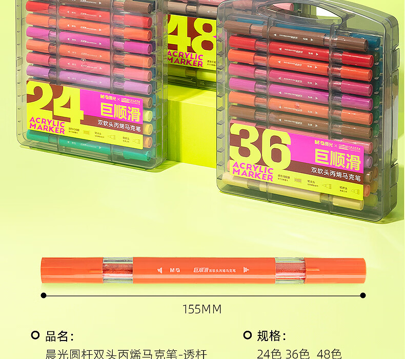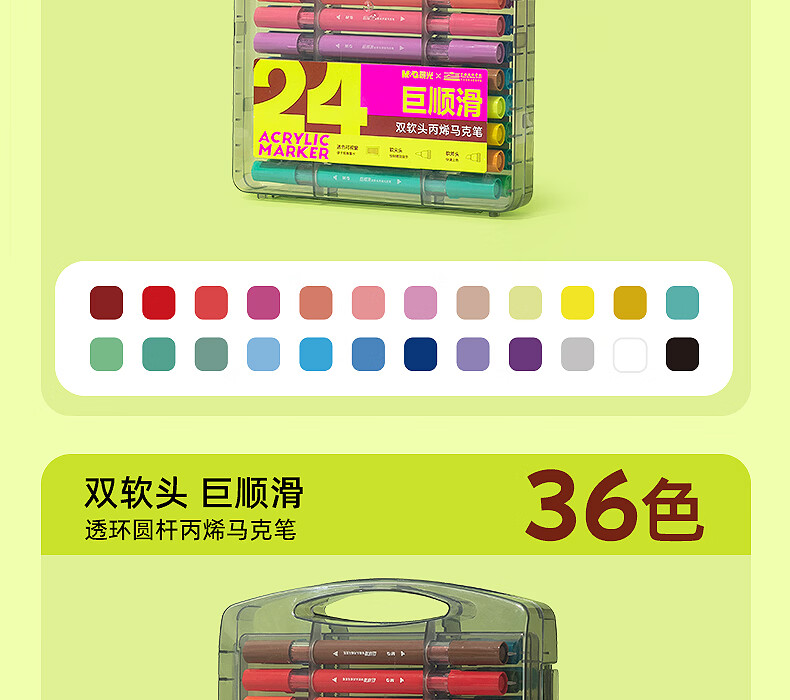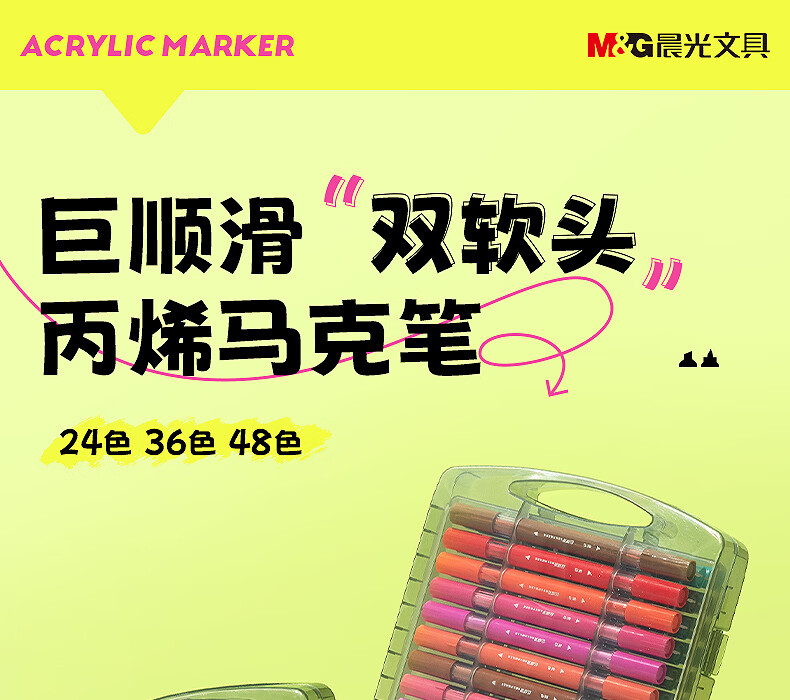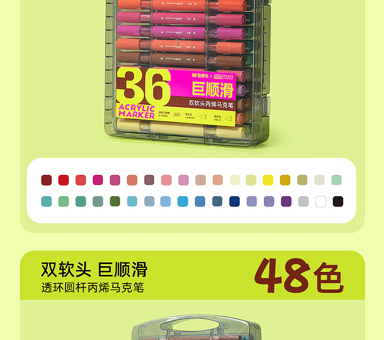晨光(M&G)双软头丙烯马克笔36色巨顺滑安全儿童彩笔荧光笔学生绘画涂鸦生日开学礼物APMV1464
