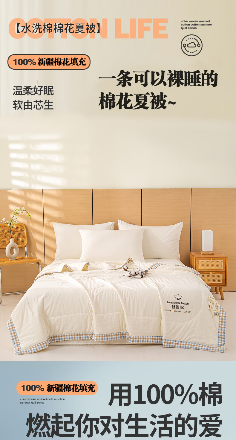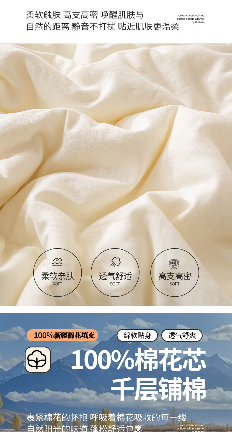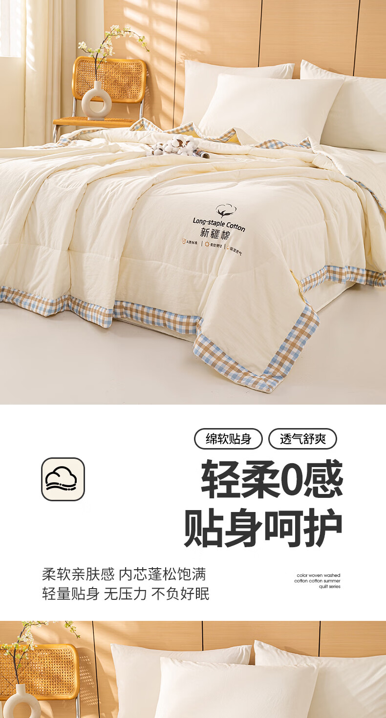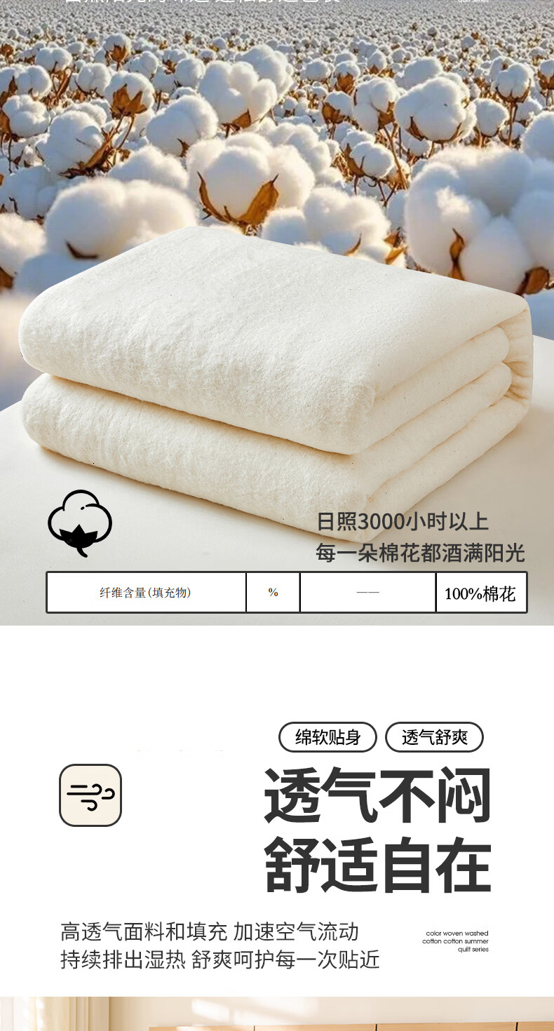 无印良品A类新疆棉花被空调被200x230cm夏凉被子春秋双人家用薄被子可机洗 月光白 【高密柔软 裸肤安睡】 200cm*230cm 单夏被 通用