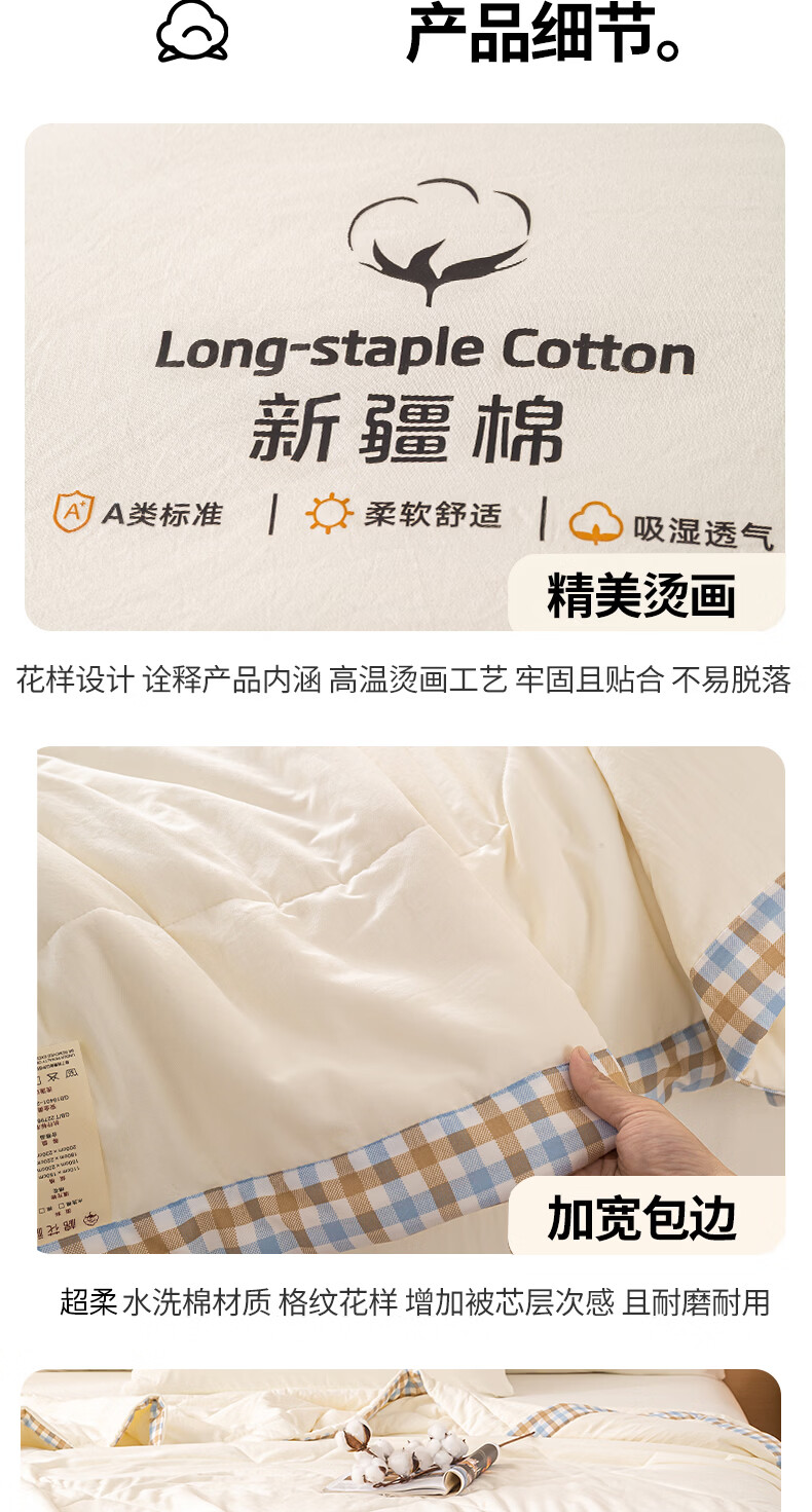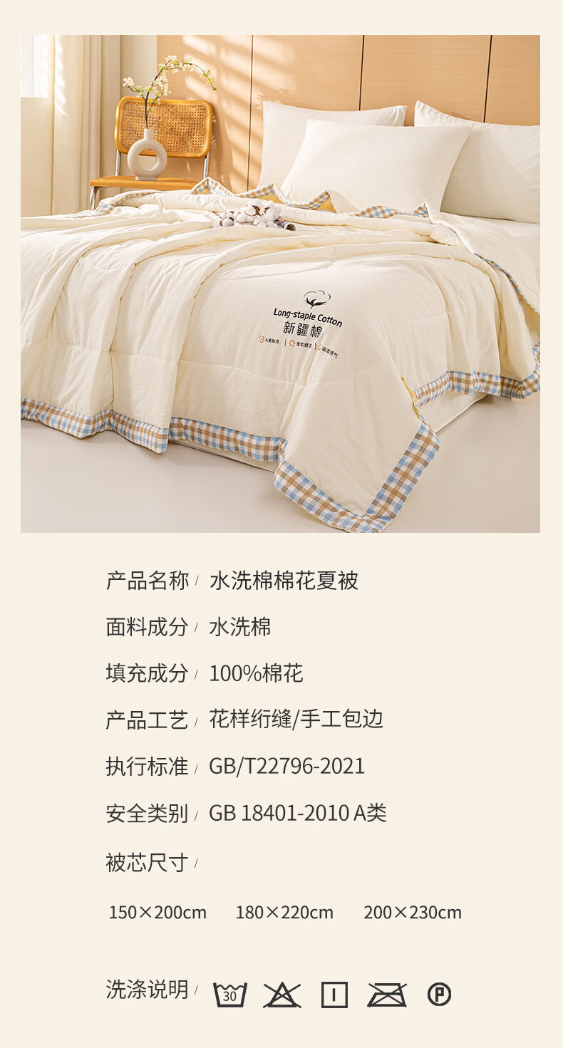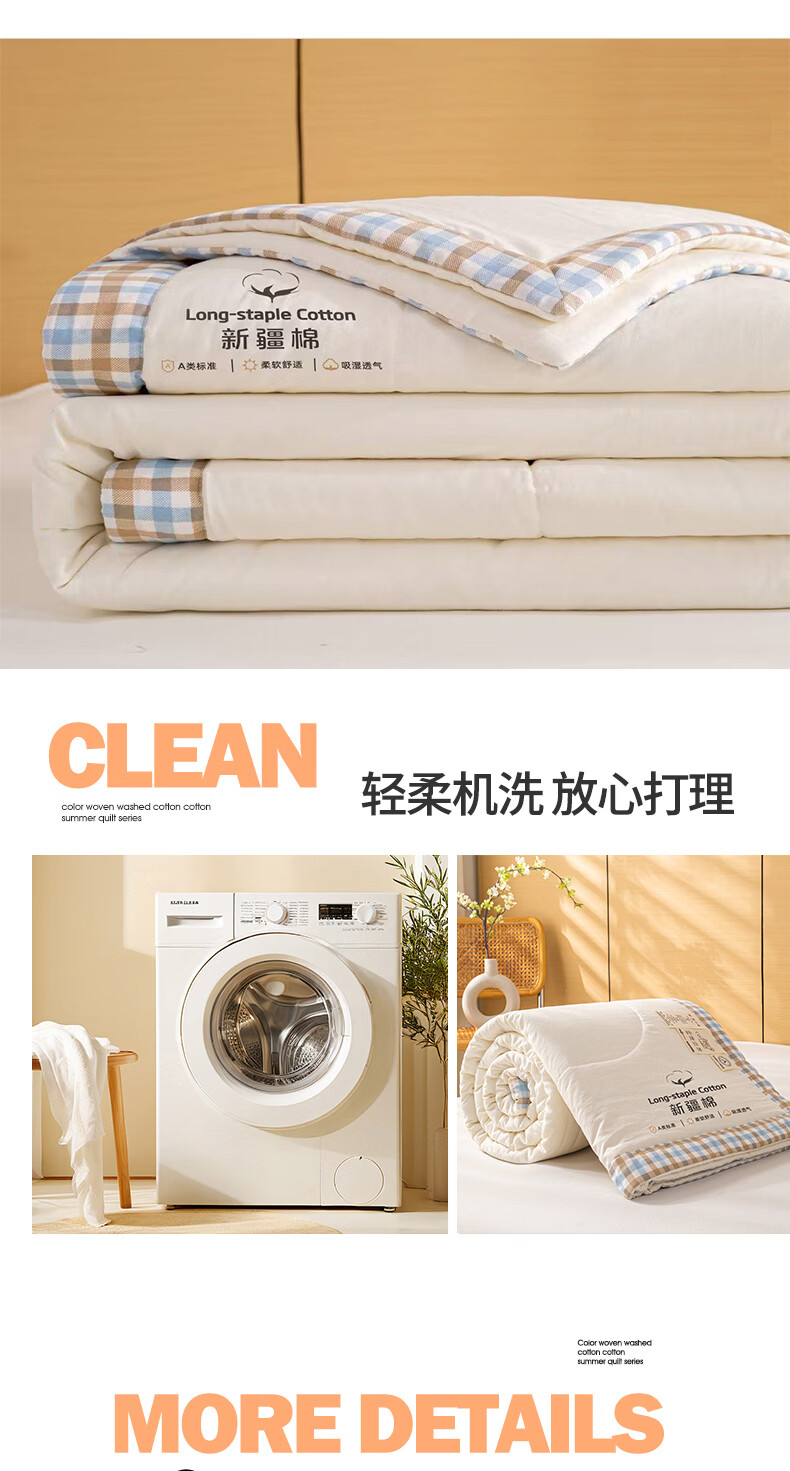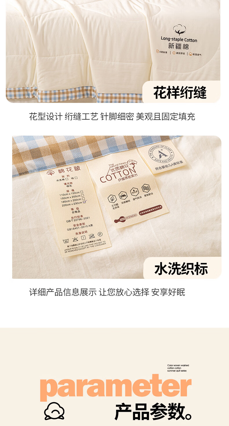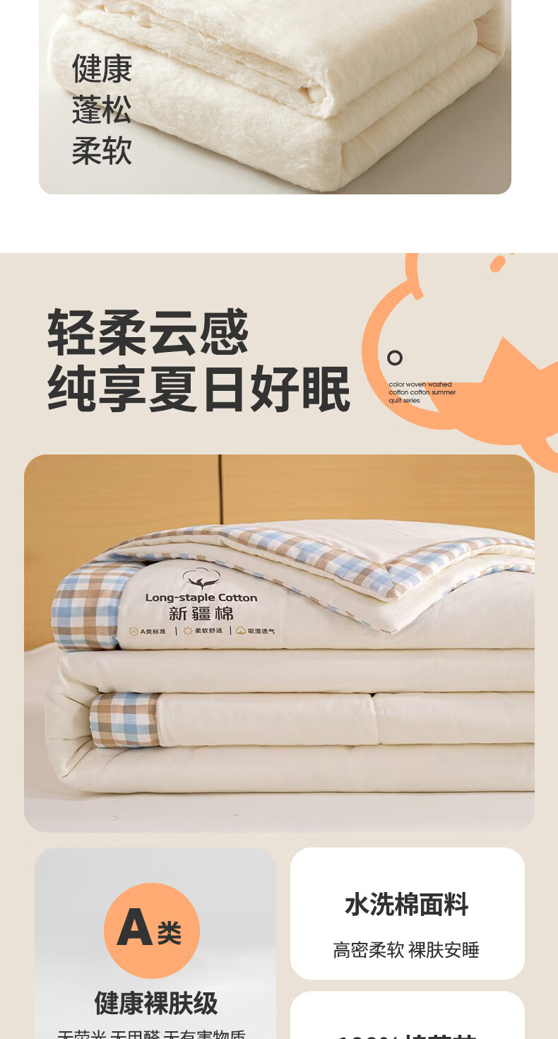 无印良品A类新疆棉花被空调被200x230cm夏凉被子春秋双人家用薄被子可机洗 月光白 【高密柔软 裸肤安睡】 200cm*230cm 单夏被 通用