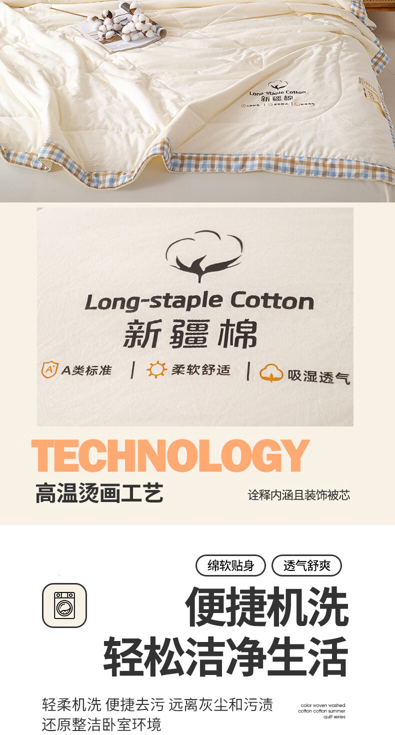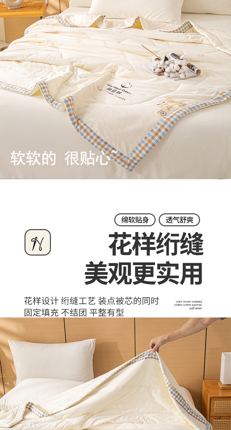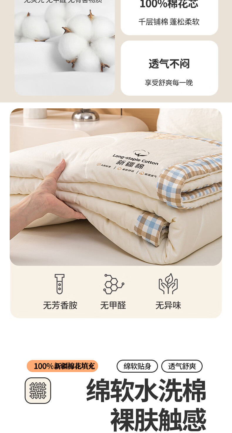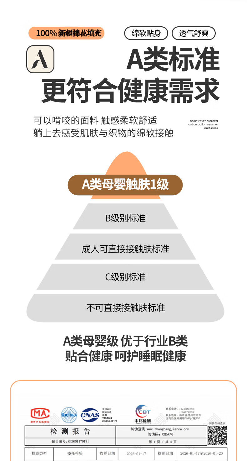 无印良品A类新疆棉花被空调被200x230cm夏凉被子春秋双人家用薄被子可机洗 月光白 【高密柔软 裸肤安睡】 200cm*230cm 单夏被 通用
