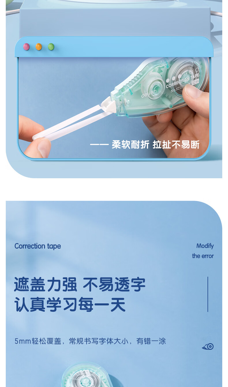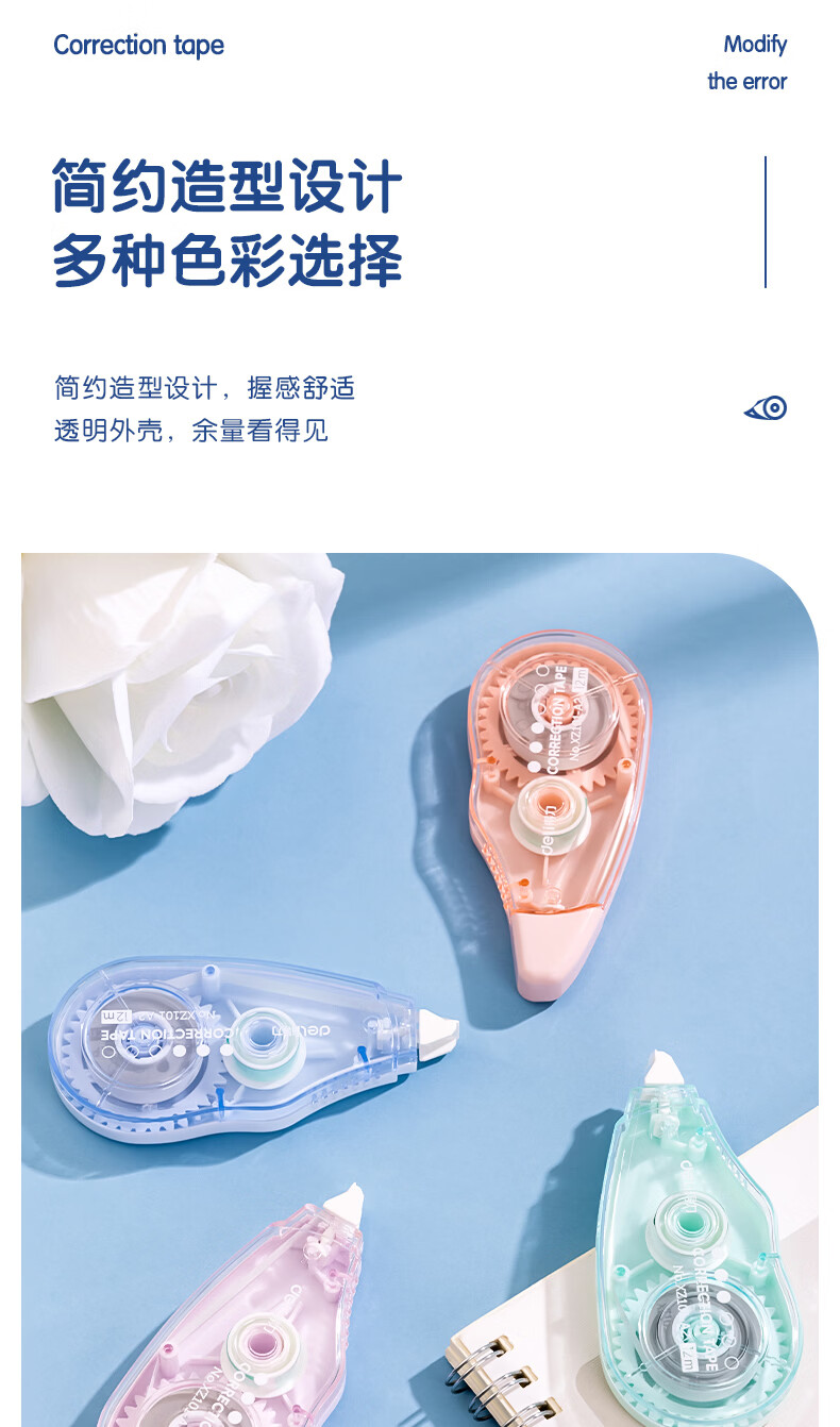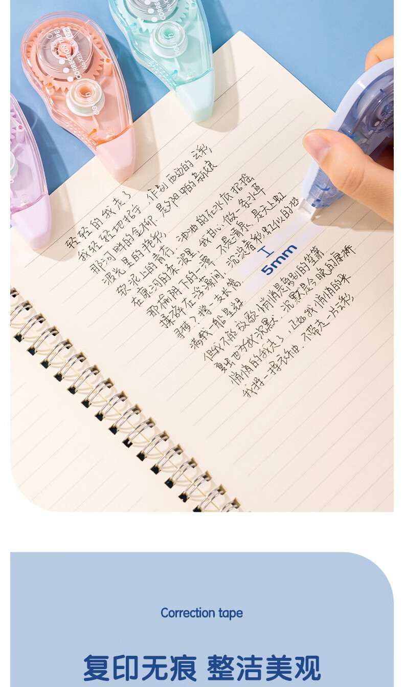 得力修正带学生专用涂改带炫彩超高颜值ins大容量专用静音学习用品 【150米】炫彩静音5个装