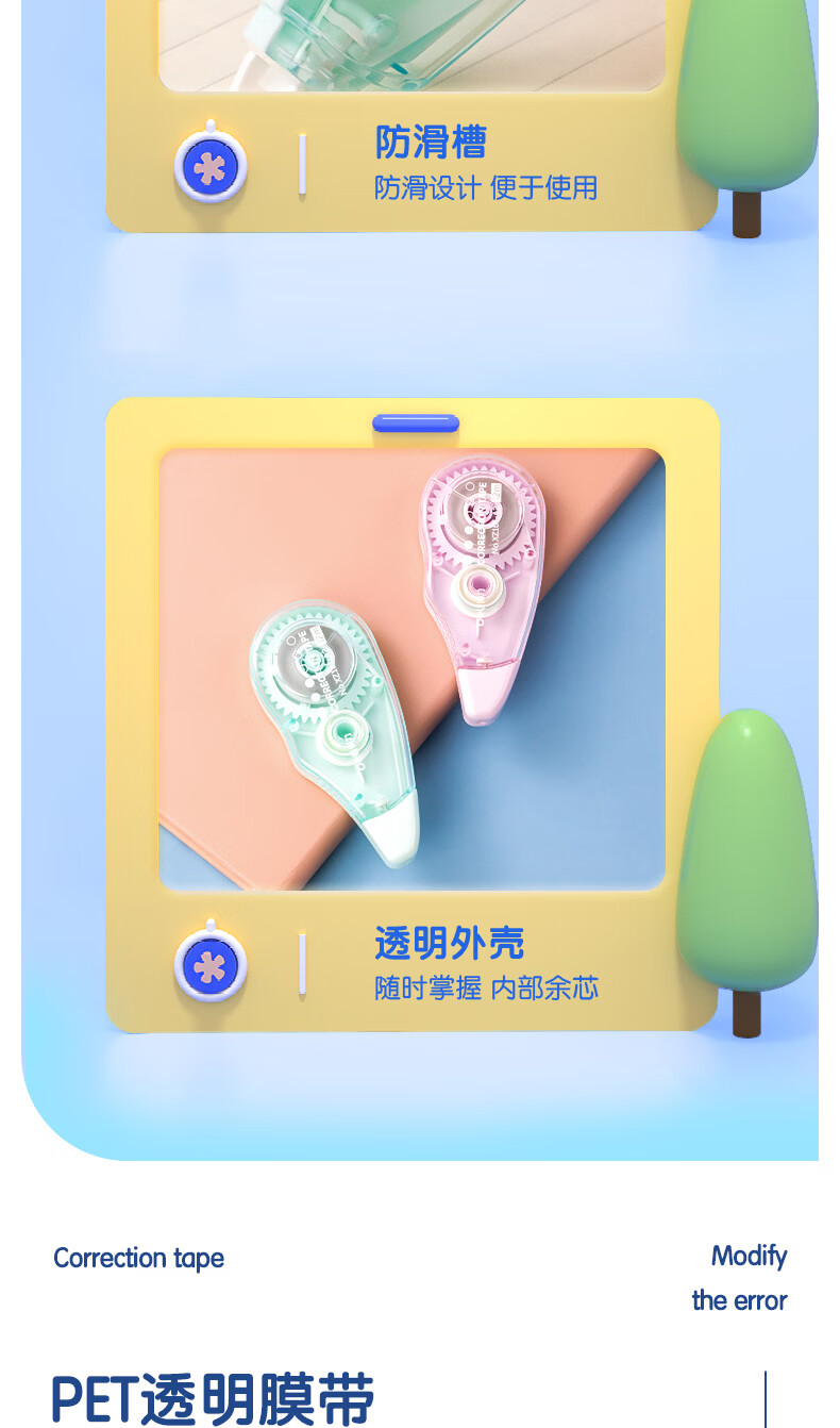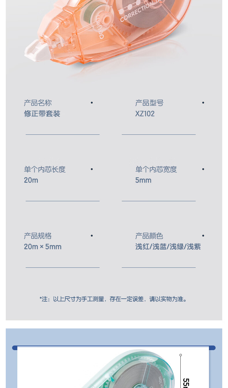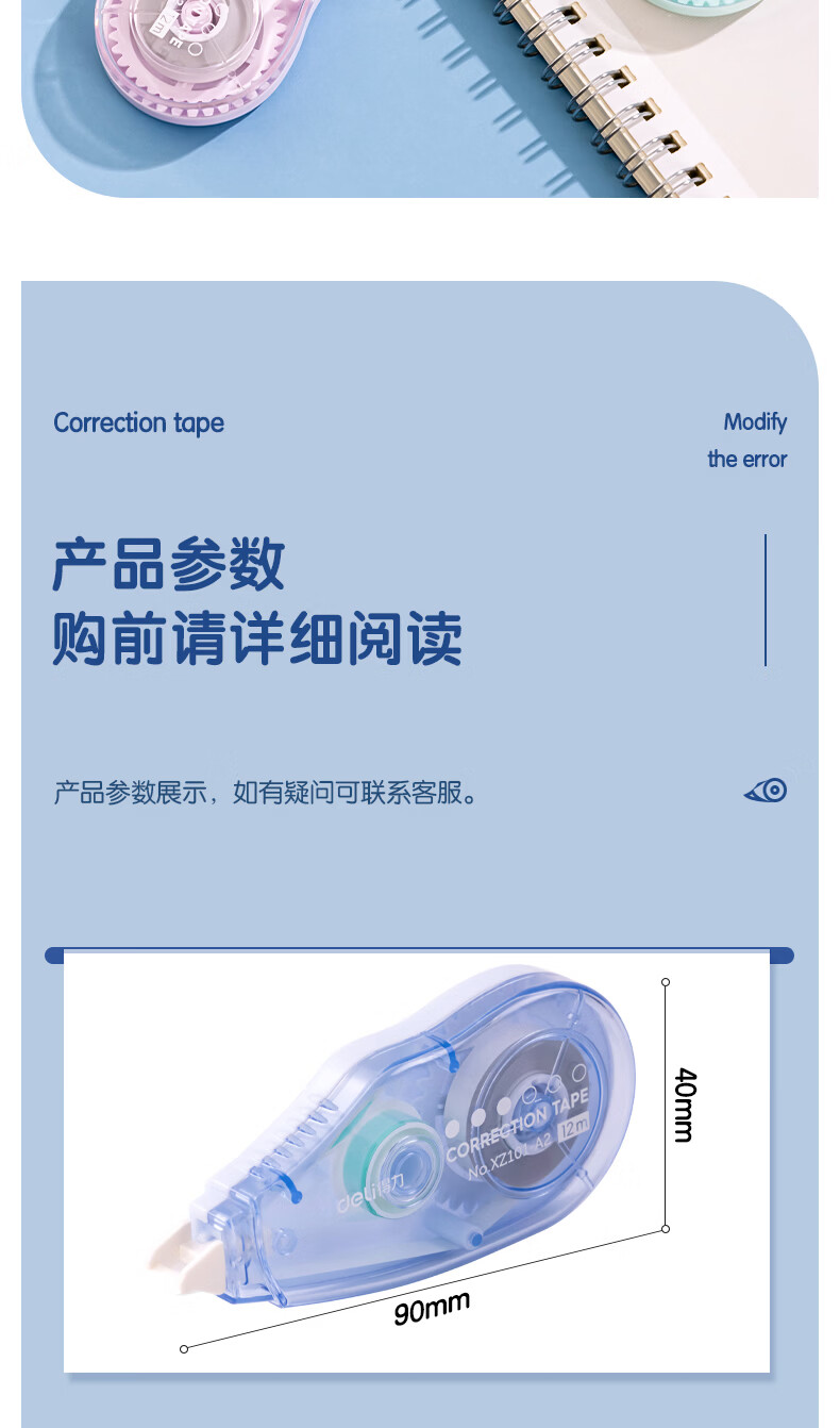 得力修正带学生专用涂改带炫彩超高颜值ins大容量专用静音学习用品 【150米】炫彩静音5个装