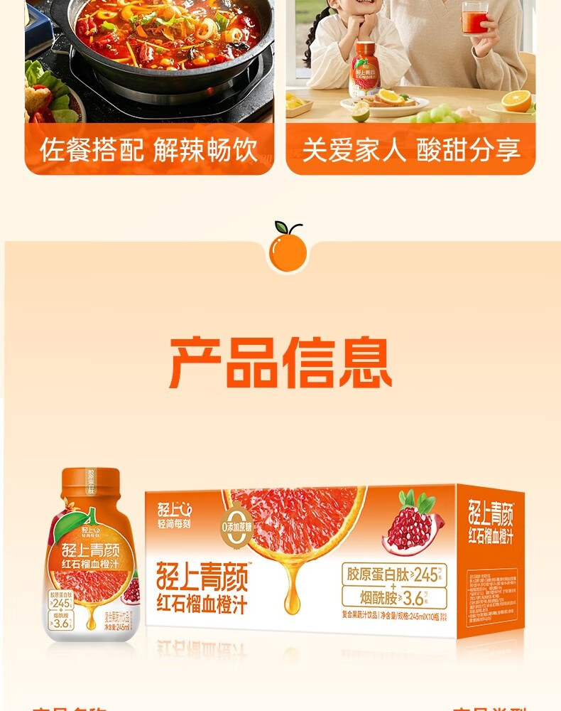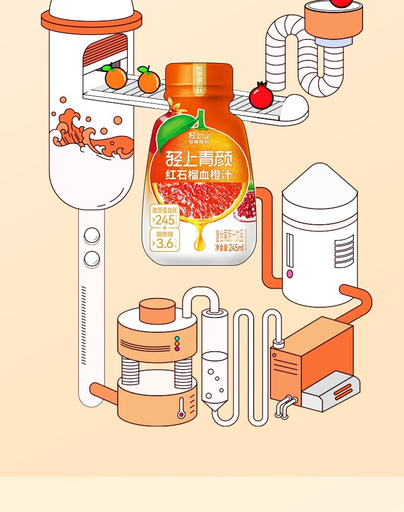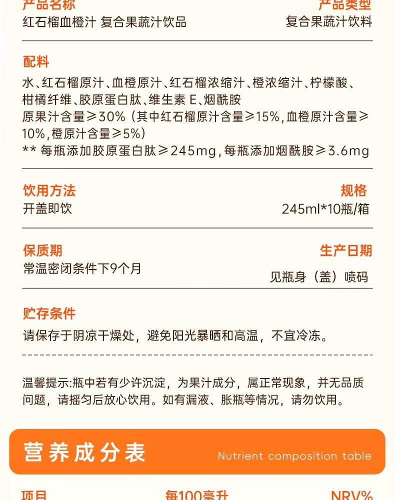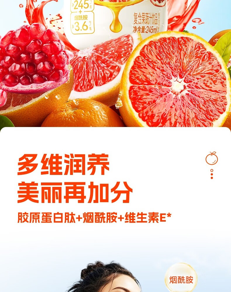 轻上红石榴血橙汁特添烟酰胺VE胶原蛋白肽复合果蔬汁饮品 白桦树汁245ml*10瓶-