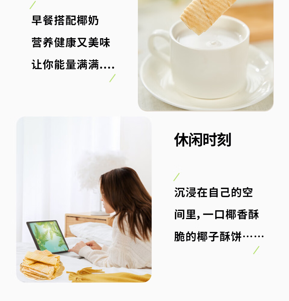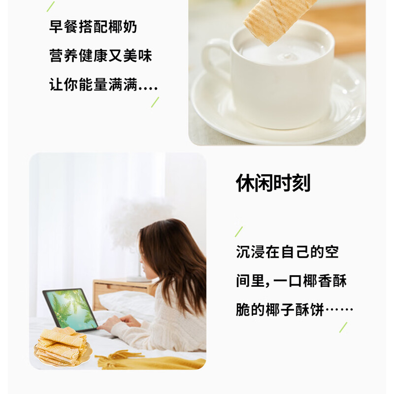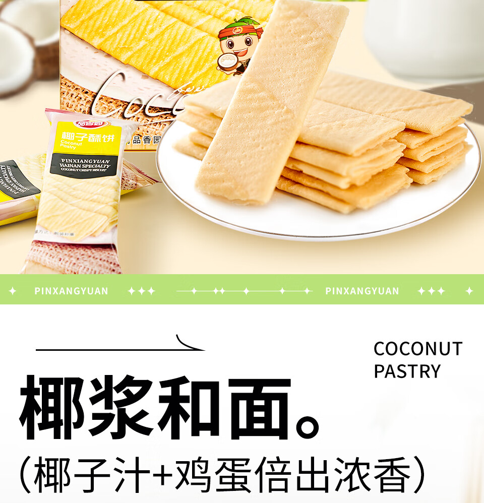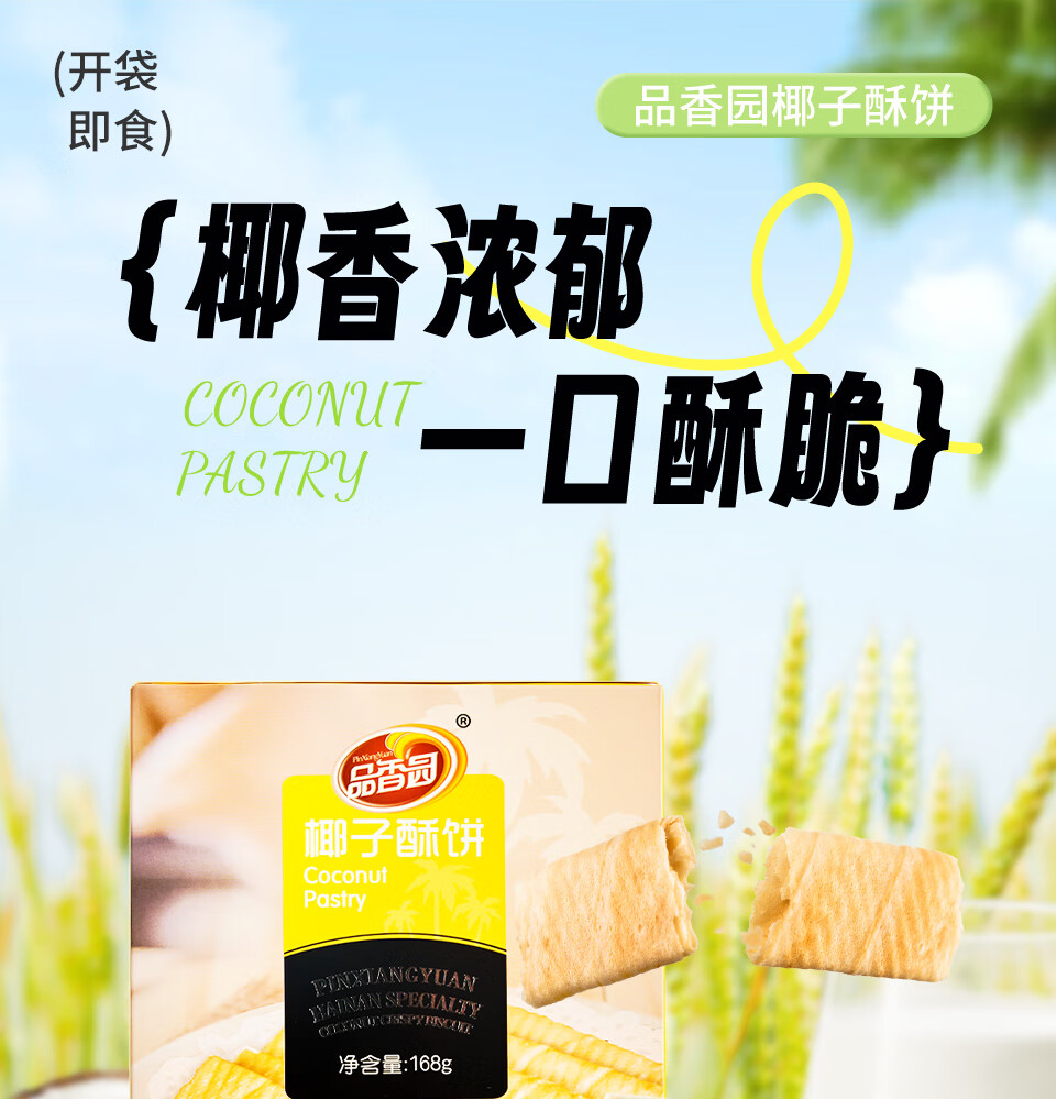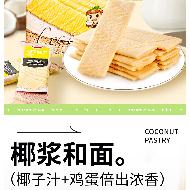 品香园椰子酥饼蛋卷168g*3盒装海南特产零食薄饼早餐饼零食 椰子酥饼168g*3盒504g