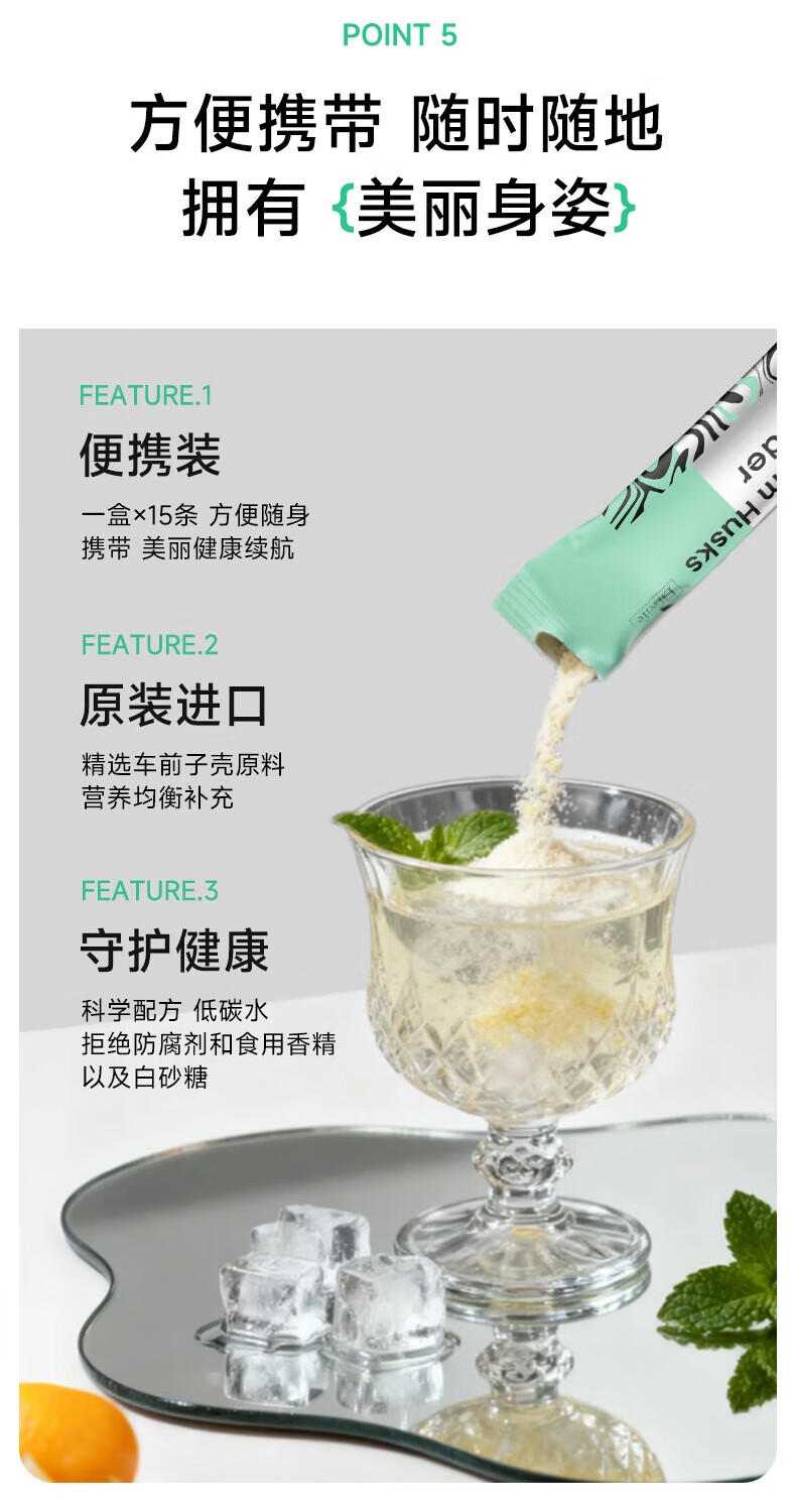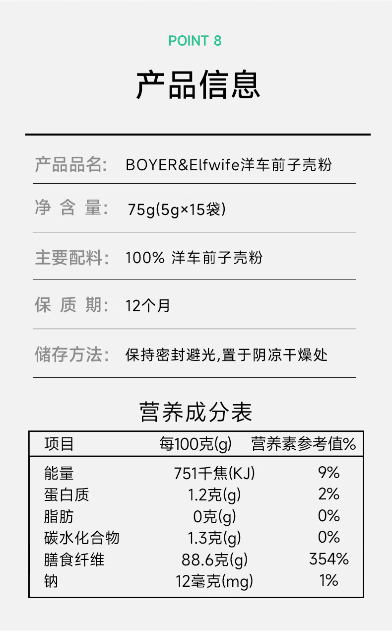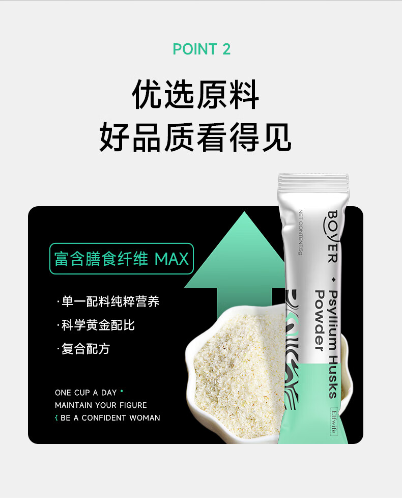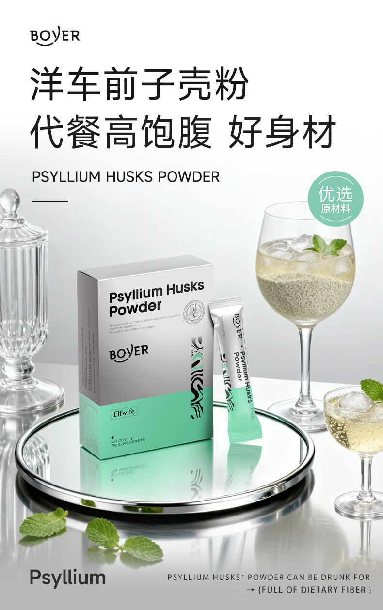 Boyer车前子壳粉膳食纤维肠便膳食生酮饮食低卡无糖低碳补剂 【健康膳食】车前子壳粉 15袋*1盒 进口圆壳