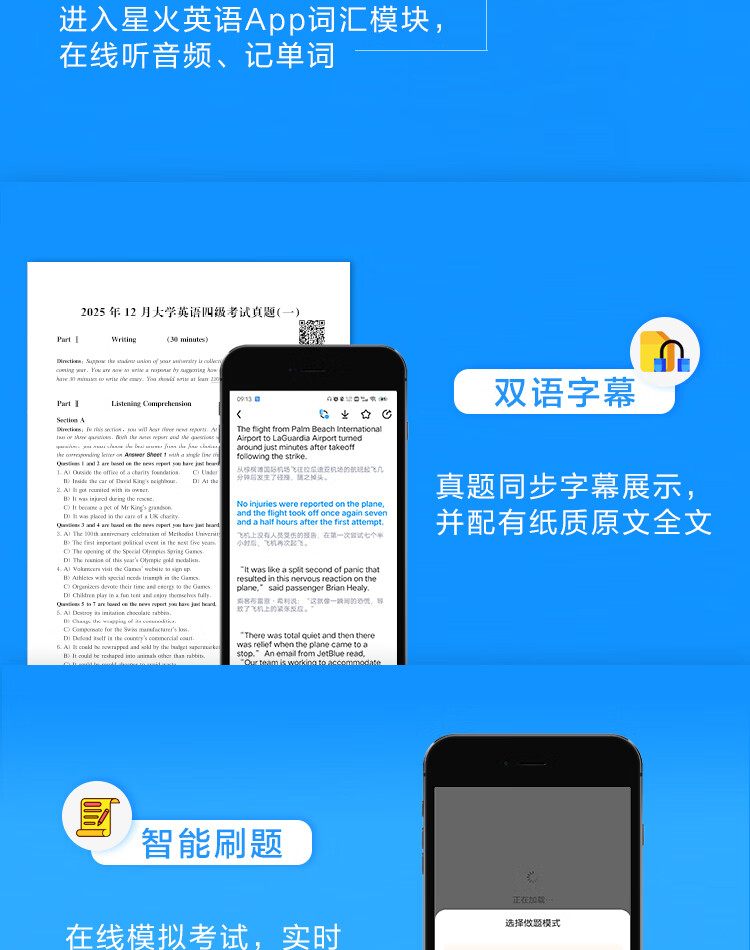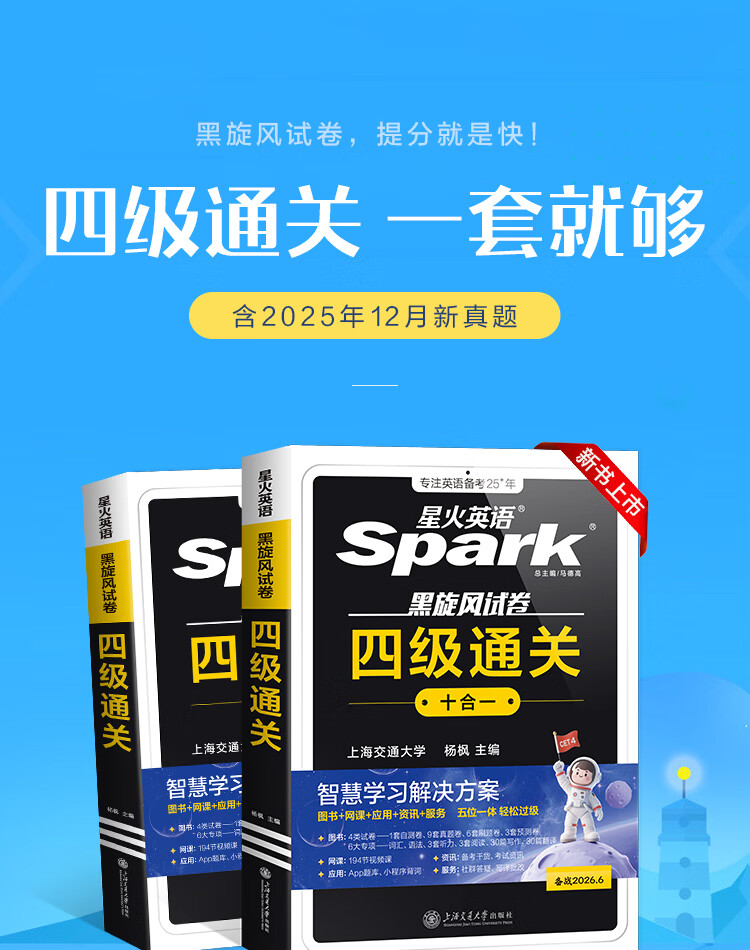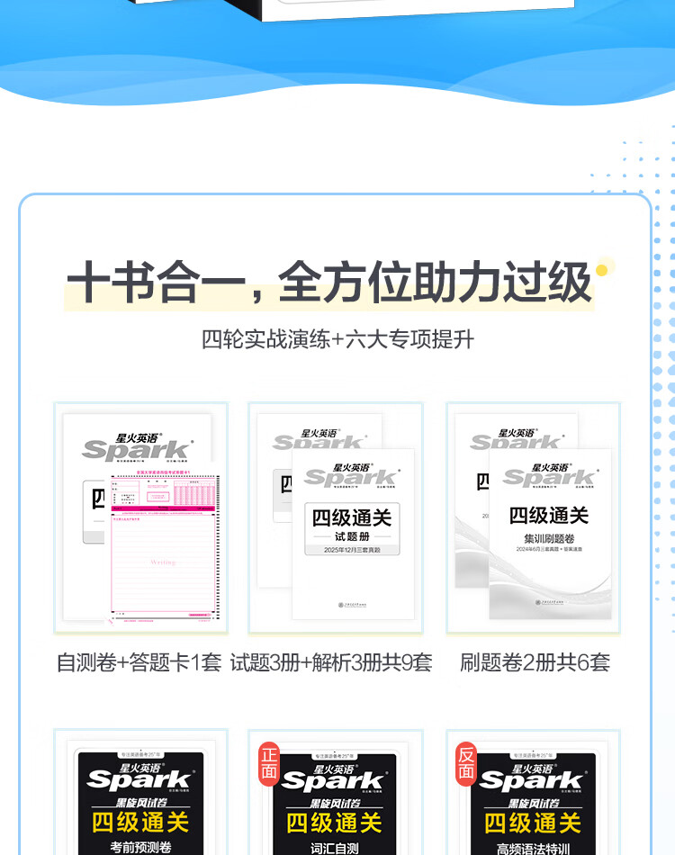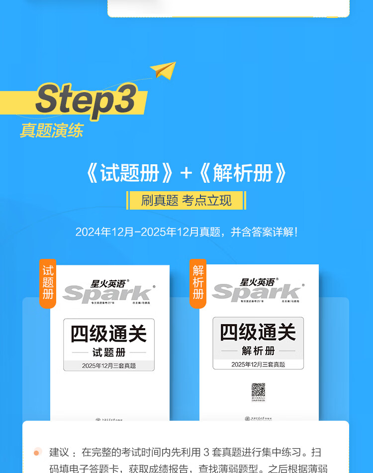 含2025年12月真题】星火英语四级真题试卷备考2026年6月四级考试英语真题通关cet46大学英语四级词汇书英语听力翻译四级英语备考资料外语学习图书 四级通关【四级真题16套+预测3套+词汇专项语法