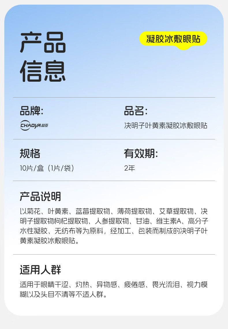 超亚叶黄素护眼贴冷敷润眼冰敷眼罩润目穴位贴男女睡眠眼干眼涩疲劳 【菊花叶黄素凝胶款】10片*3盒