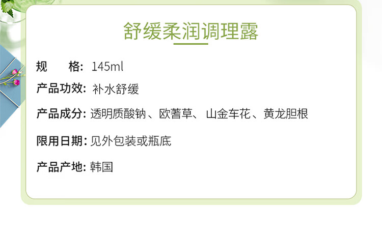 奇姬韩国舒缓柔润调理露 舒缓肌肤补水保湿爽肤水女 舒缓柔润调理露 145ml