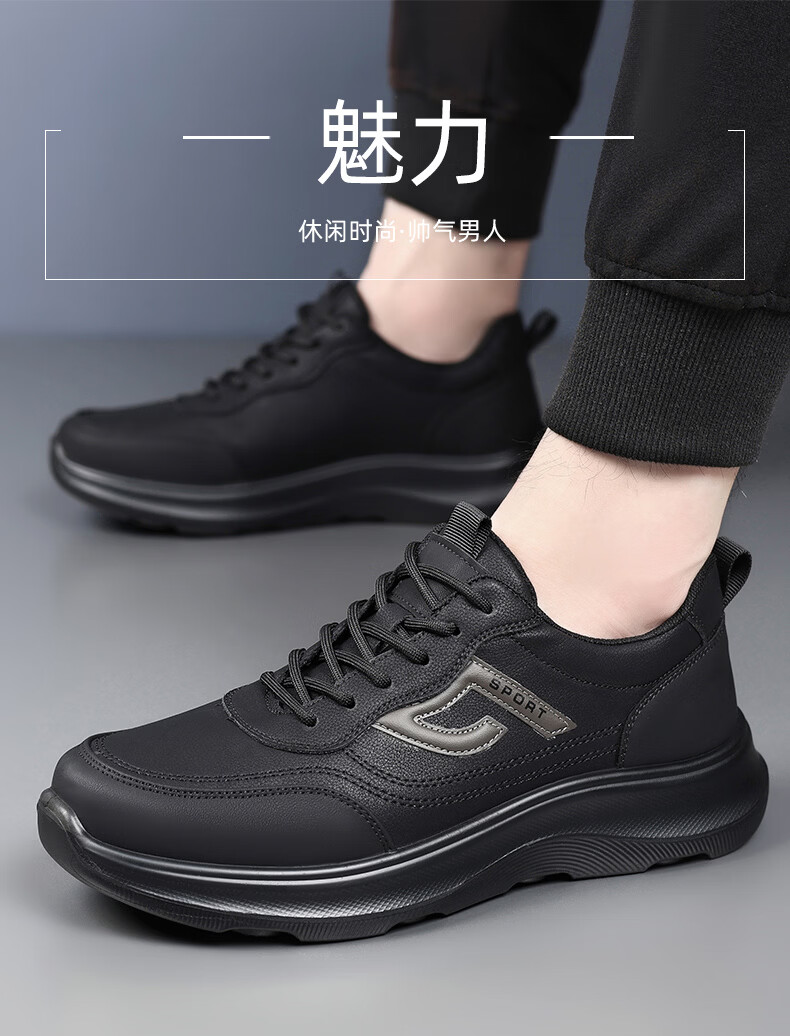 公爵斯顿 DUKESTON轻奢男鞋厚底休闲鞋商务通勤轻便百搭耐磨防水 黑色 41 标准皮鞋尺码