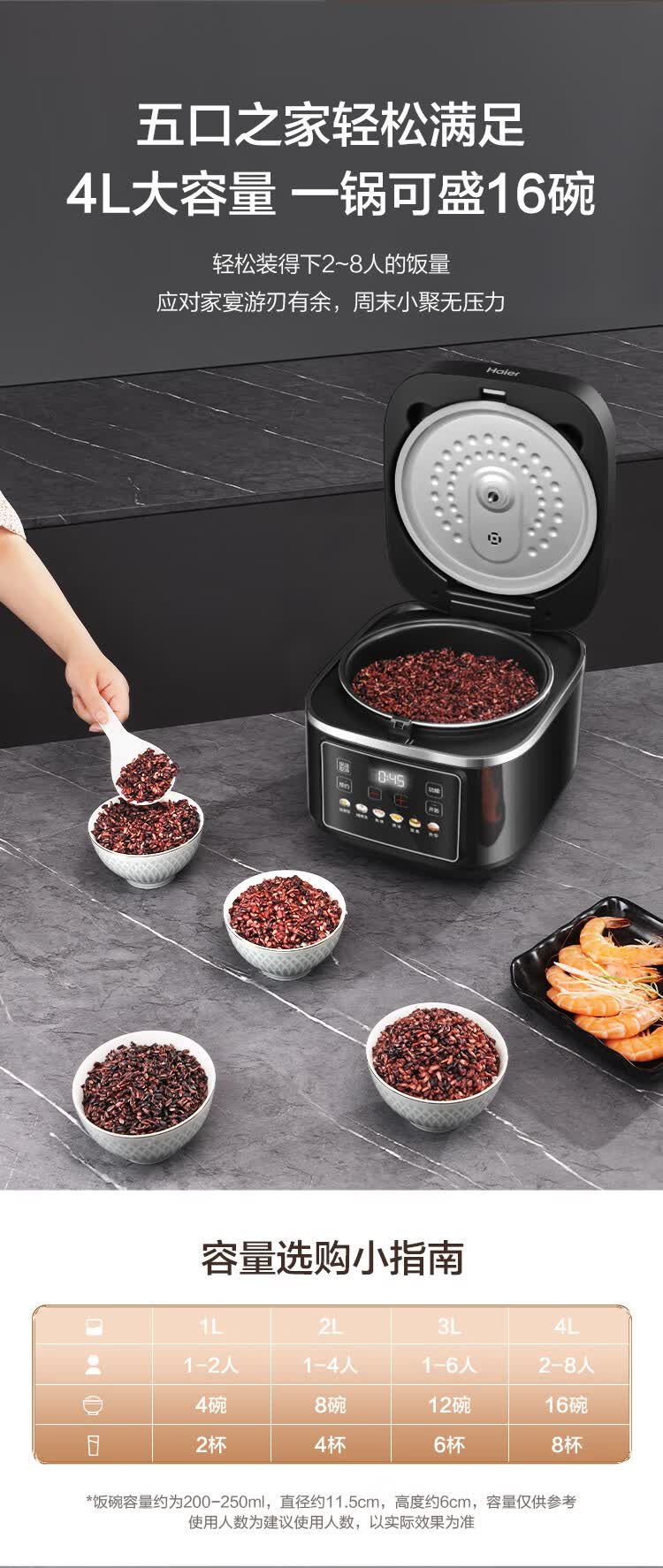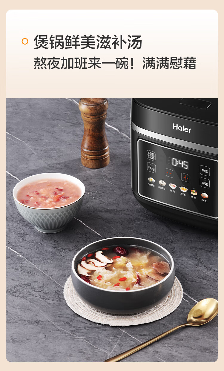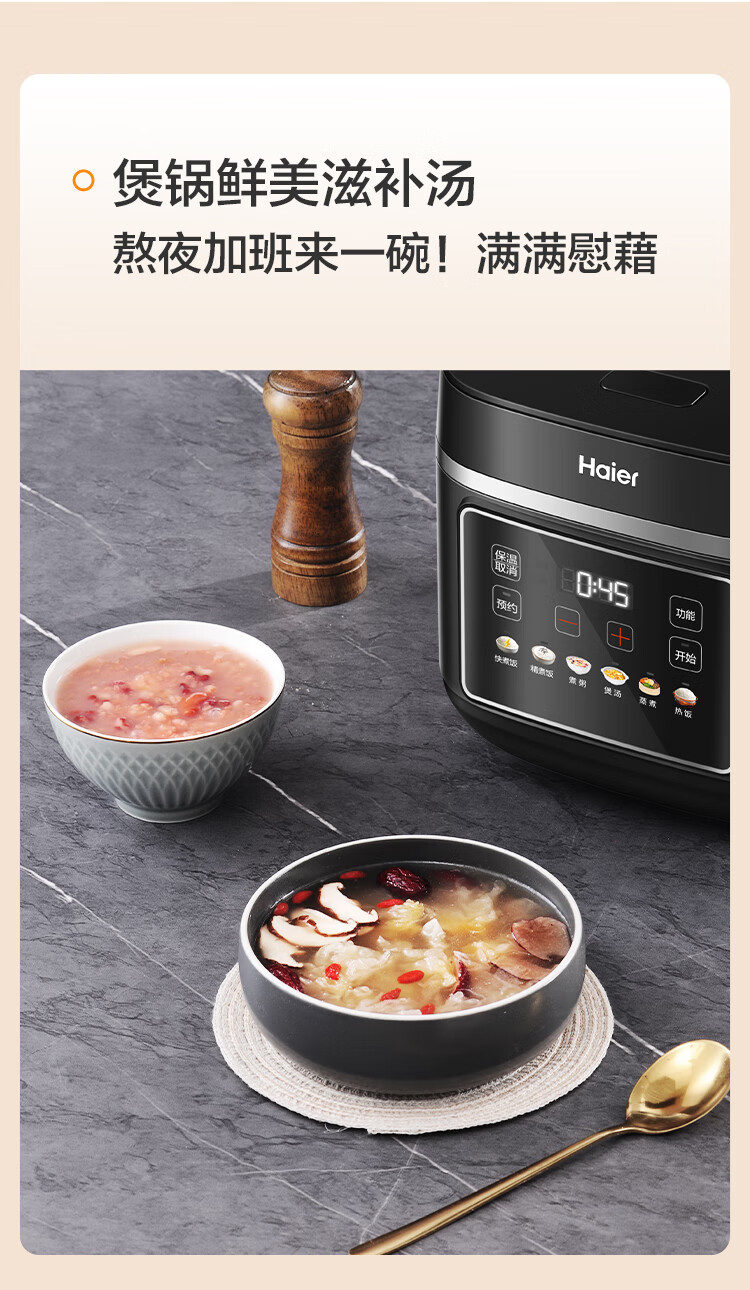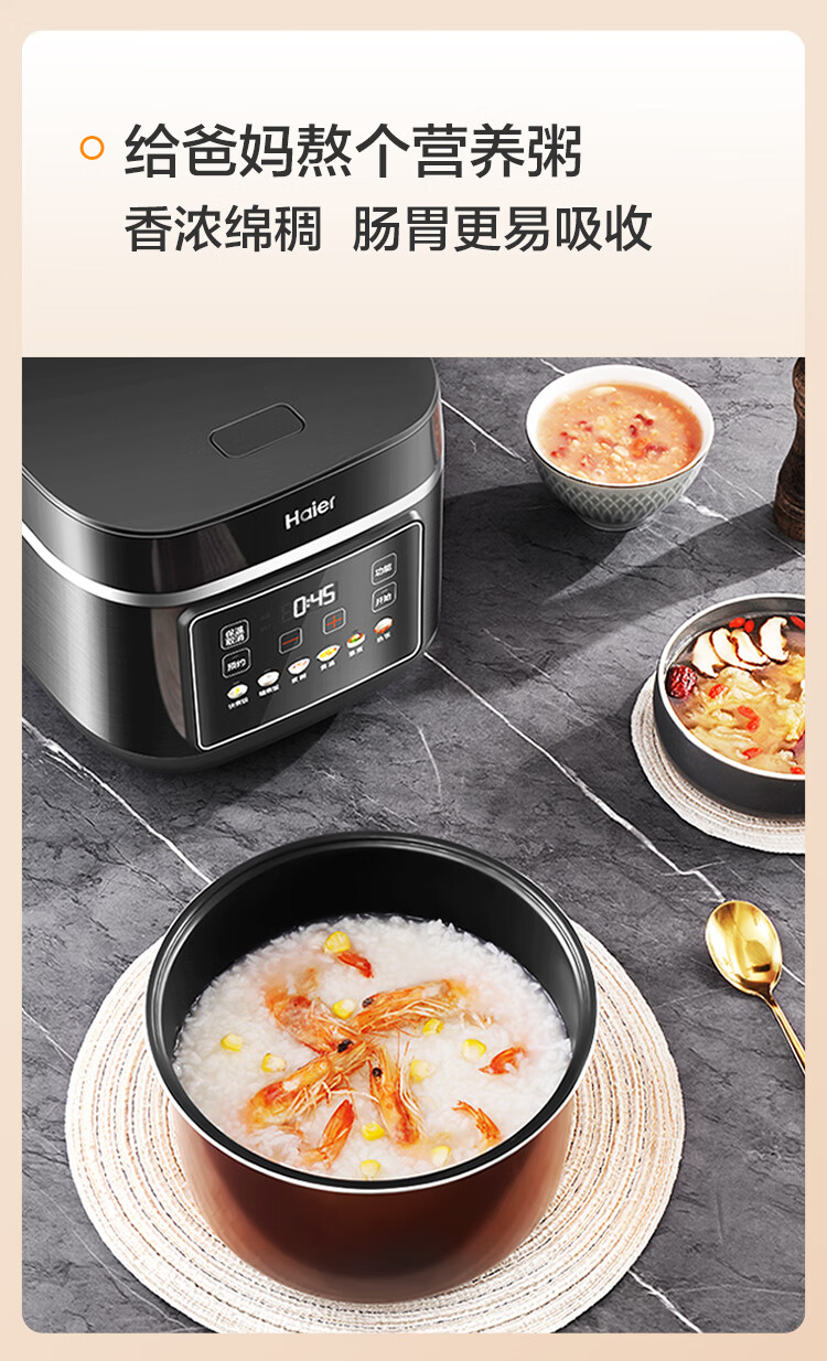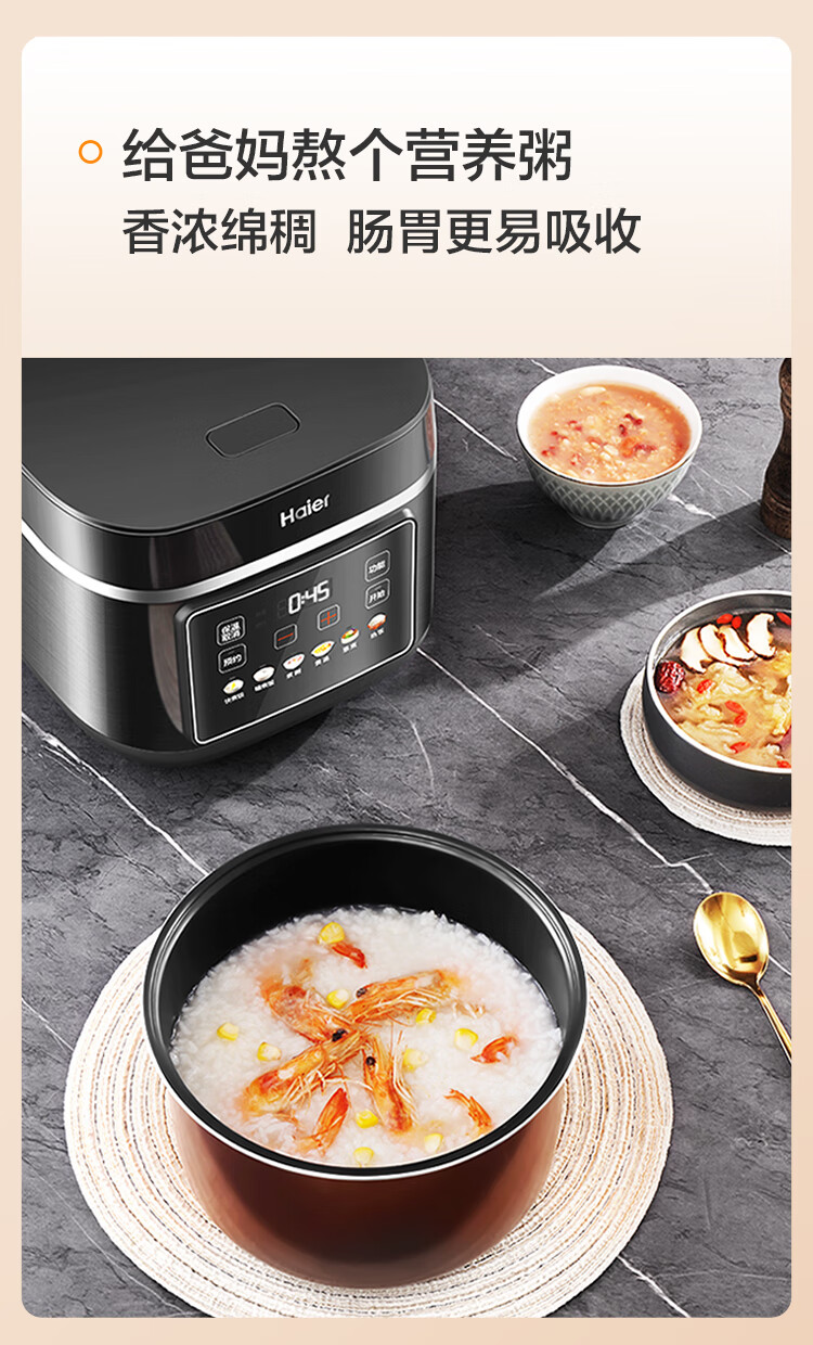 海尔(Haier)电饭煲电热电饭煲保温厨房家电多功能锅米饭本釜内胆饭煲可预约上蒸下煮 【2-8人】 4L HRC-KDCG16120