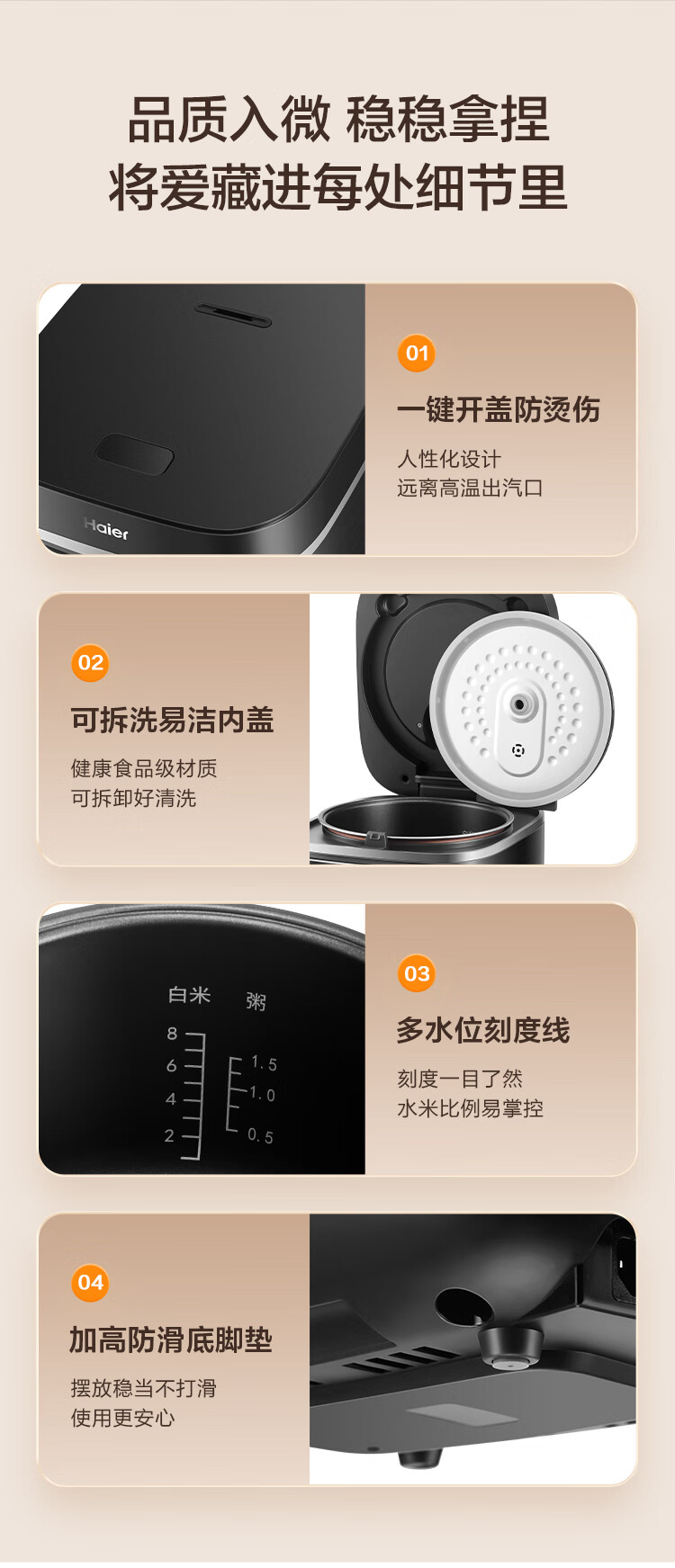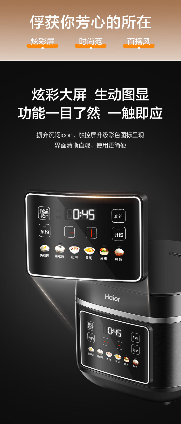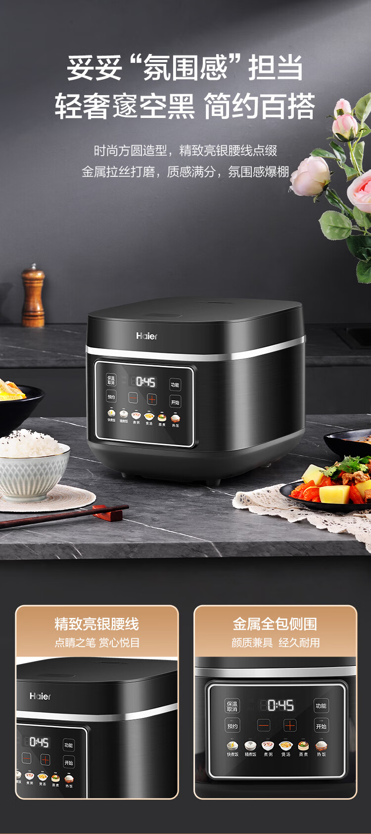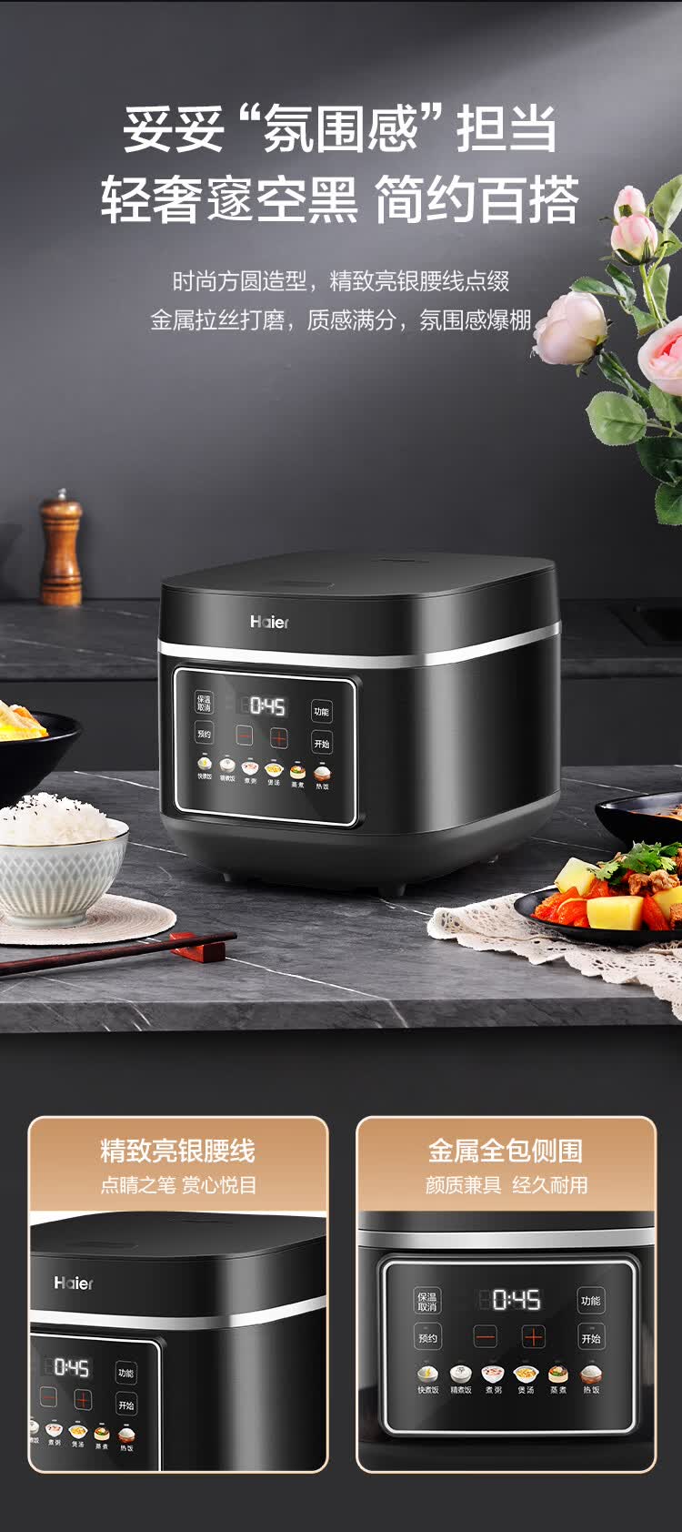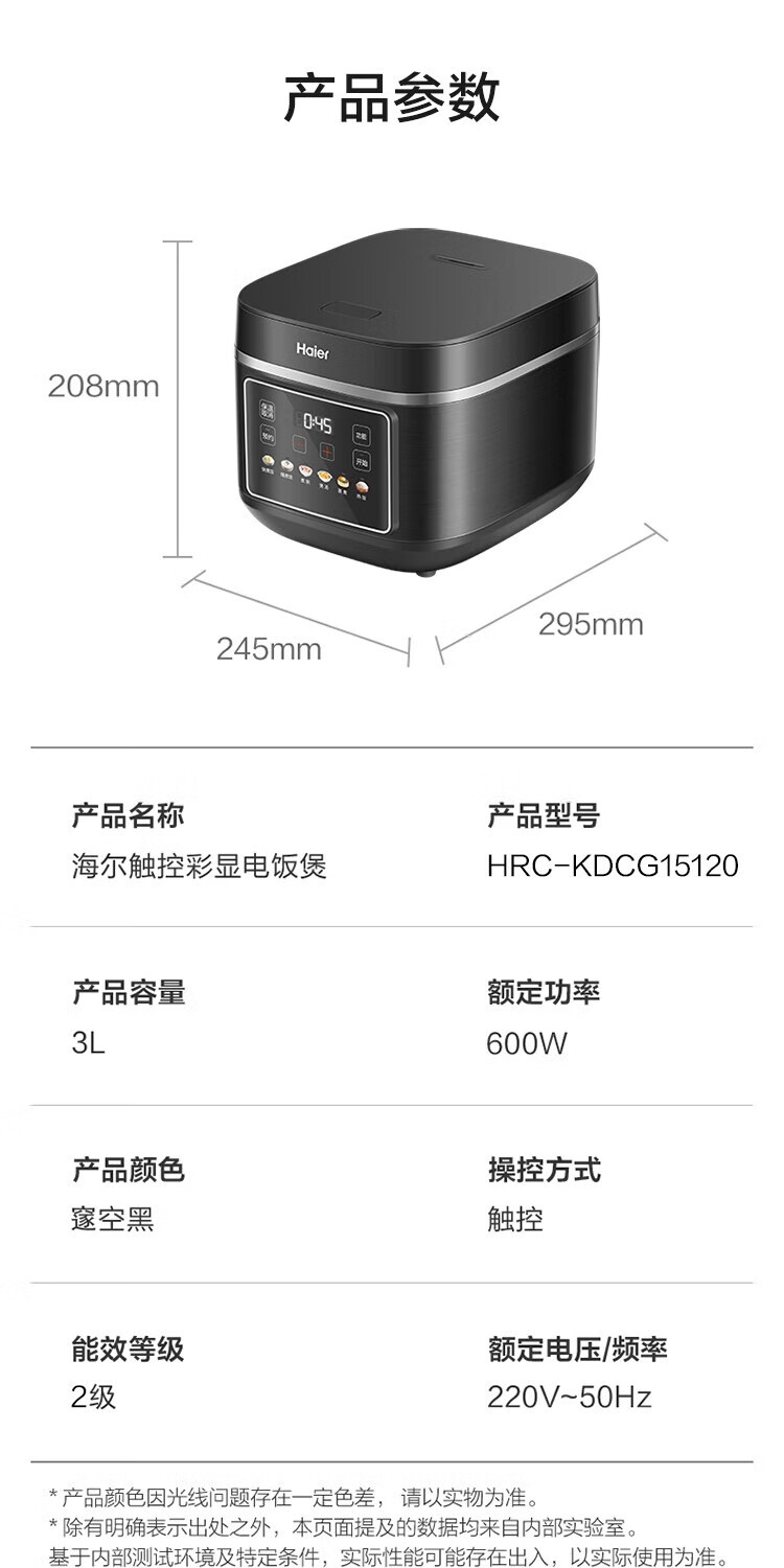海尔(Haier)电饭煲电热电饭煲保温厨房家电多功能锅米饭本釜内胆饭煲可预约上蒸下煮 【2-8人】 4L HRC-KDCG16120