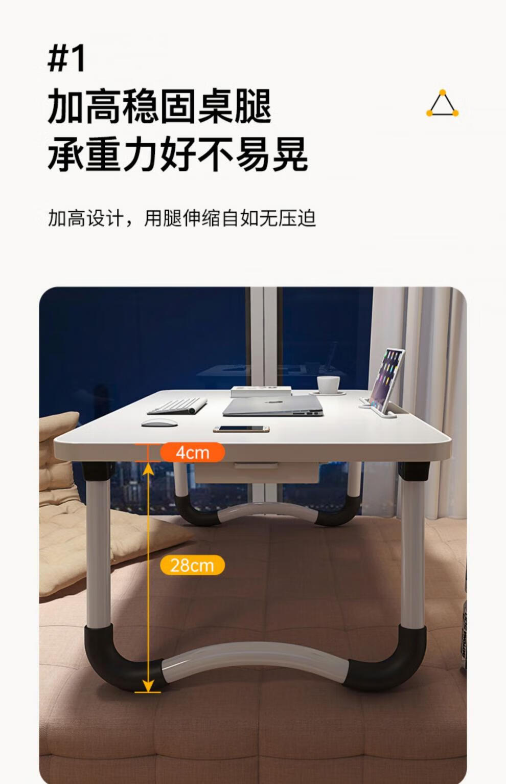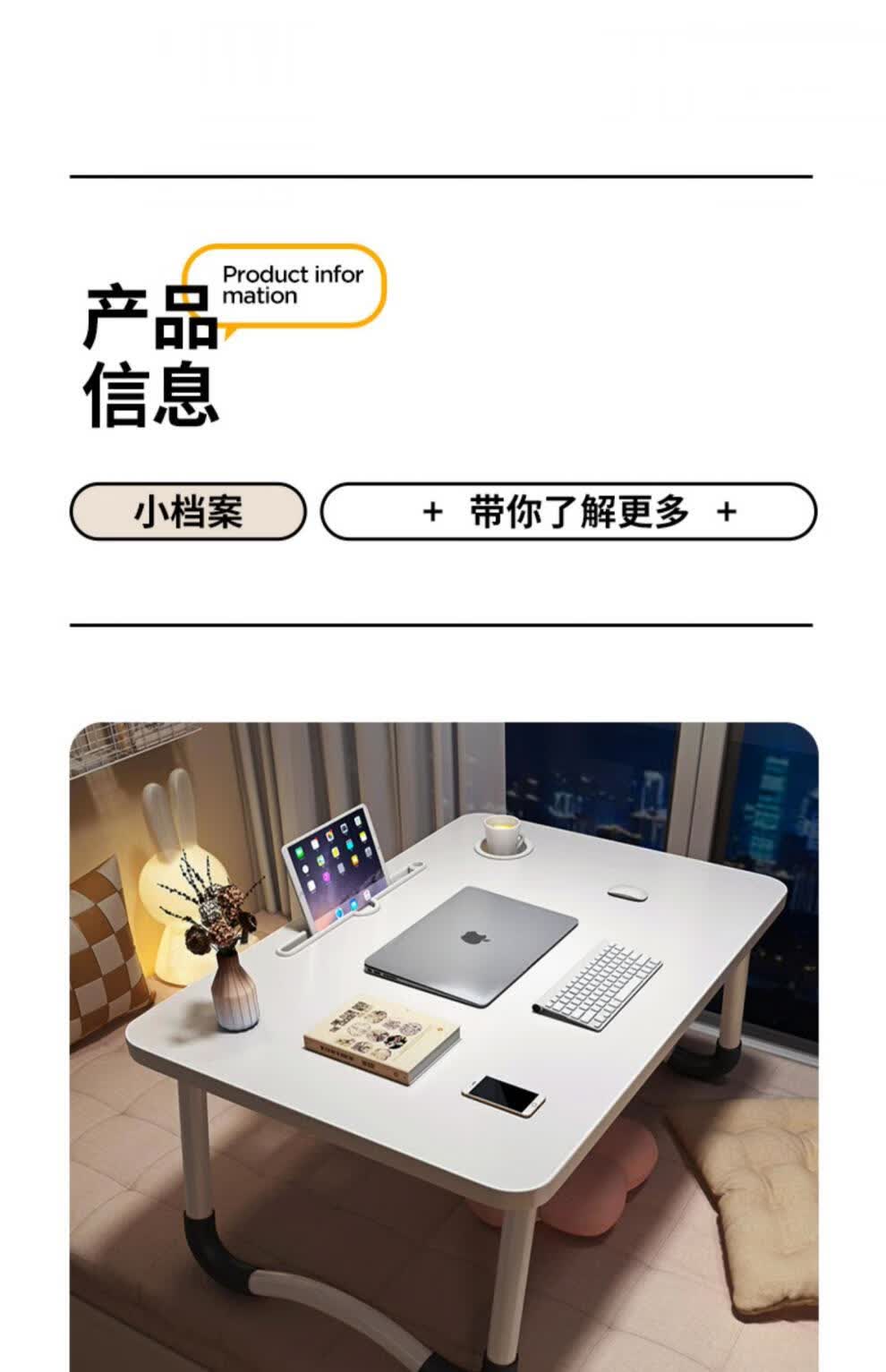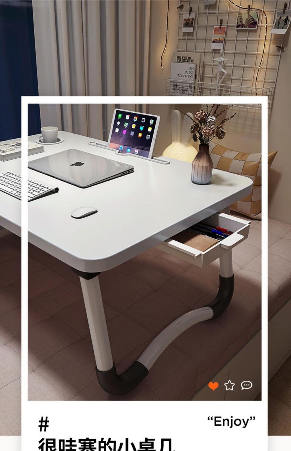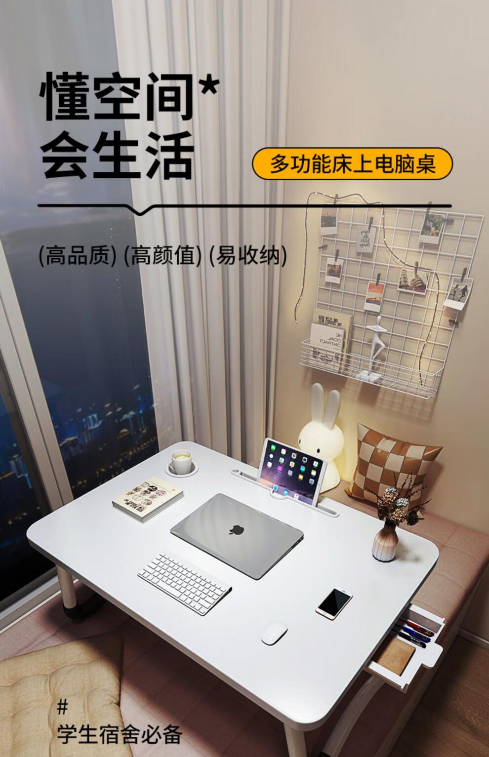 床上电脑桌小桌子可折叠学习书桌笔记本支架 【茶白】(卡槽+杯托)长60*宽40*
