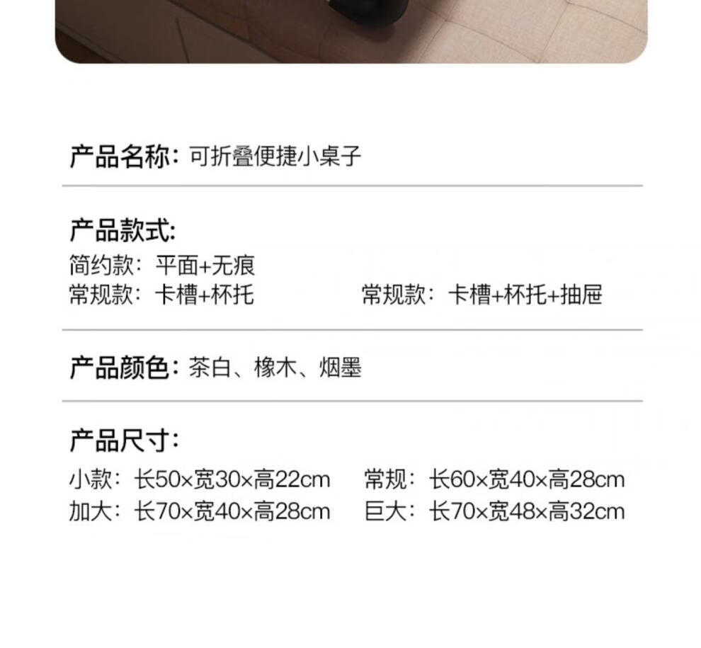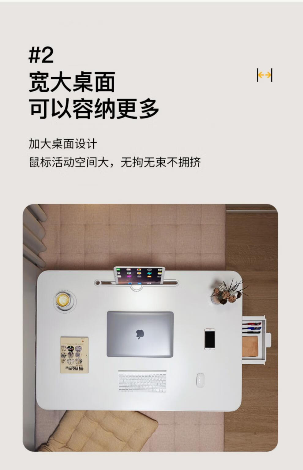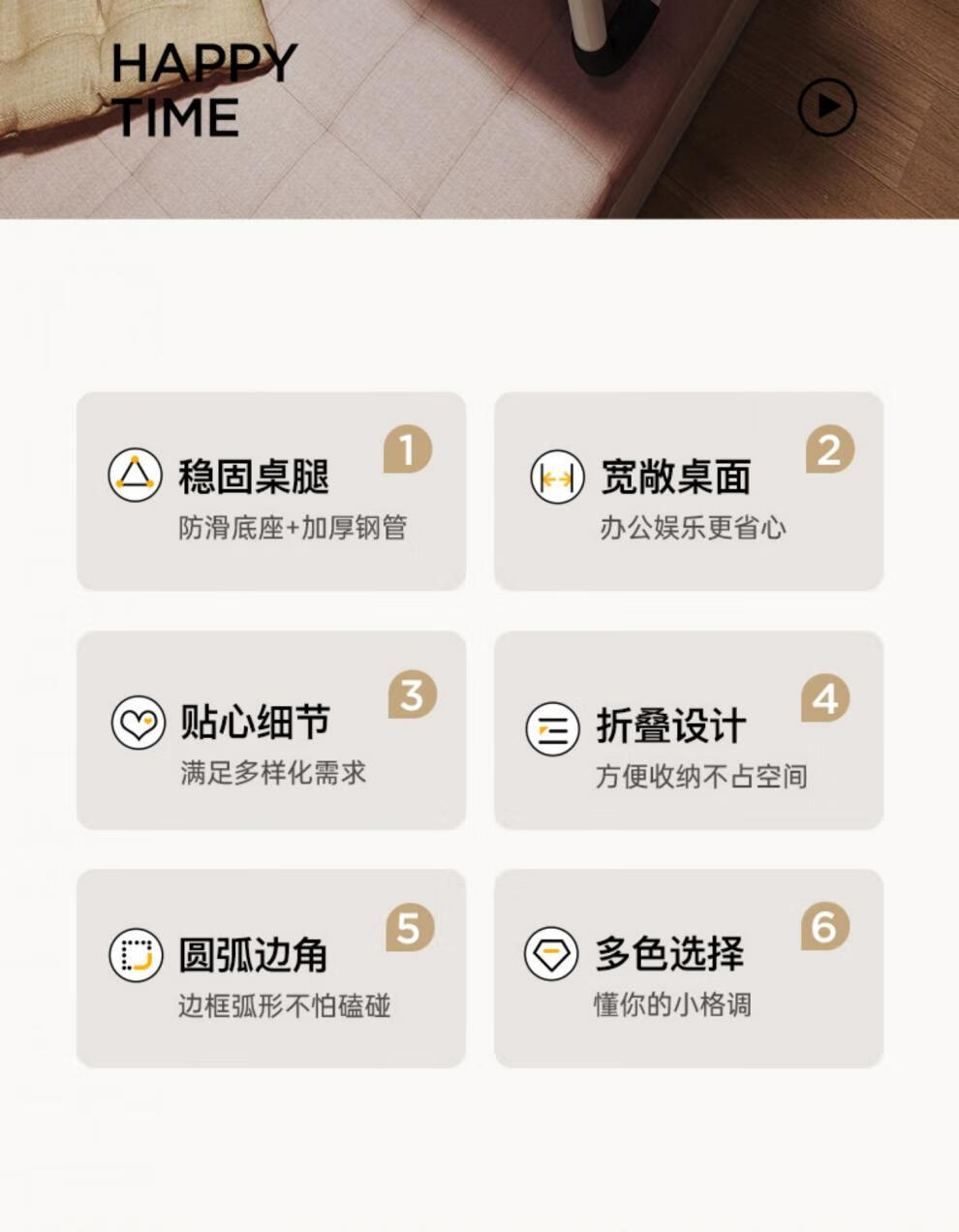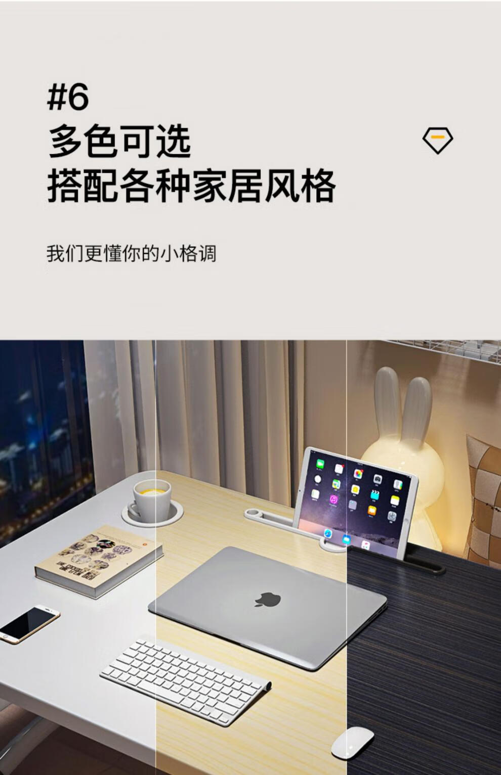 床上电脑桌小桌子可折叠学习书桌笔记本支架 【茶白】(卡槽+杯托)长60*宽40*