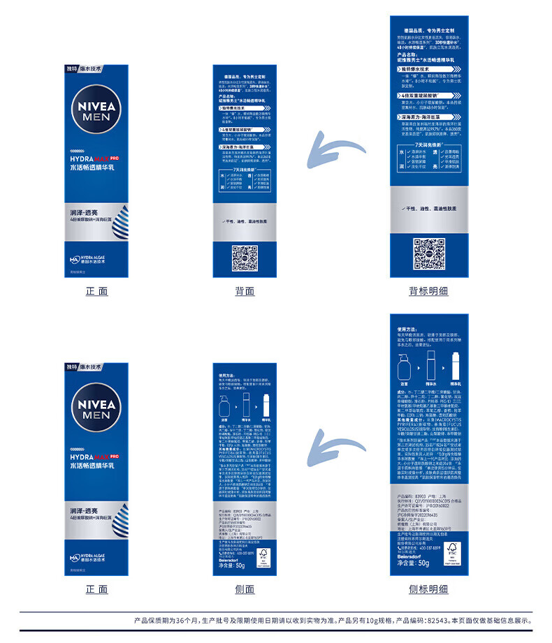妮维雅(NIVEA)男士水活精华乳小蓝管秋冬护肤补水保湿乳面部送男友 水活畅透精华乳50g小蓝管