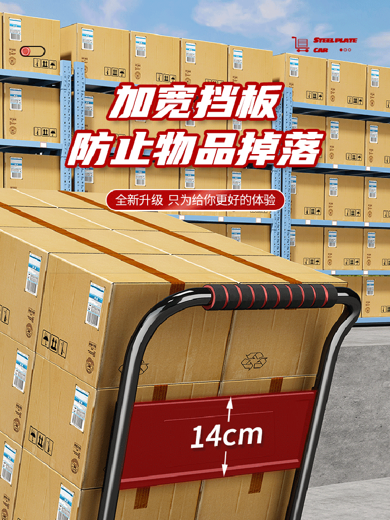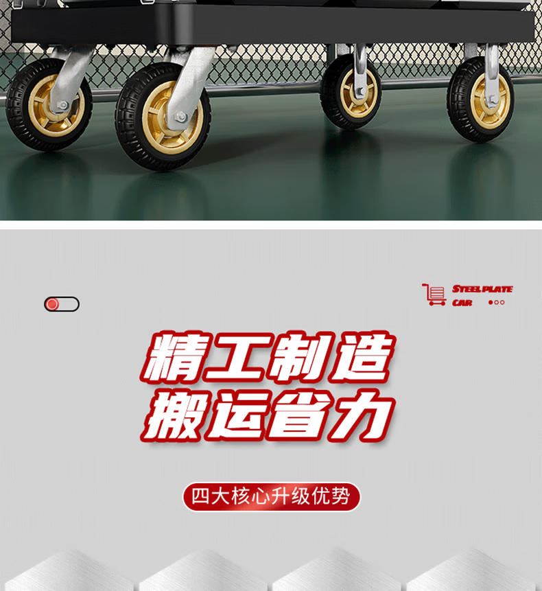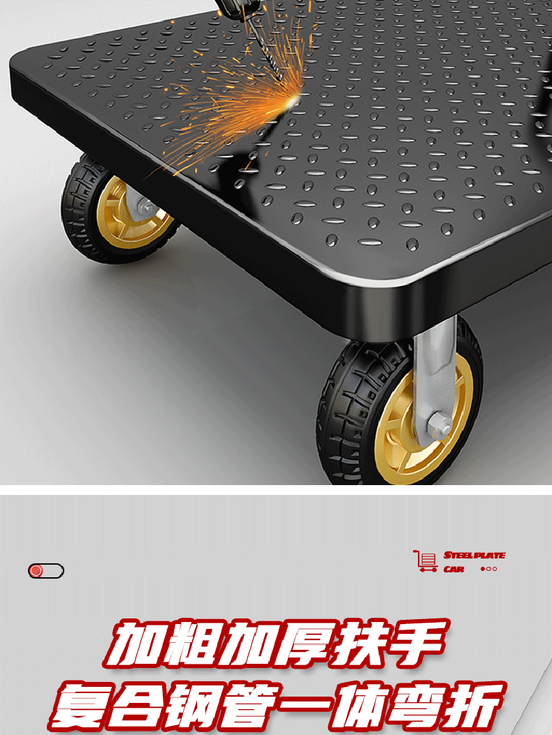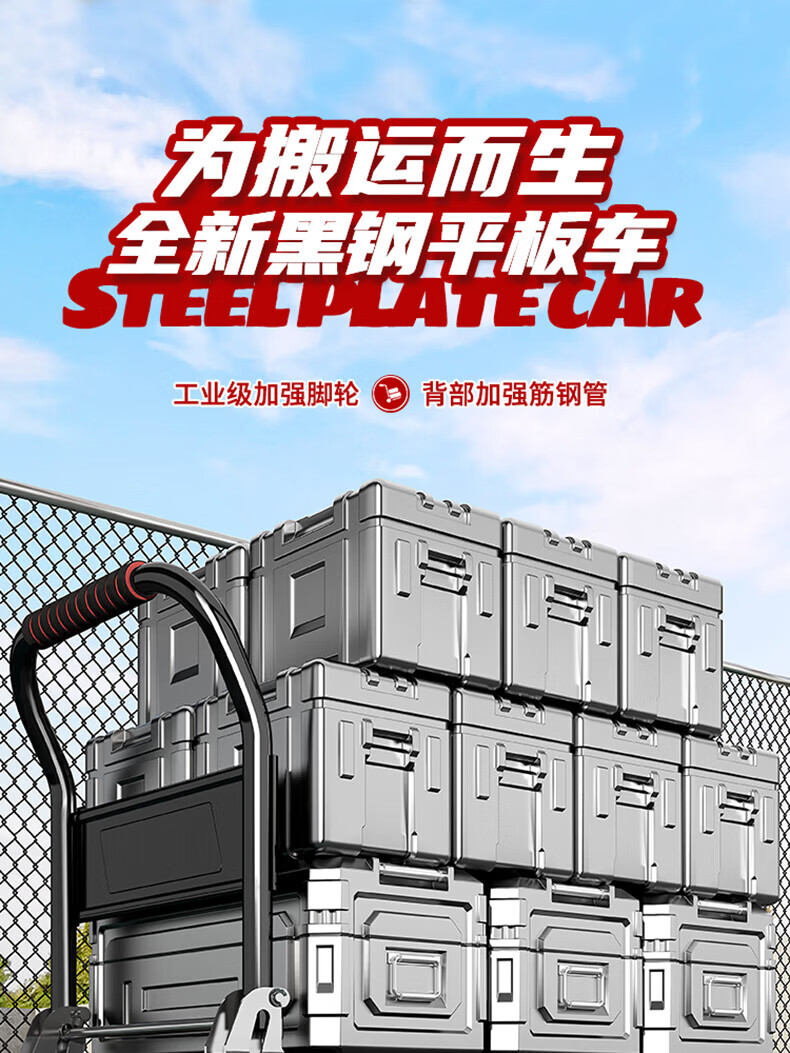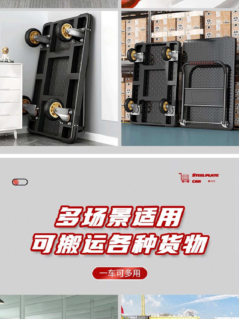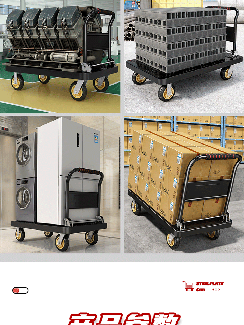 亚伦大力士小推车手推车钢板平板车快递折叠搬运手拉车快递便携仓库拉货拖车 钢板加厚30%【90*60】5寸烽火轮+承重1800斤