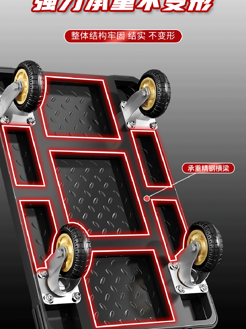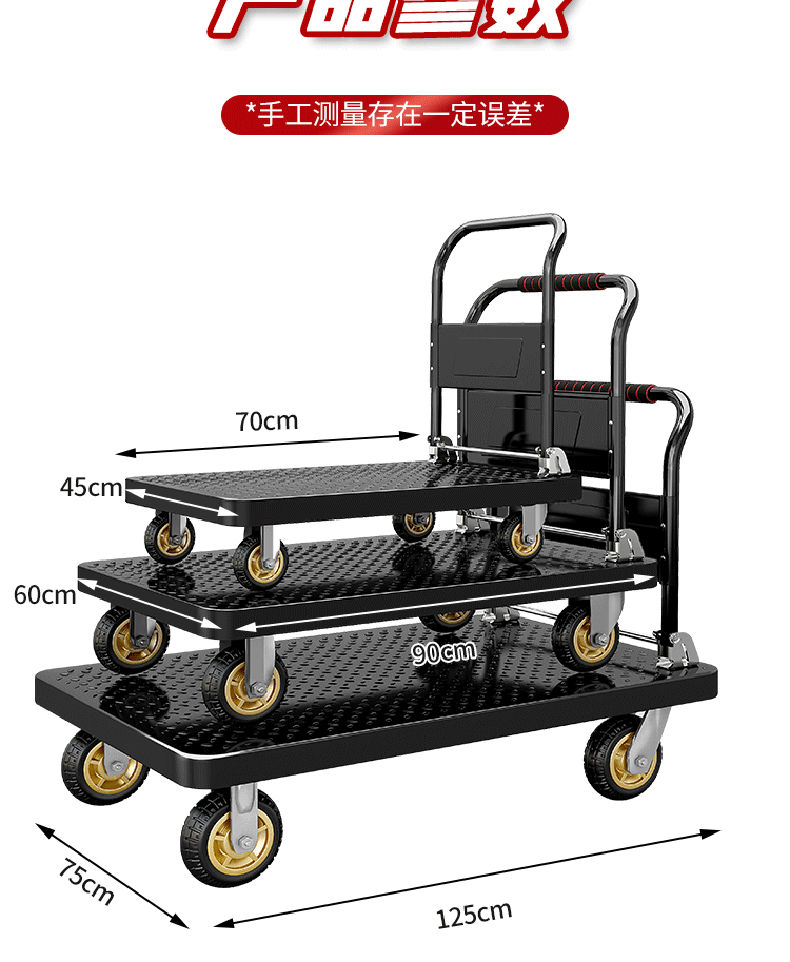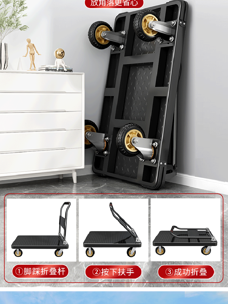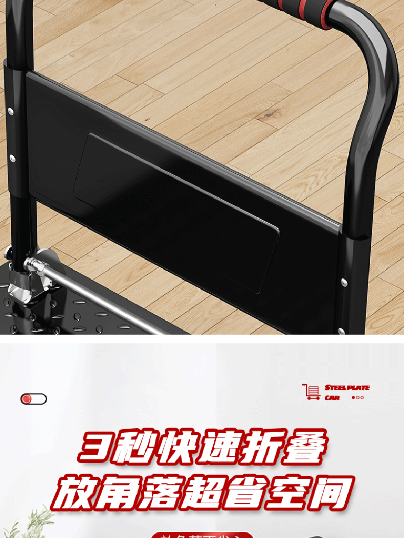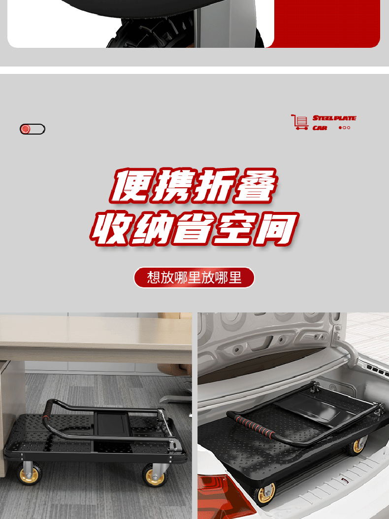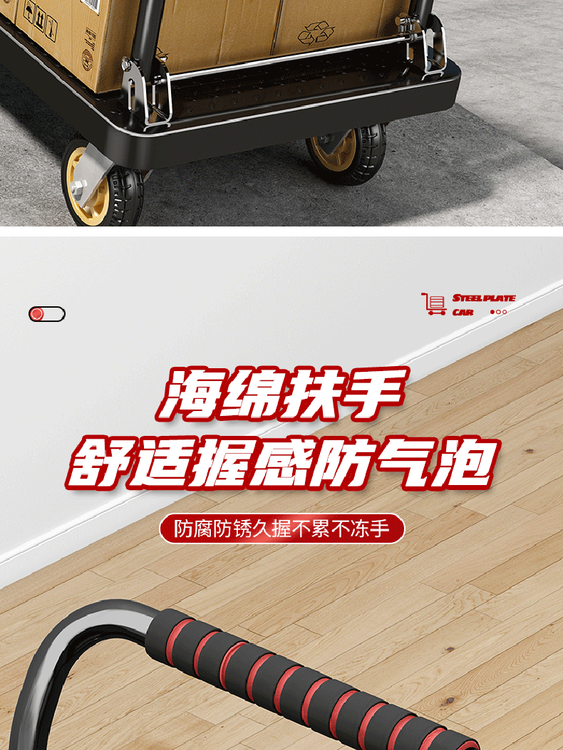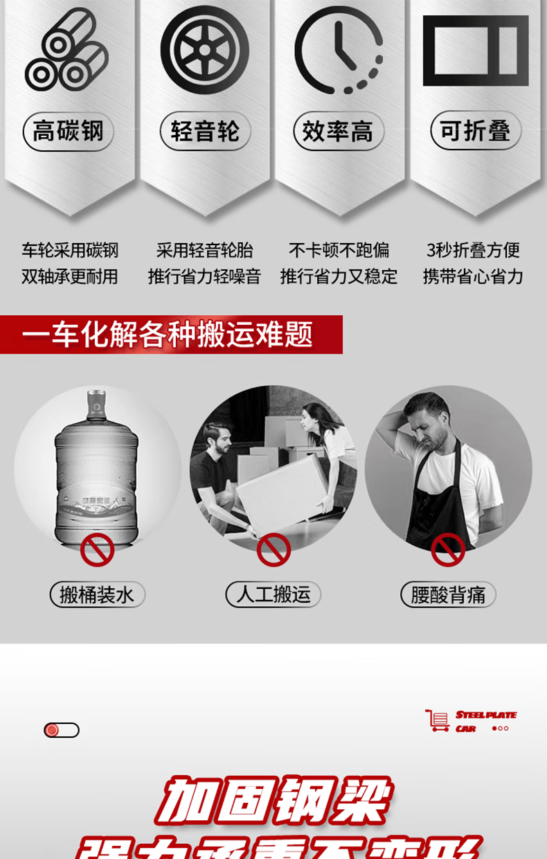 亚伦大力士小推车手推车钢板平板车快递折叠搬运手拉车快递便携仓库拉货拖车 钢板加厚30%【90*60】5寸烽火轮+承重1800斤