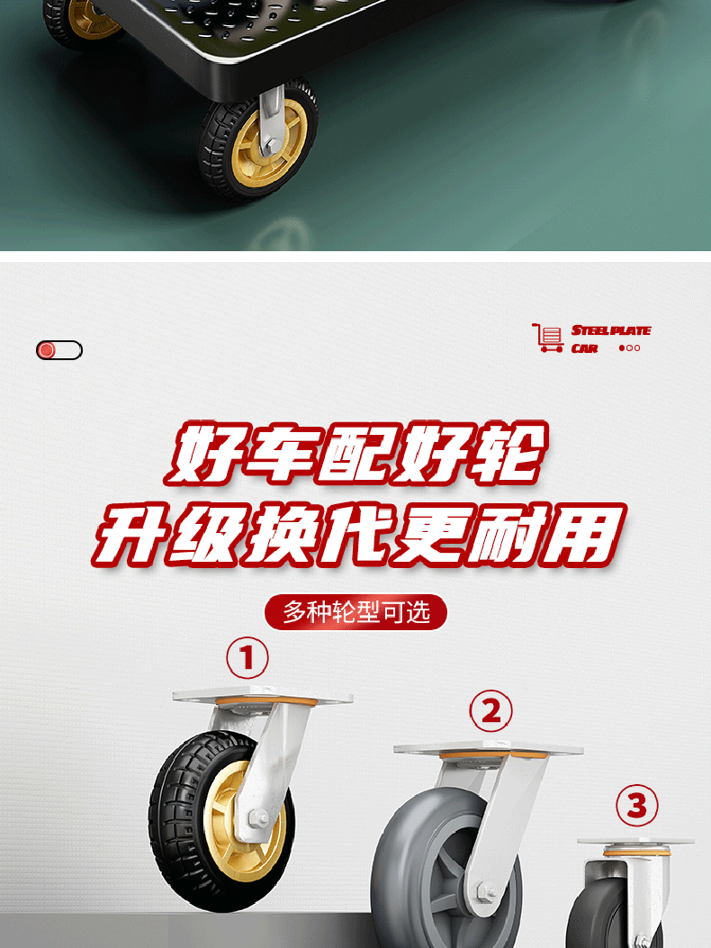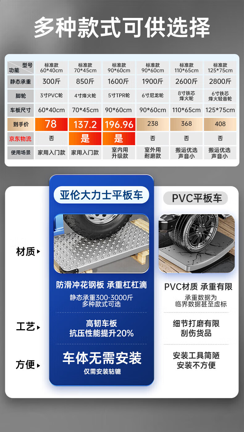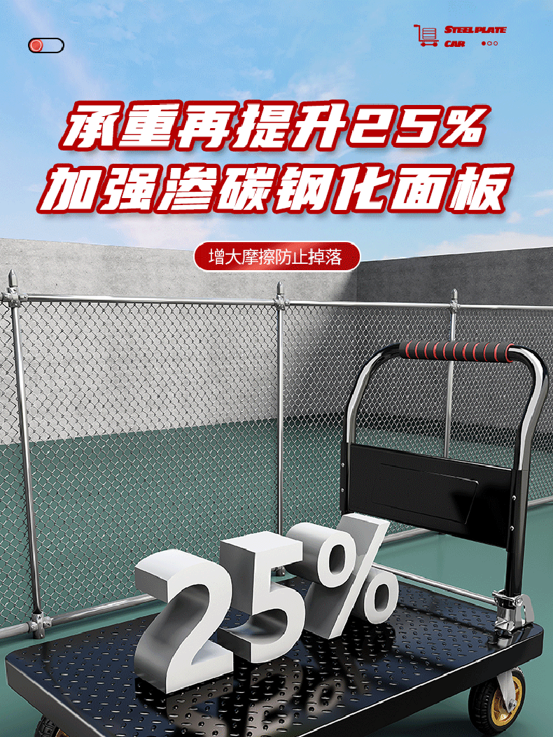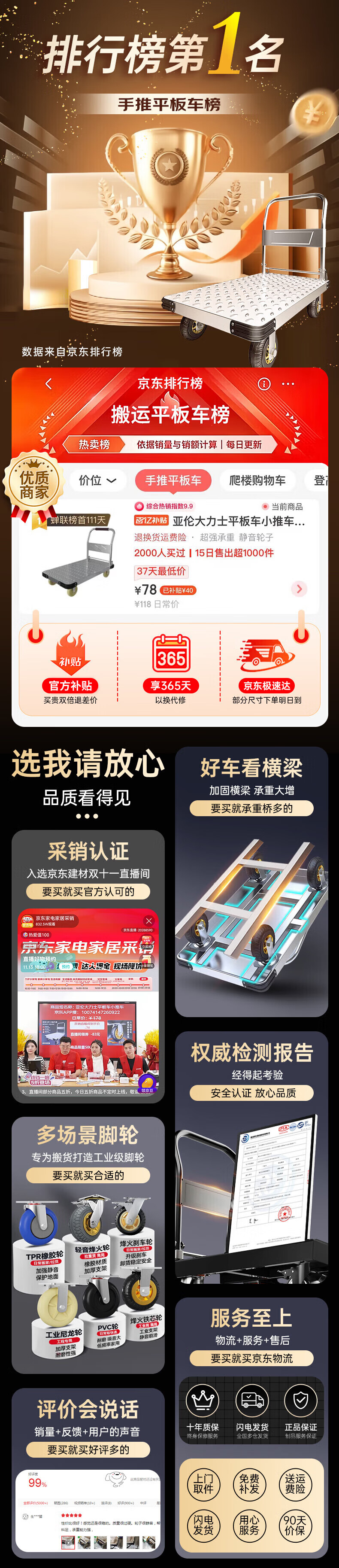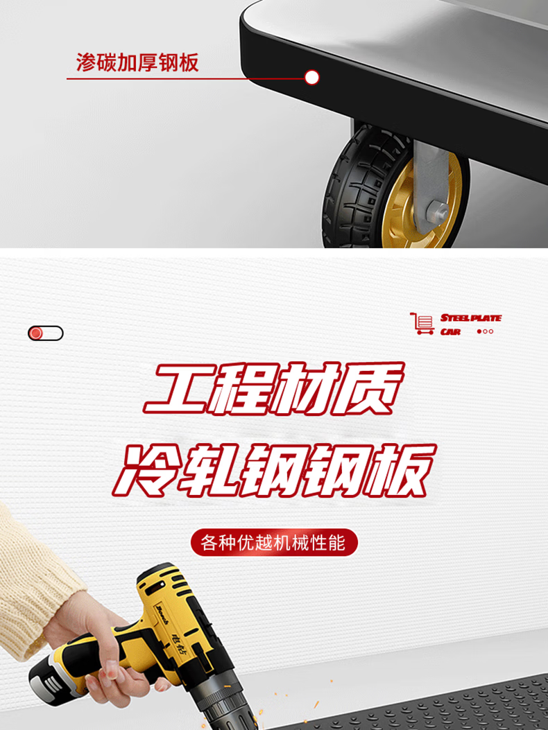 亚伦大力士小推车手推车钢板平板车快递折叠搬运手拉车快递便携仓库拉货拖车 钢板加厚30%【90*60】5寸烽火轮+承重1800斤