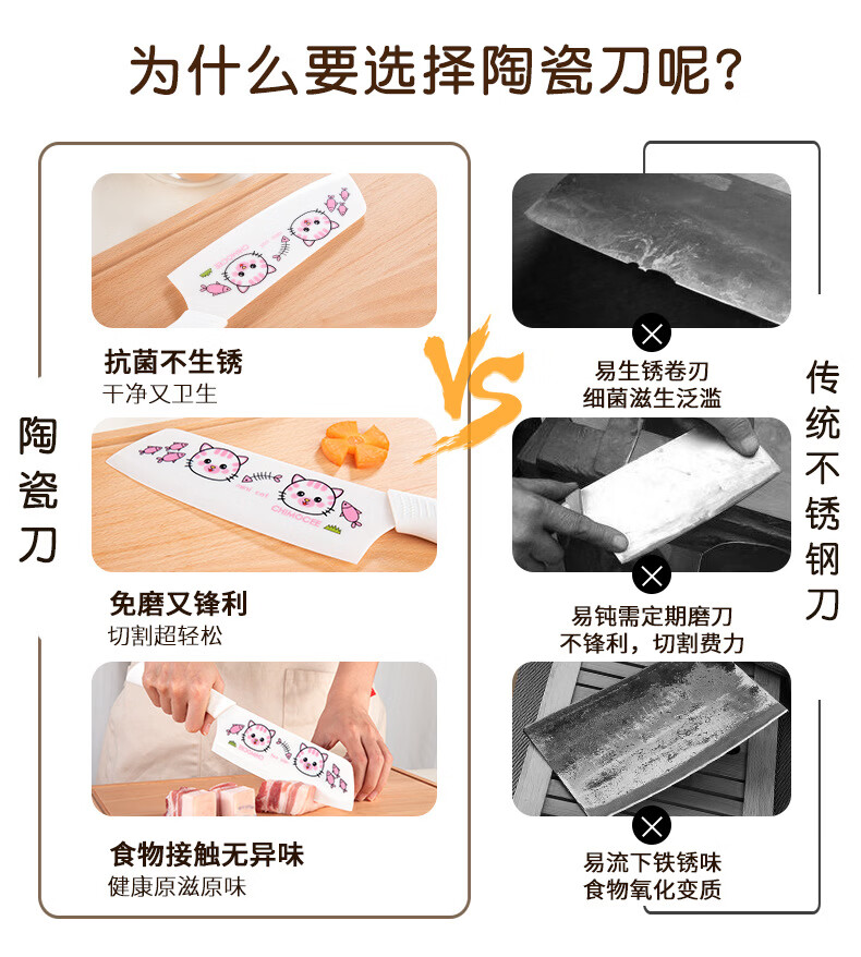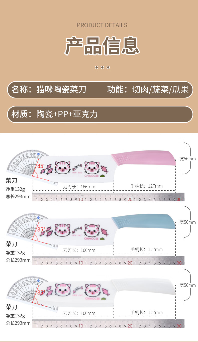 陶瓷小菜刀水果刀厨房用削皮切菜刀家用瓜果刀厨房切菜久用不钝 【纯白色-】陶瓷-菜刀 白色