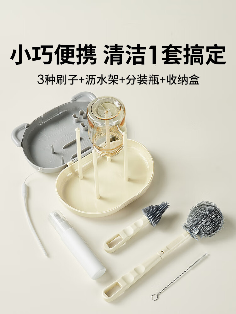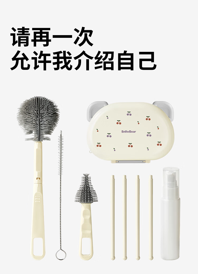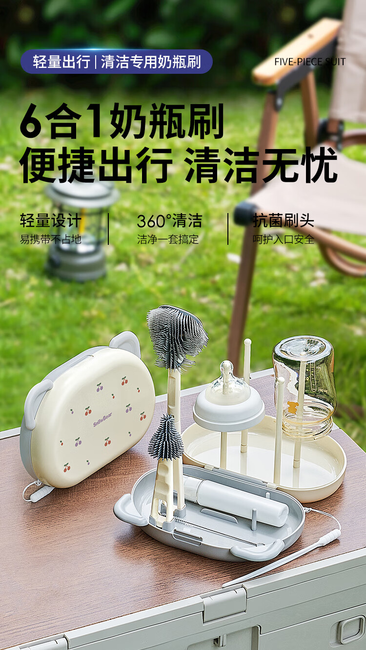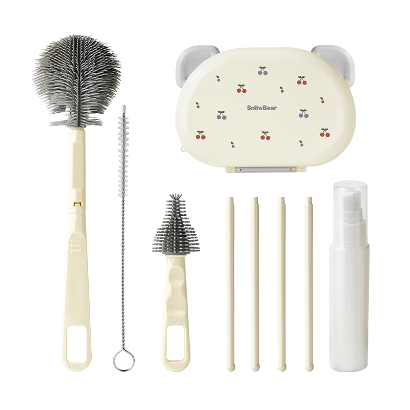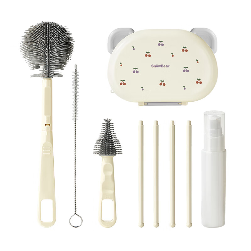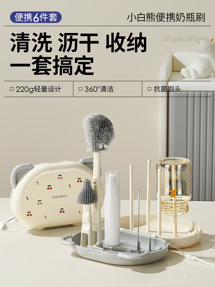 小白熊新品奶瓶清洗刷便携新生婴儿工具套装专用硅胶刷子 【常规款】硅胶便携6件套-樱桃派对8759