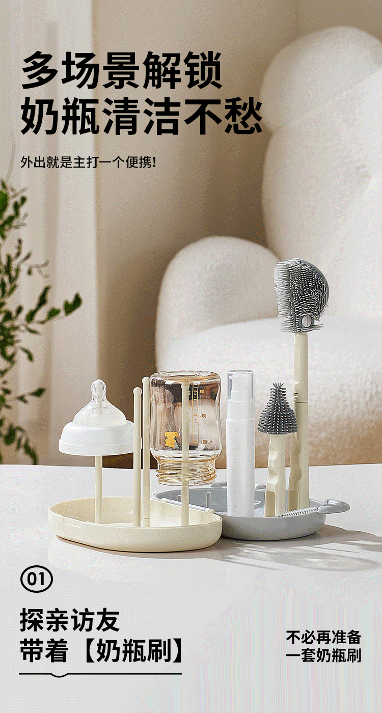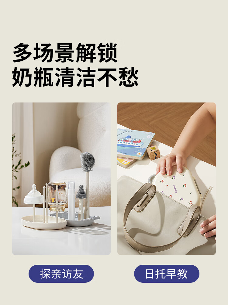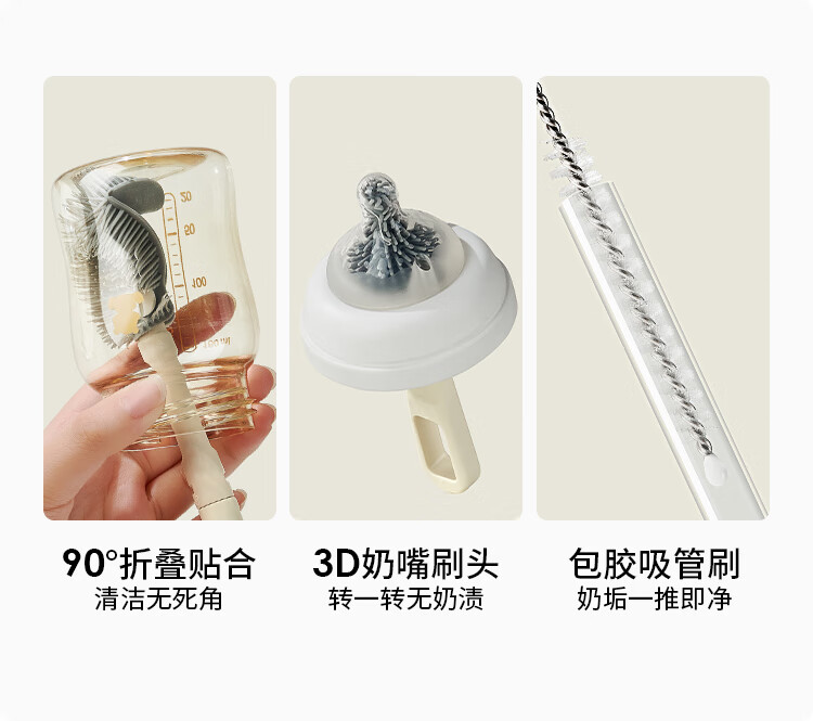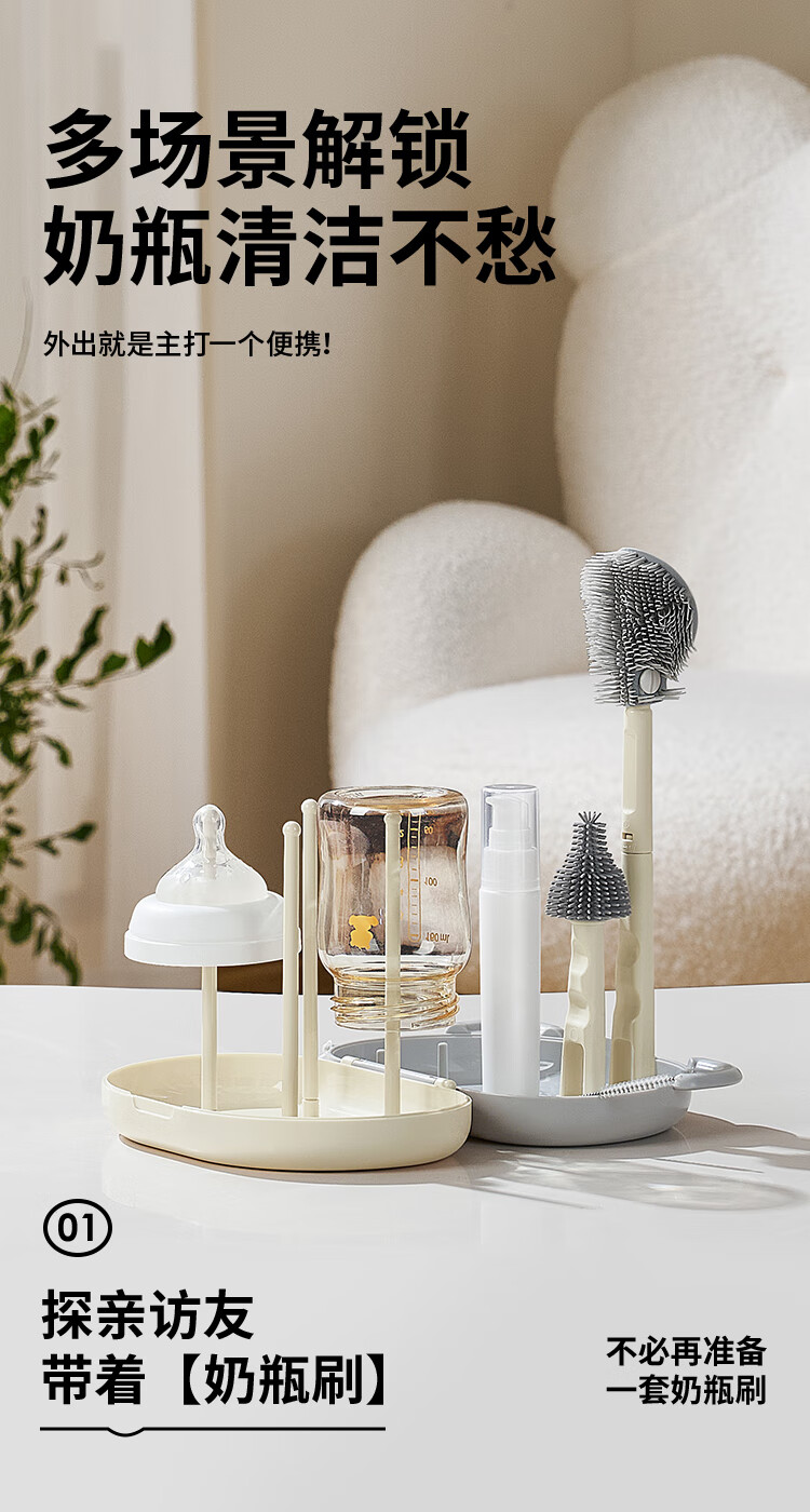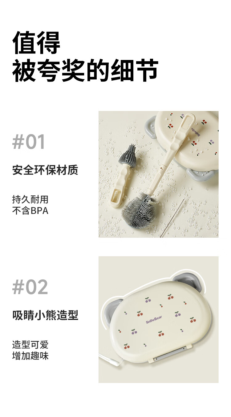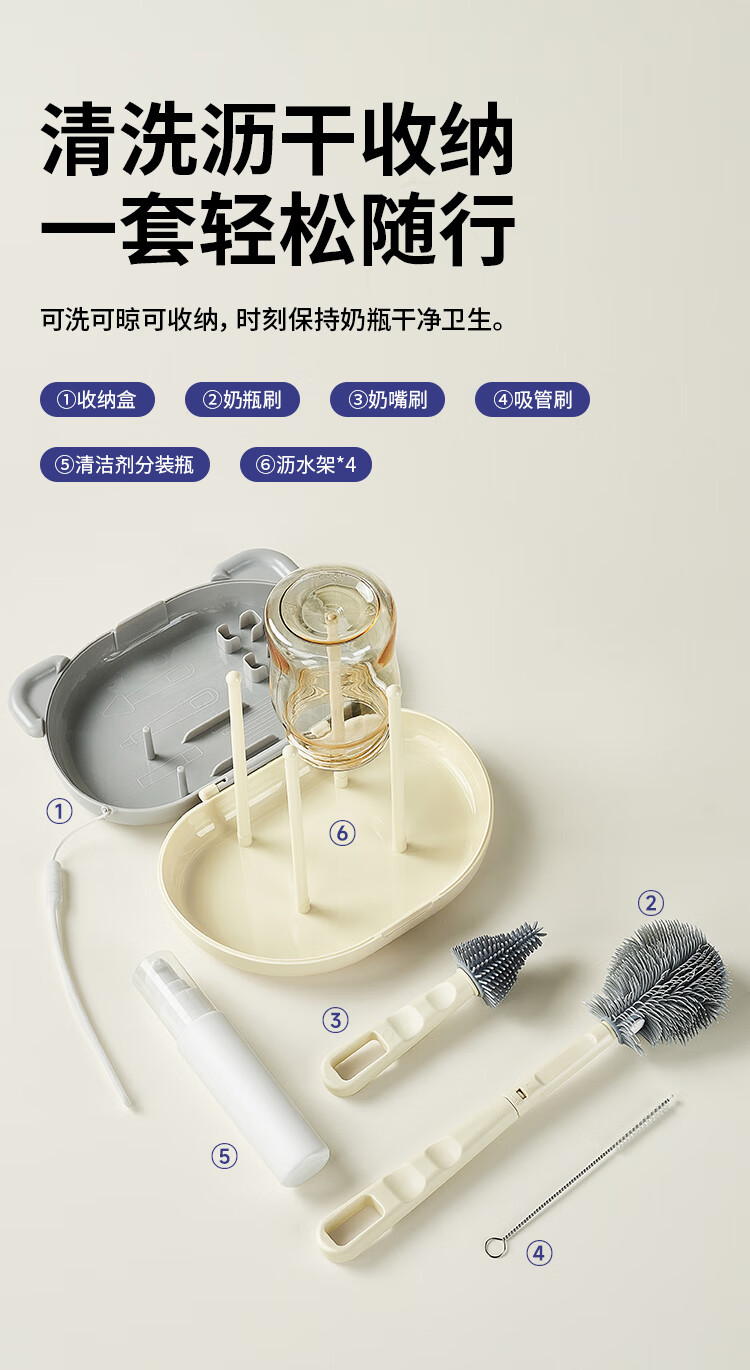 小白熊新品奶瓶清洗刷便携新生婴儿工具套装专用硅胶刷子 【常规款】硅胶便携6件套-樱桃派对8759