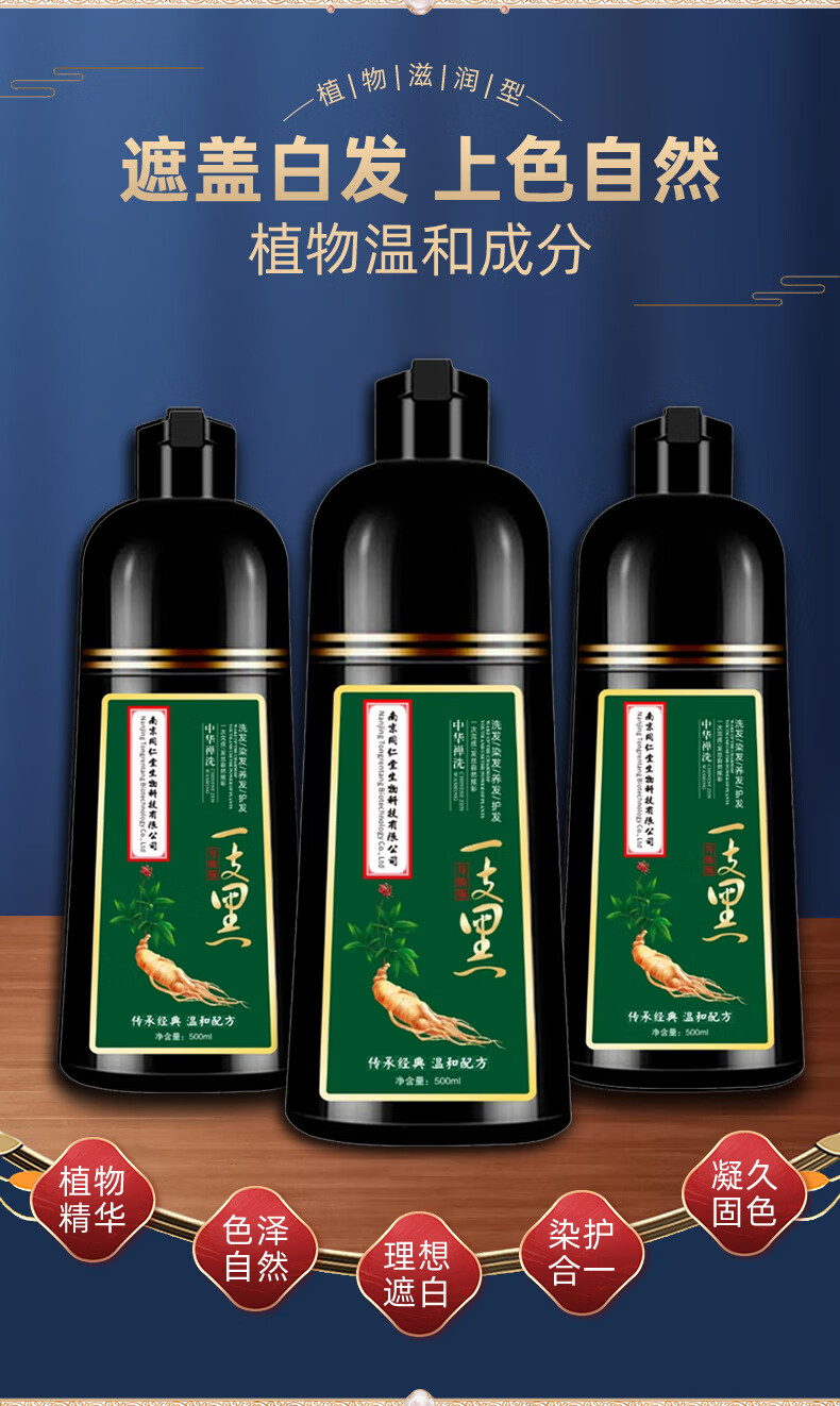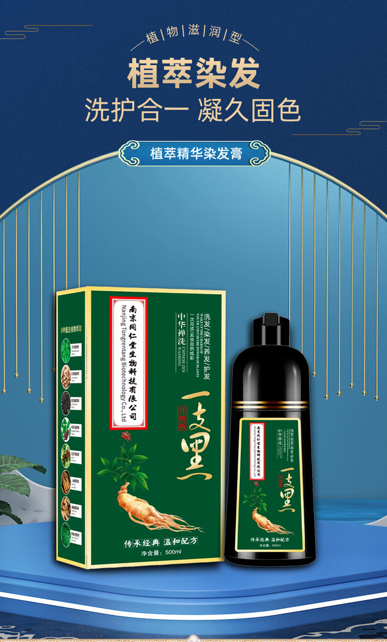 南京同仁堂纯天然植物染发膏一洗上色不沾头皮遮盖白发升级款 葡萄紫色-升级款【植物染发】 500ML[一洗上色】