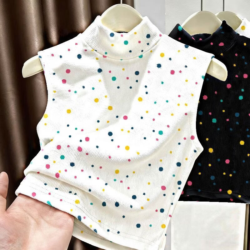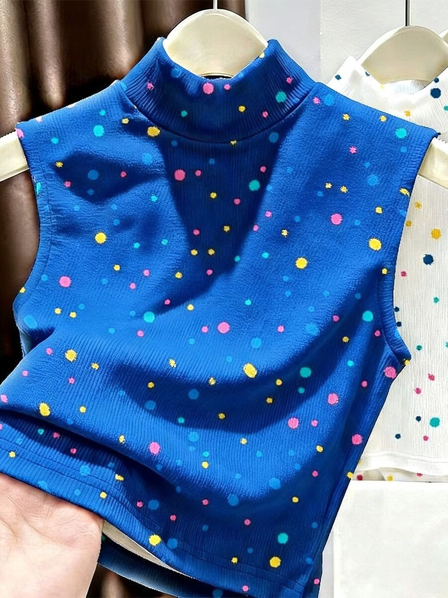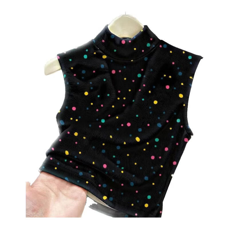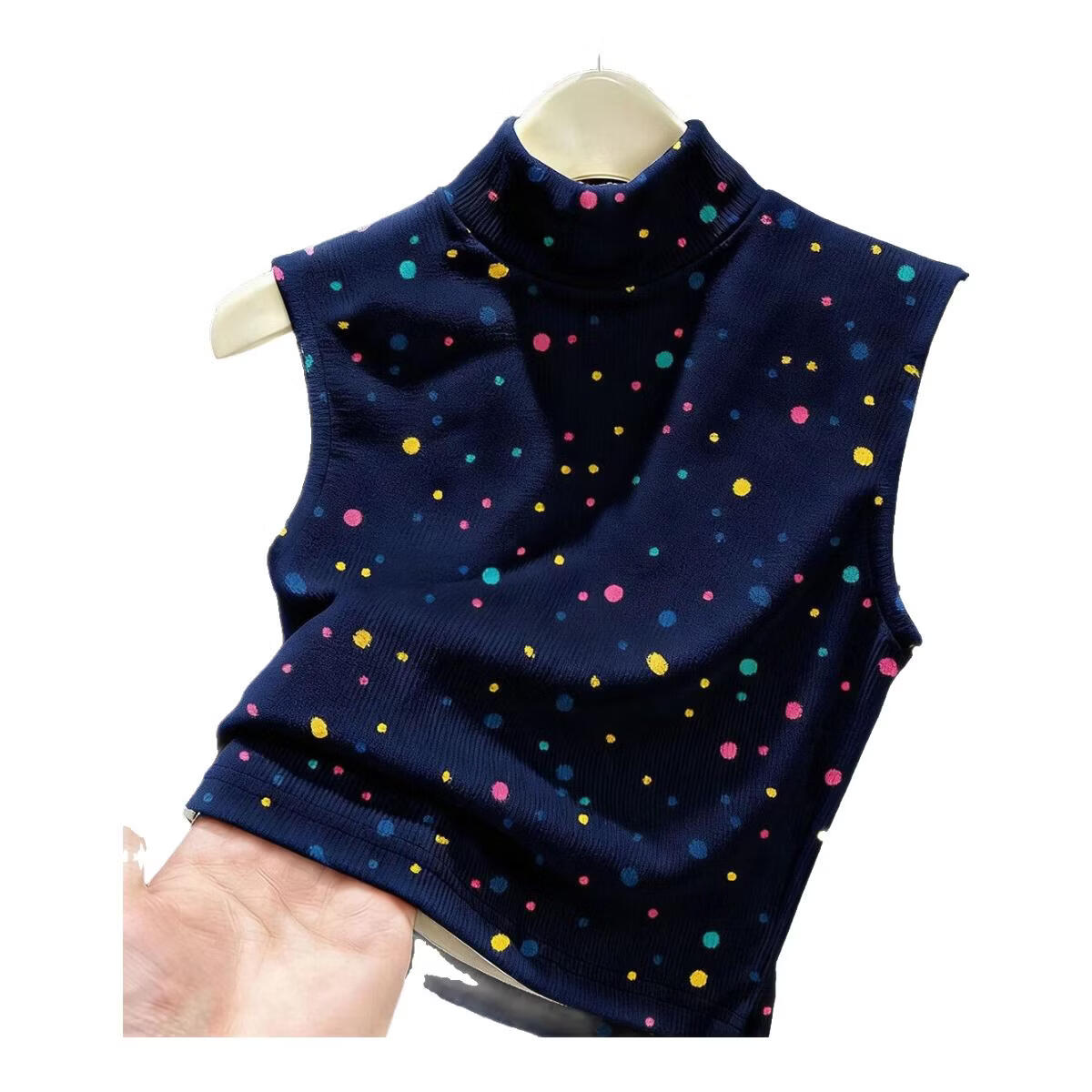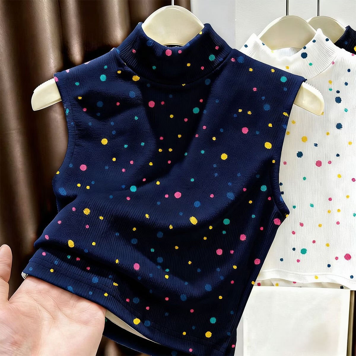 清仓特价德绒保暖背心女内搭打底衫修身半高领无袖上衣洋气质时尚 蓝底波点【德绒背心】 4XL 150斤-165斤