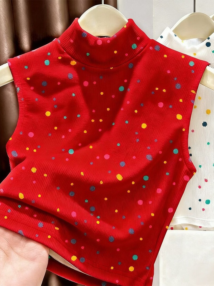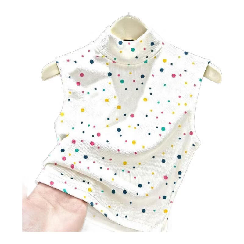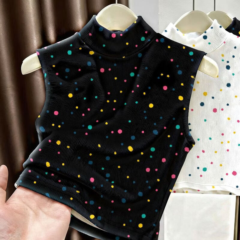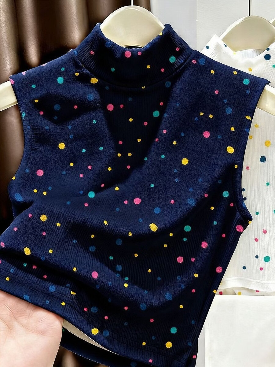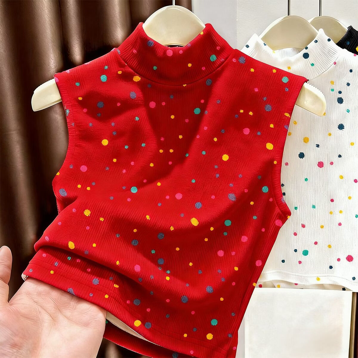 清仓特价德绒保暖背心女内搭打底衫修身半高领无袖上衣洋气质时尚 蓝底波点【德绒背心】 4XL 150斤-165斤