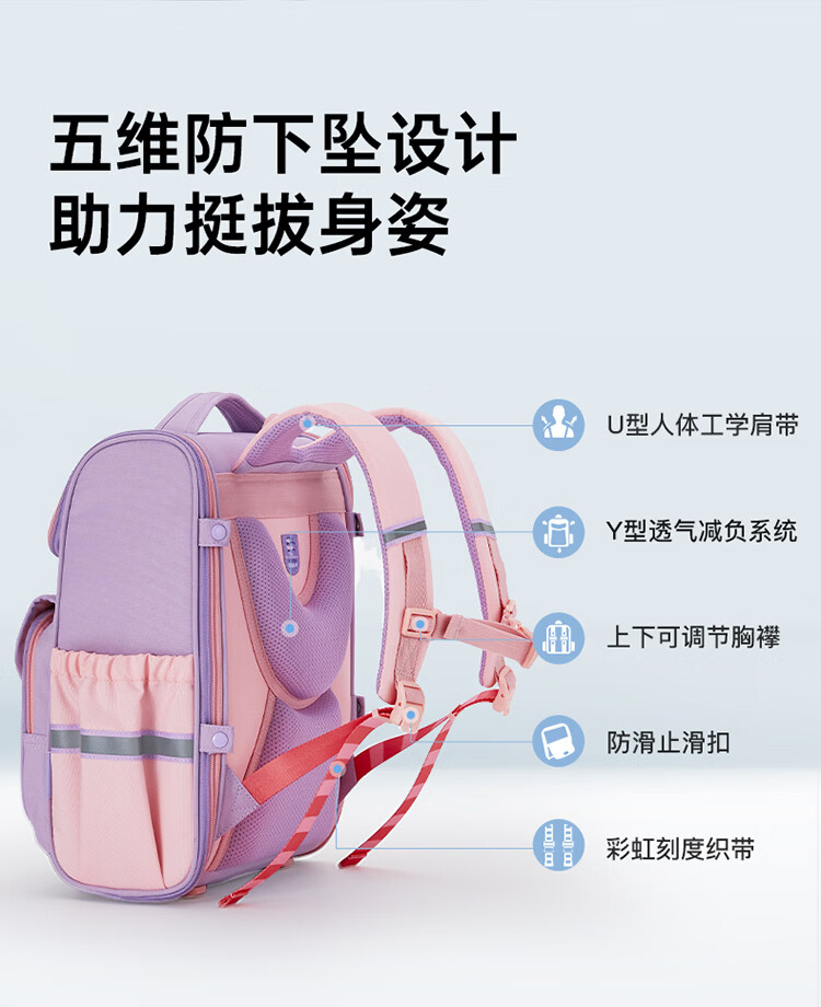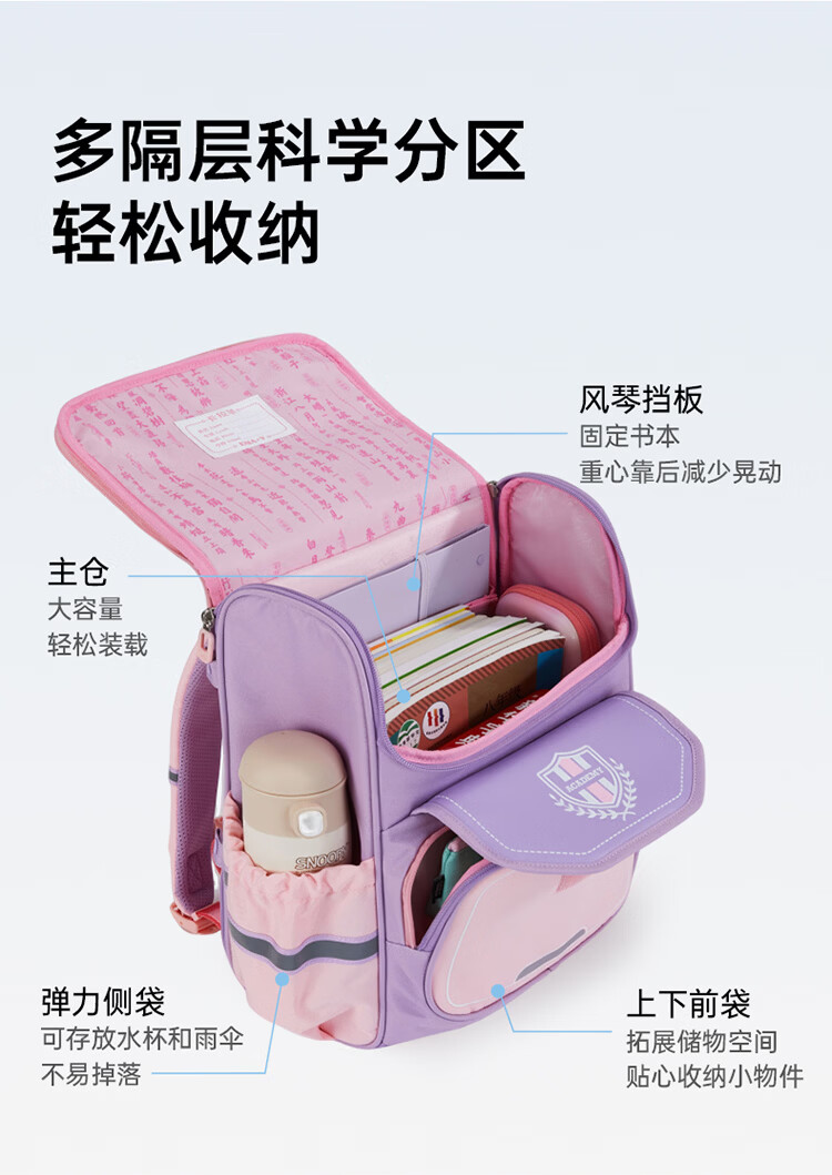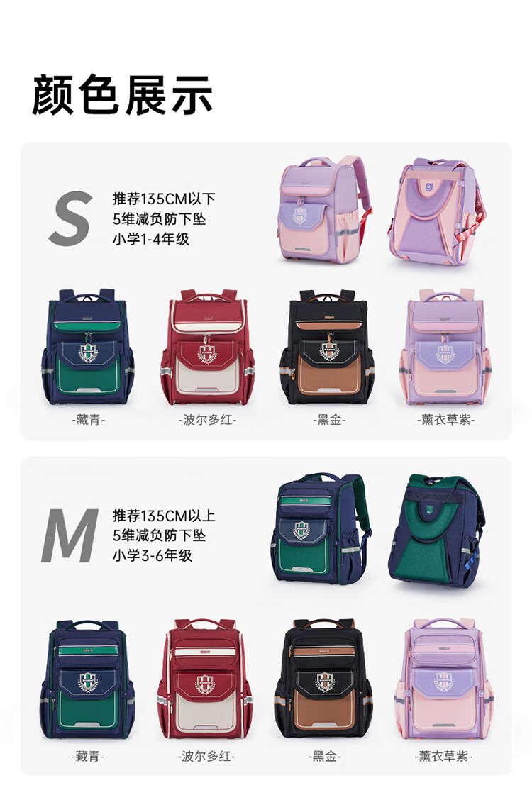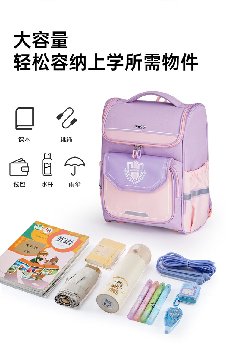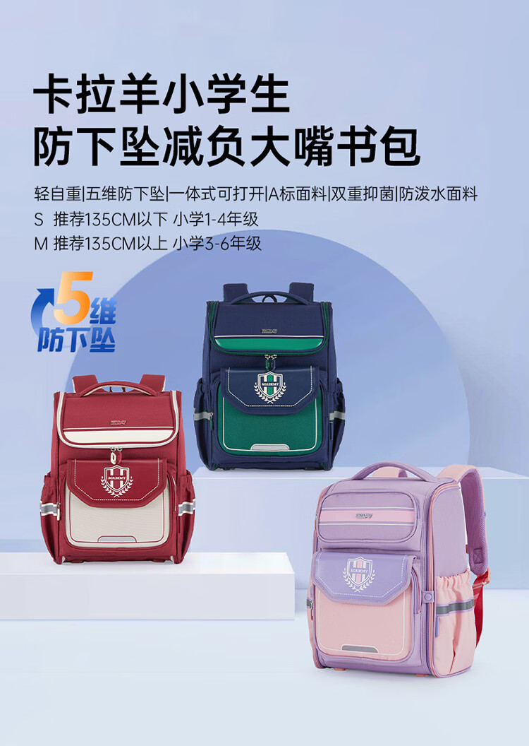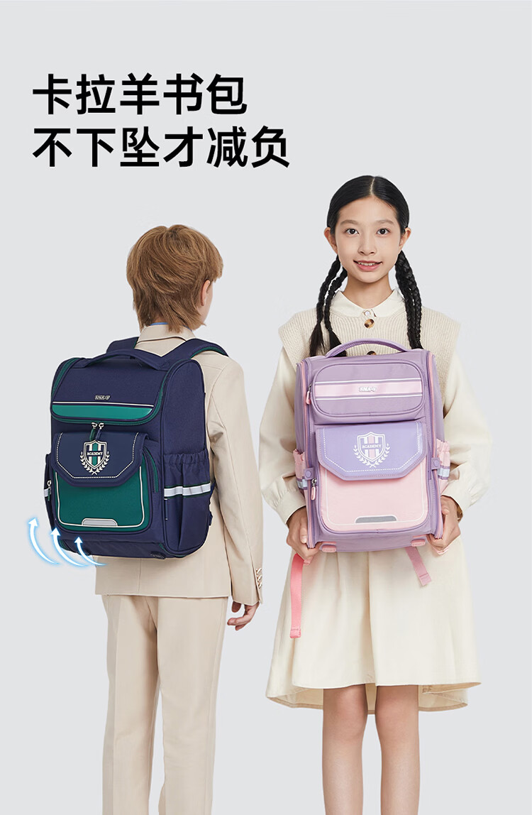 卡拉羊书包小学生1-3-6年级五维减负防下坠护脊儿童书包男女生双肩包 大号(身高135以上)藏青
