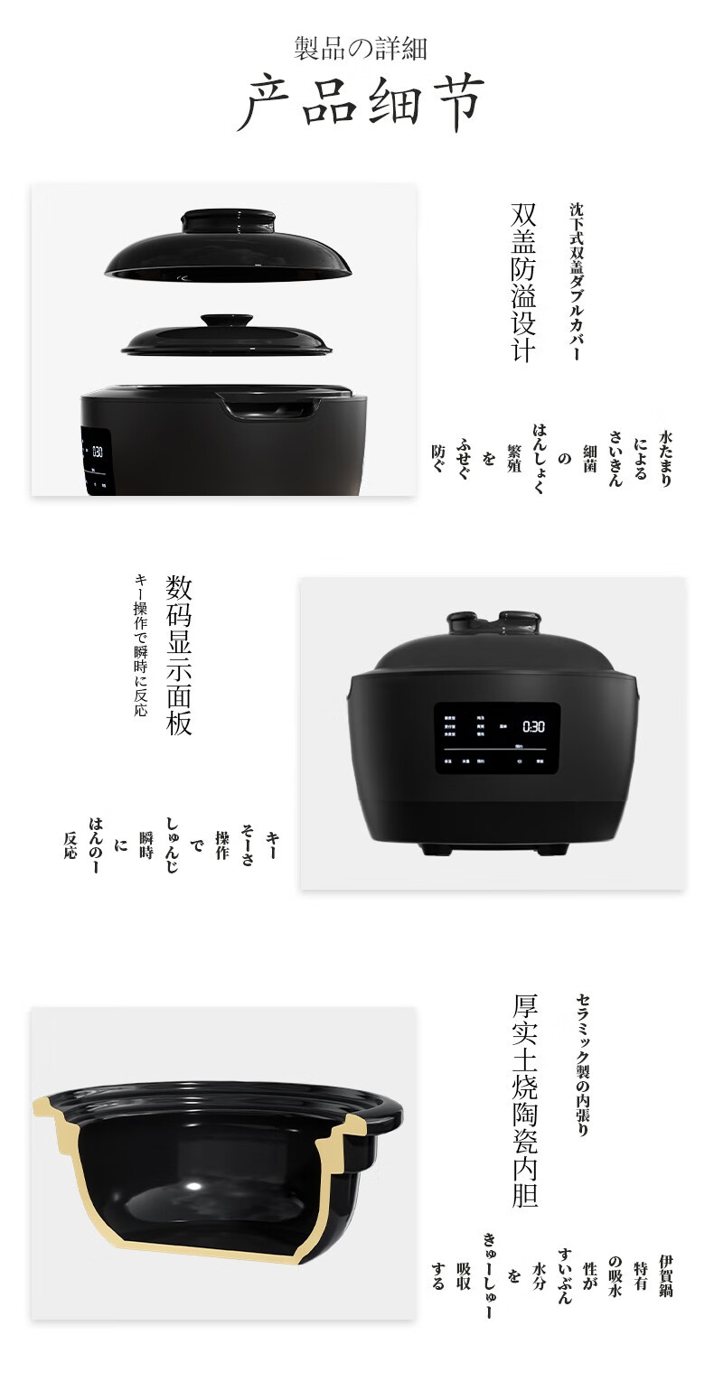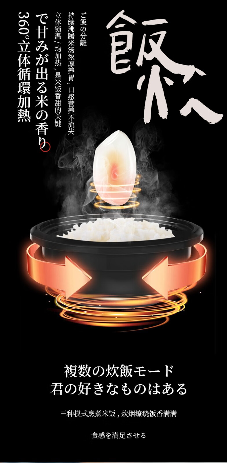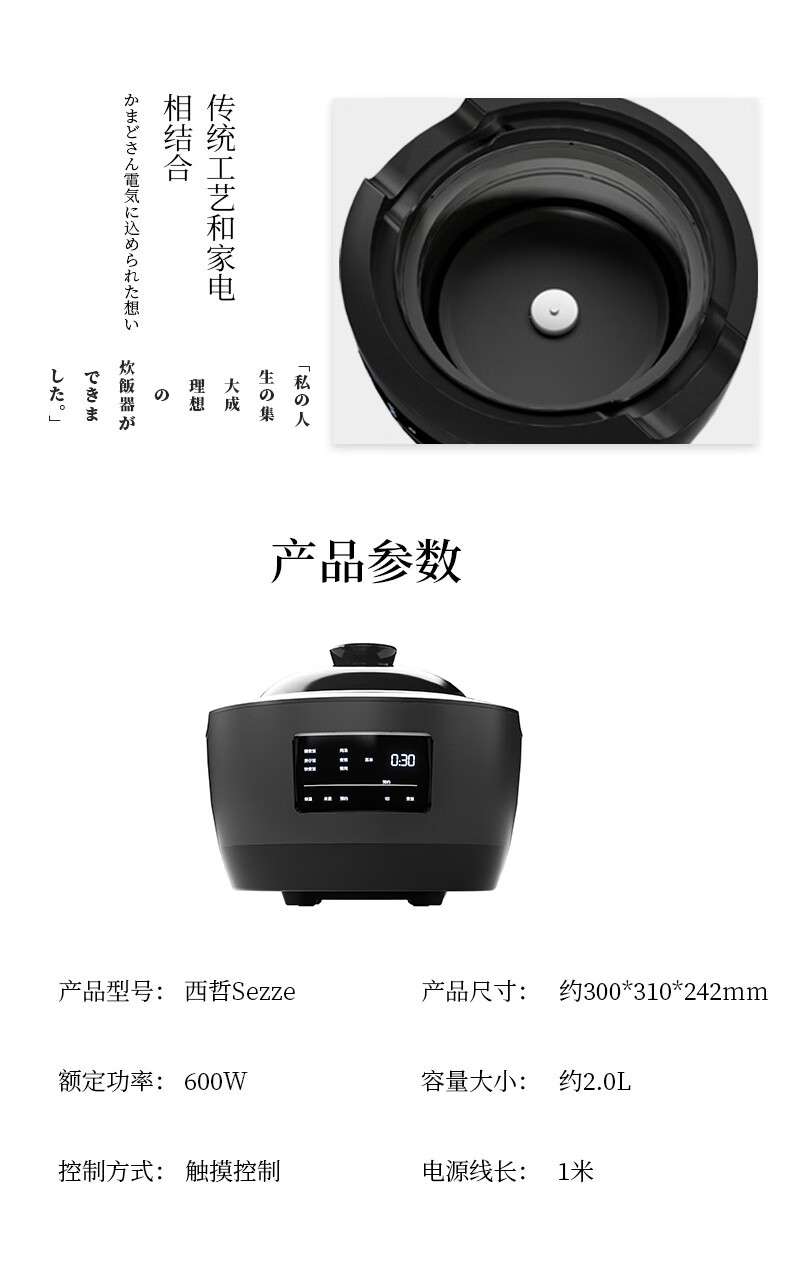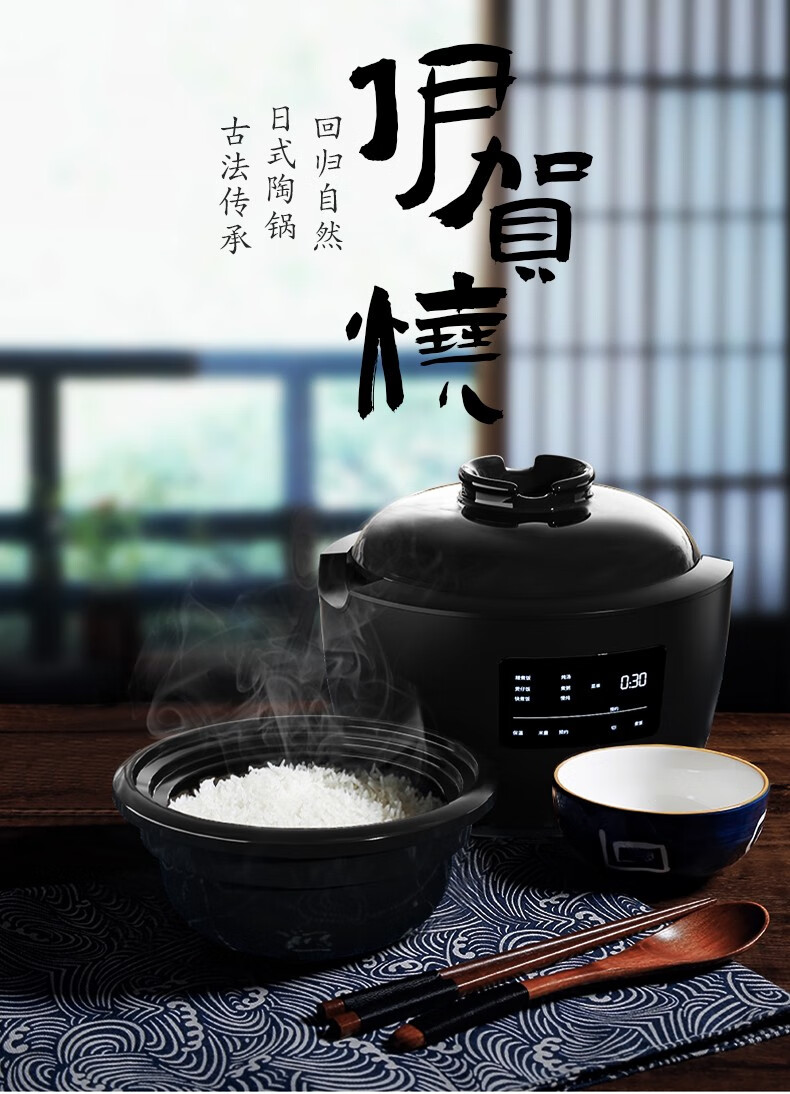 西哲(sezze)伊贺烧二代无涂层电饭煲家用多功能智能定时陶瓷内胆2升121 伊贺烧122 双内胆 3L