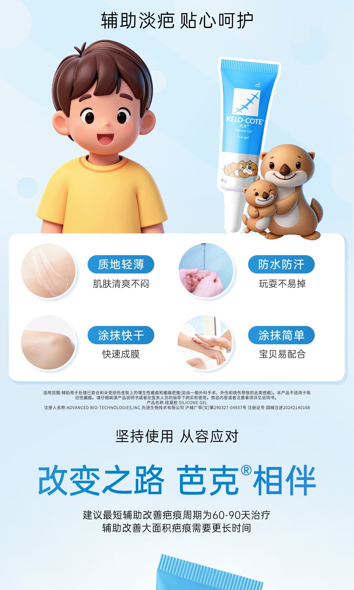 芭克kelocote官方硅凝胶巴克疤克儿童去疤祛疤疤痕膏外伤擦伤修复除疤 【儿童专用】祛疤凝胶6g