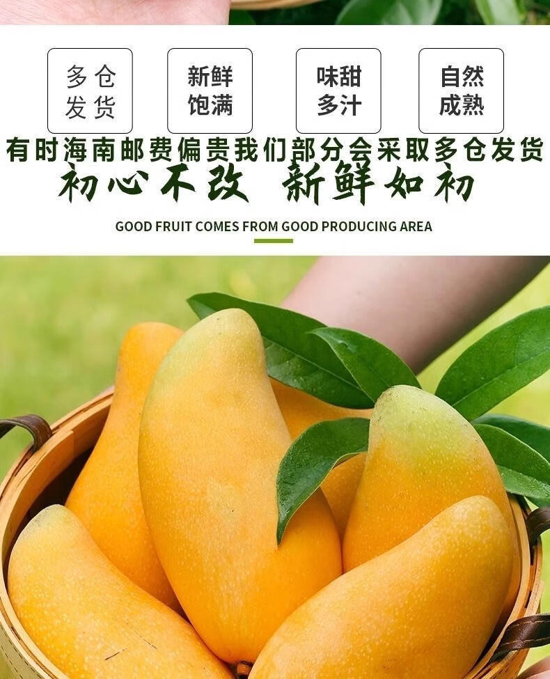 元珍鲜诚金煌芒果 新鲜水果 热带大青皮芒果 孕妇整箱现摘当季 团购送礼 5斤(净重4.5斤)甄选果