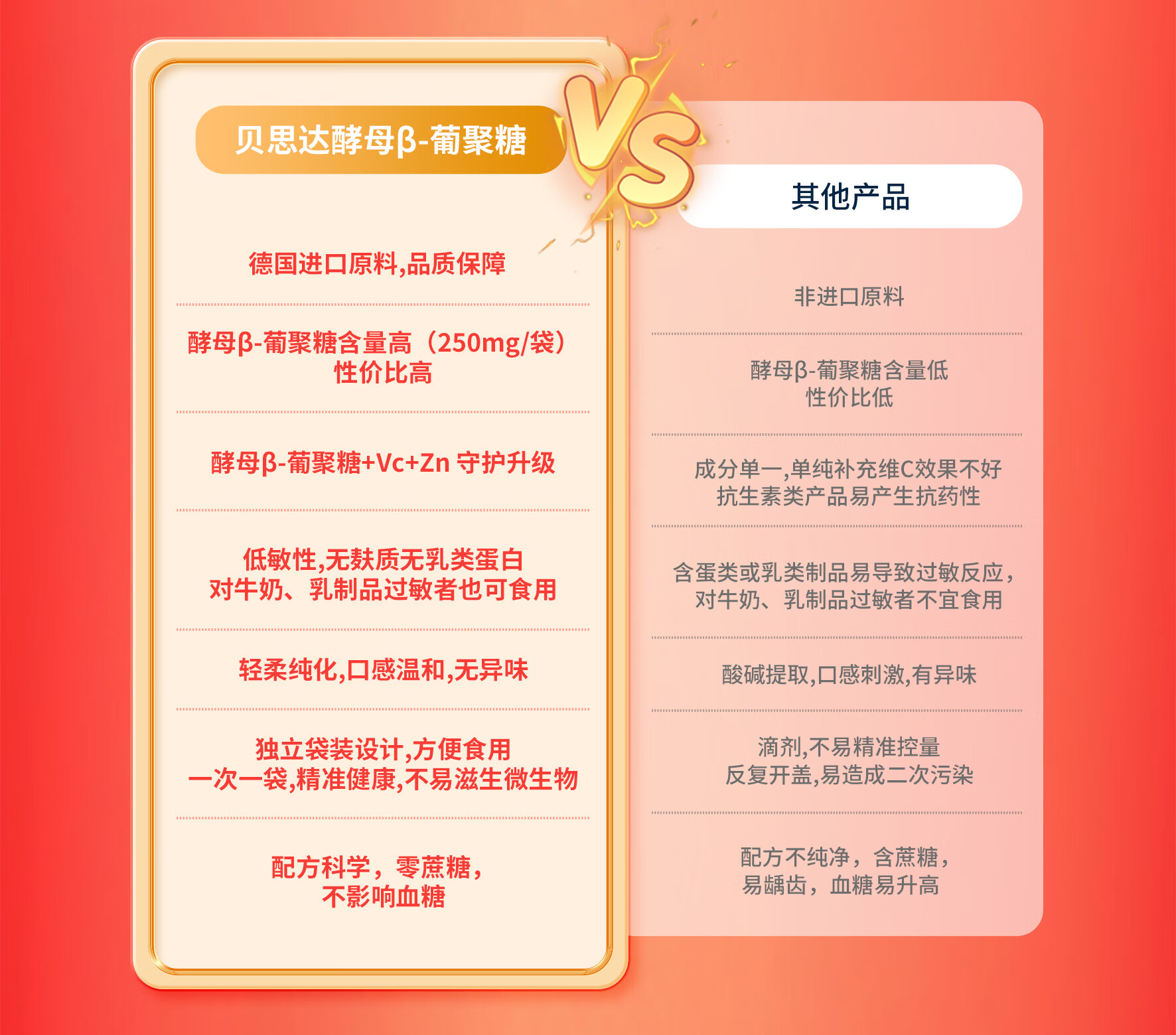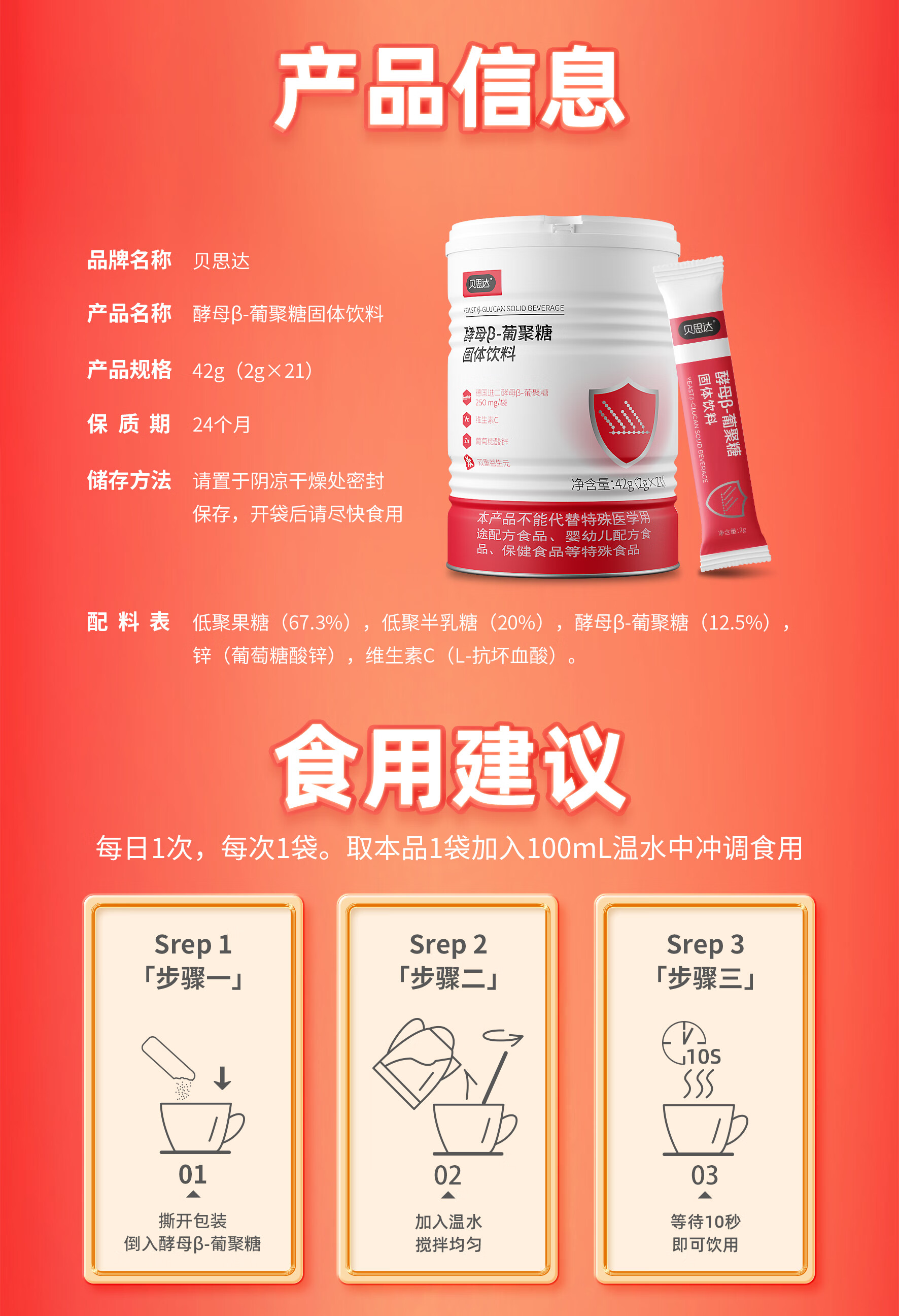 贝思达酵母β葡聚糖固体饮料维C德国进口原料 1罐21袋21天1周期