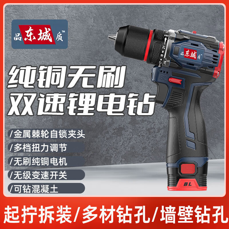 东城的手电钻锂电池无刷小钢炮家用冲击打孔混凝土电动螺丝刀套装 【18V无刷双速】2电+送5批头