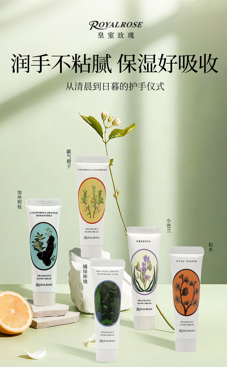 皇室玫瑰护手霜植物香氛精油保湿改善干燥留香秋冬男女生日新年礼物礼盒 90g【女生推荐香3支】橘绿秘境+霸气橙子+小苍兰