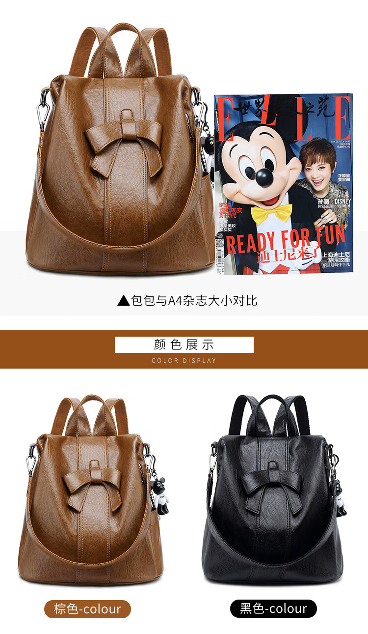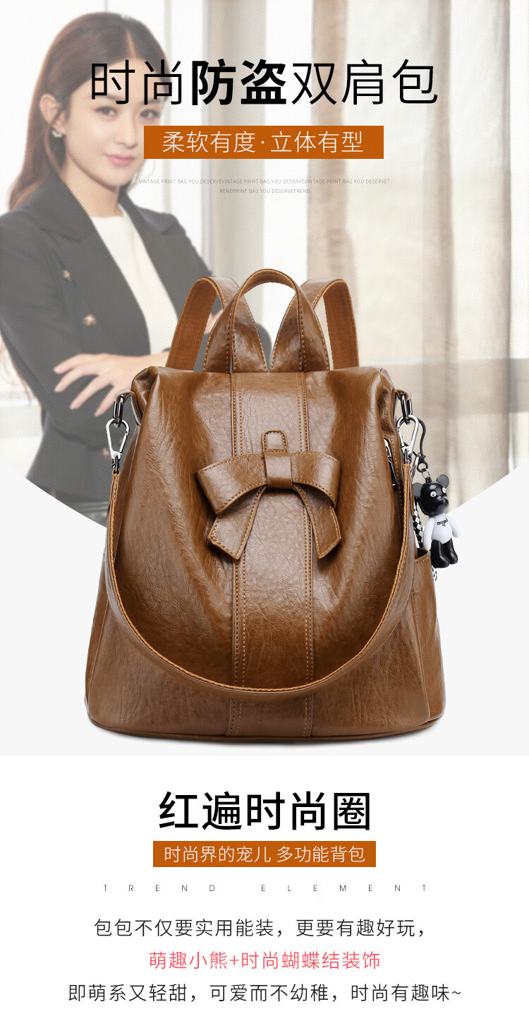 【严选百货】潮流防盗双肩包女2025春夏新款韩版时尚多用可爱蝴蝶 棕色(1个装)