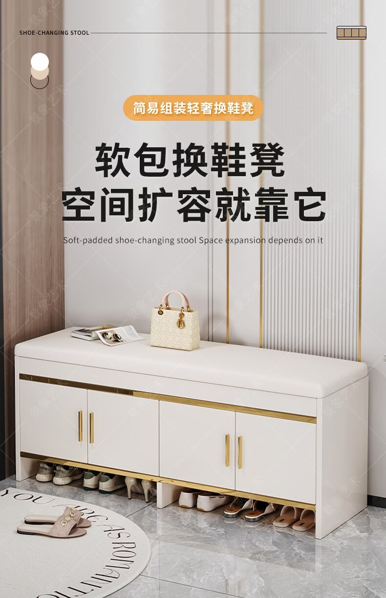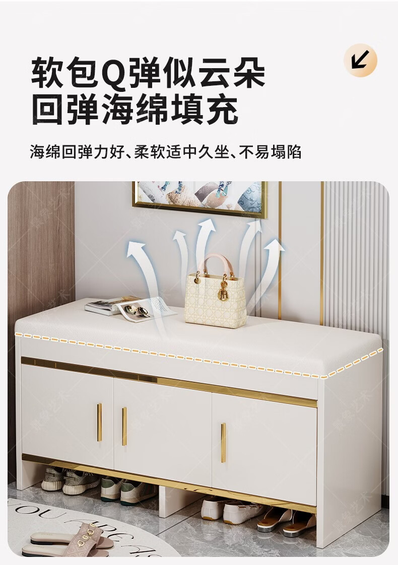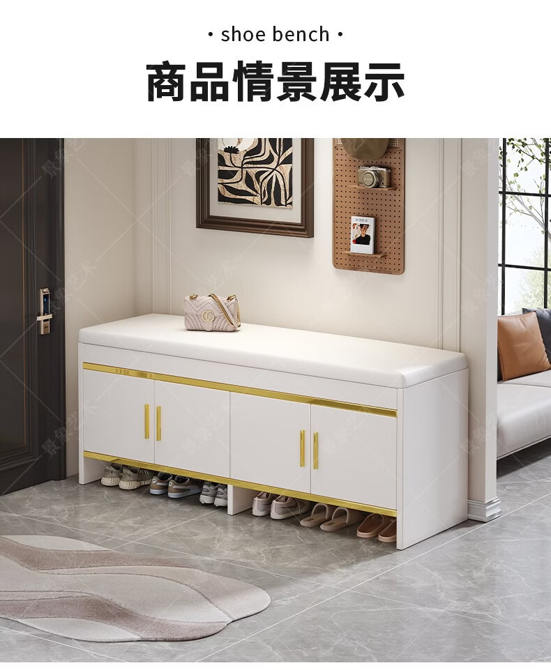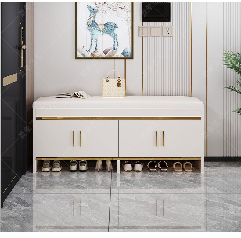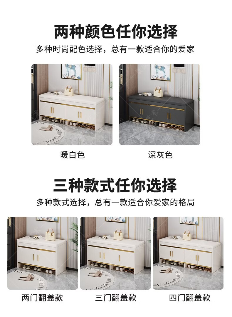 暖堂 WARM HALL穿换鞋凳进门口家用奶油风可坐式入户进门一体玄关小鞋柜 赠品坐垫2个(单拍不发) 加厚15mm 送货上门包安装
