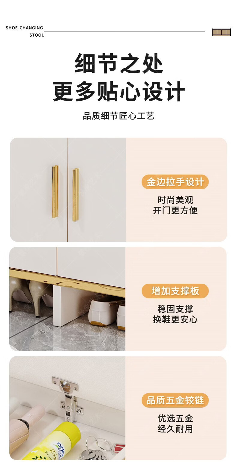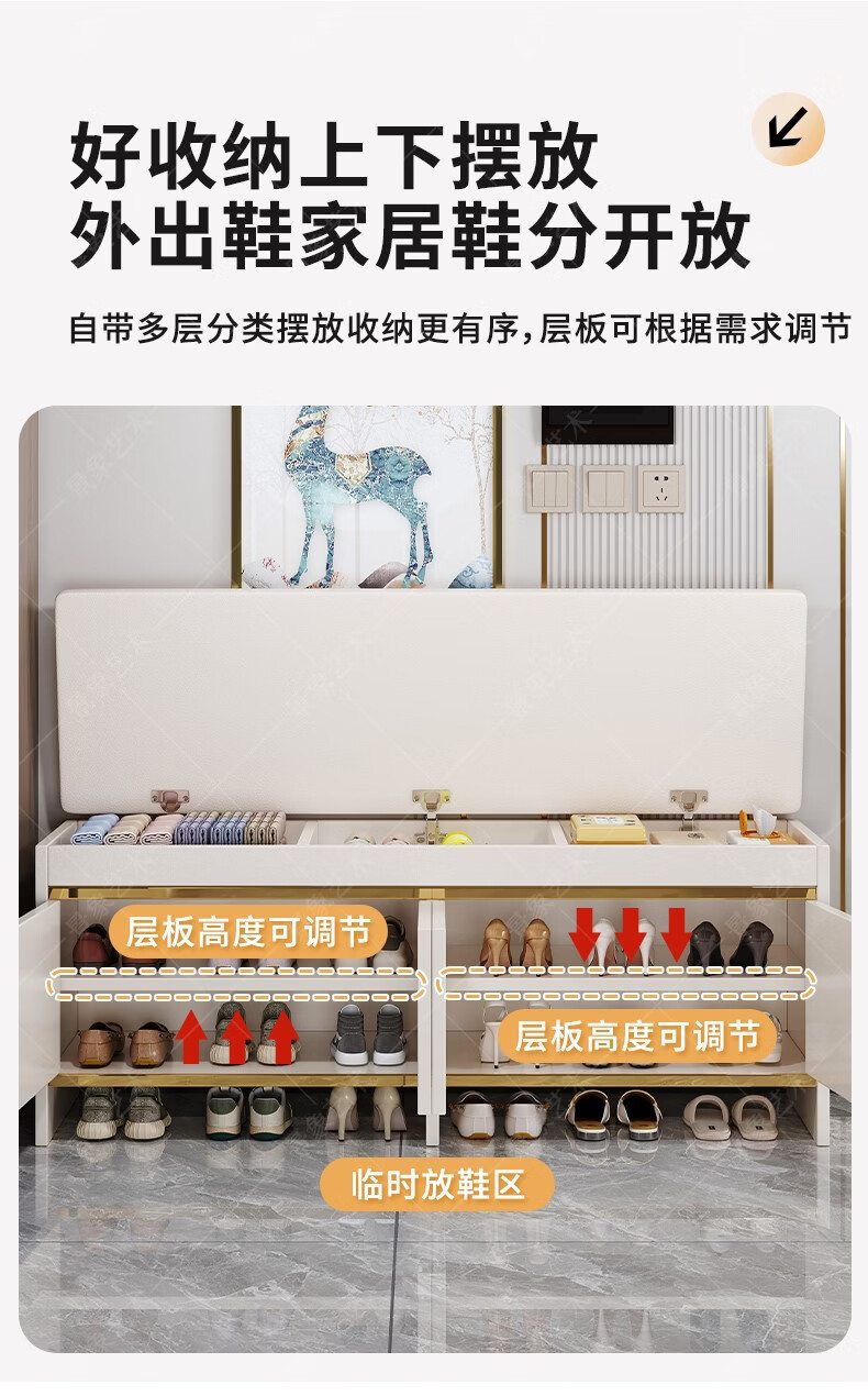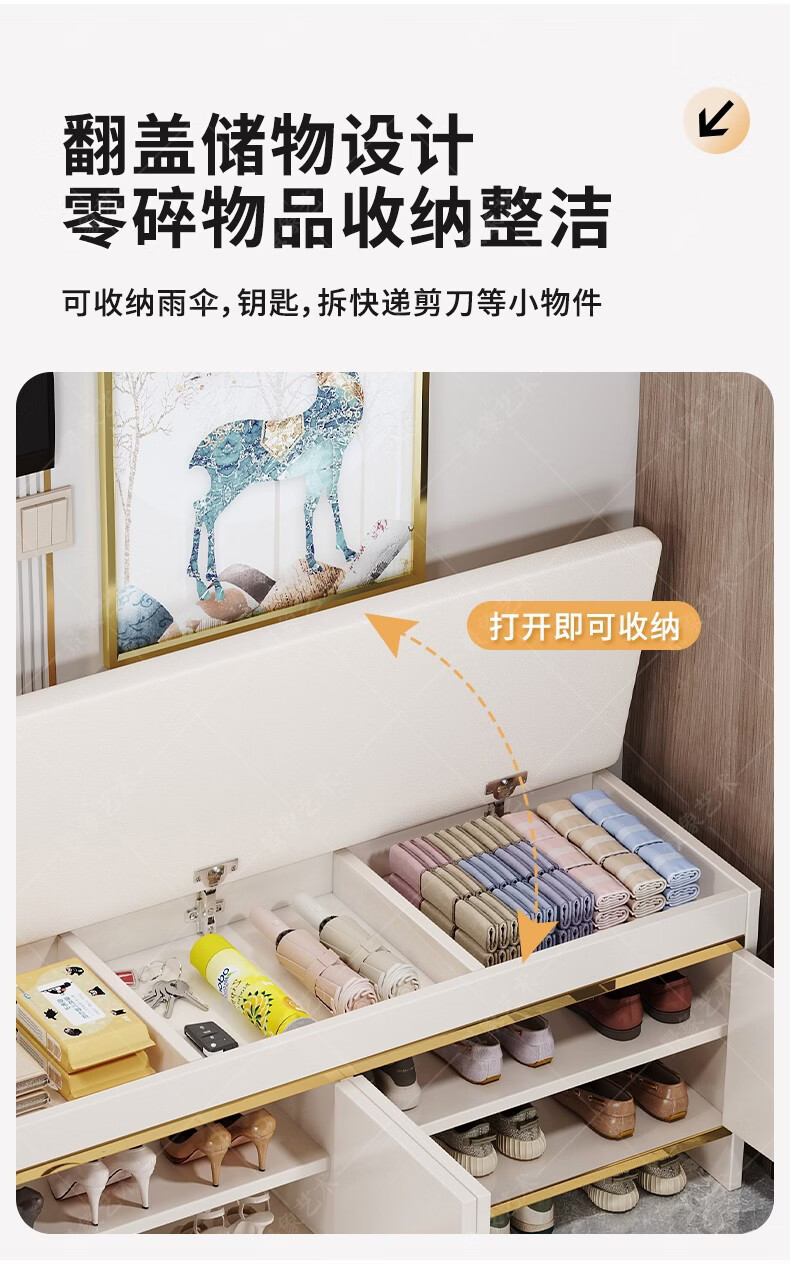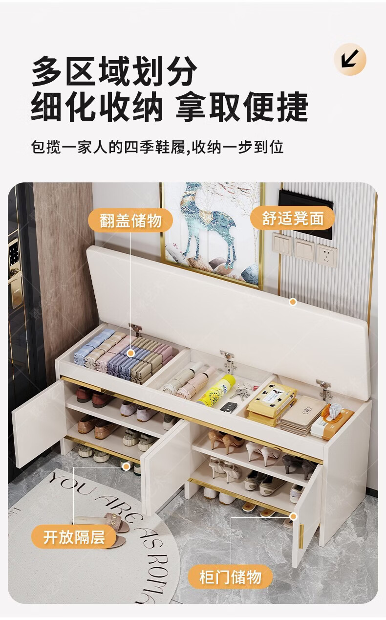 暖堂 WARM HALL穿换鞋凳进门口家用奶油风可坐式入户进门一体玄关小鞋柜 赠品坐垫2个(单拍不发) 加厚15mm 送货上门包安装