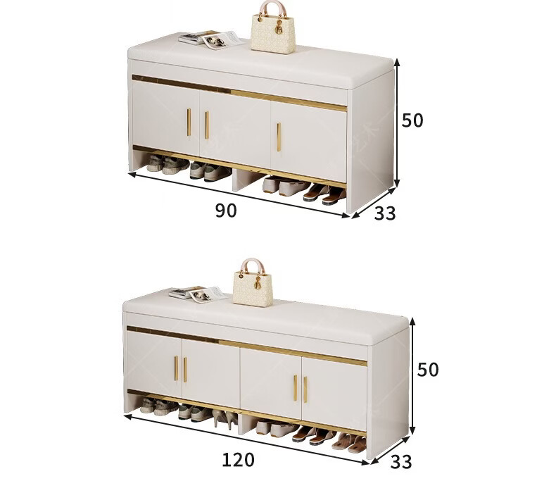 狄狮顿换鞋凳现代轻奢感入户玄关储物一体式穿鞋凳家用可坐矮鞋柜子 金边深灰四门款120CM