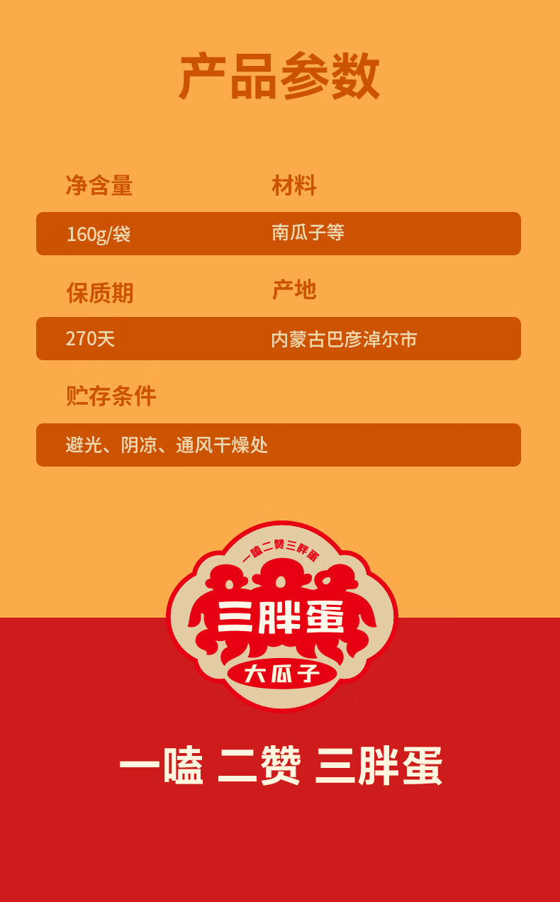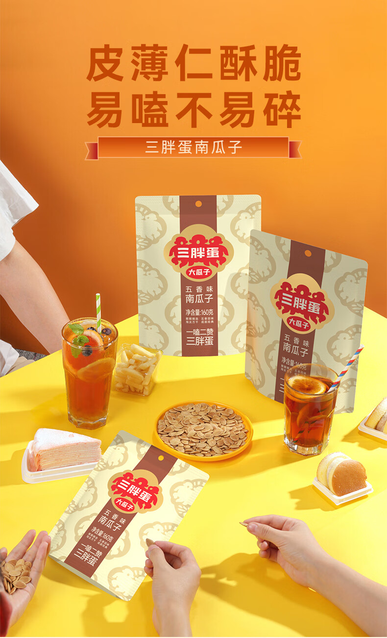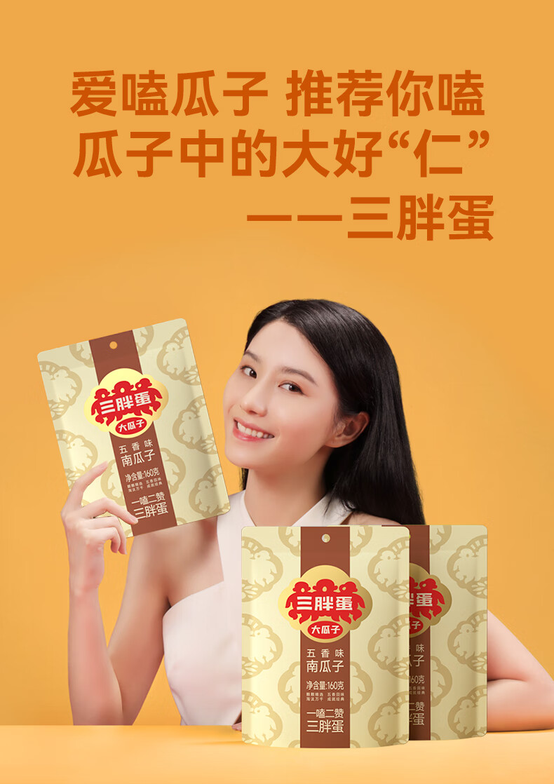 三胖蛋五香南瓜子160g(20g*8包)独立包装小袋坚果炒货南瓜籽仁休闲零食