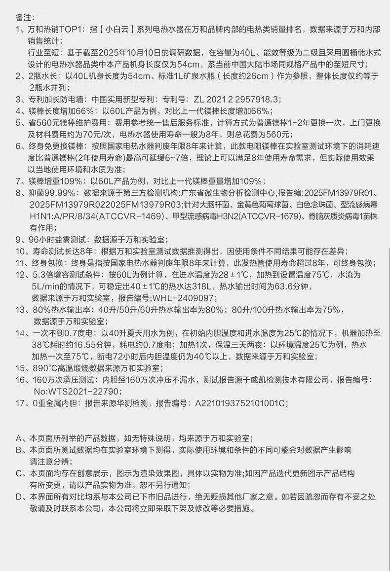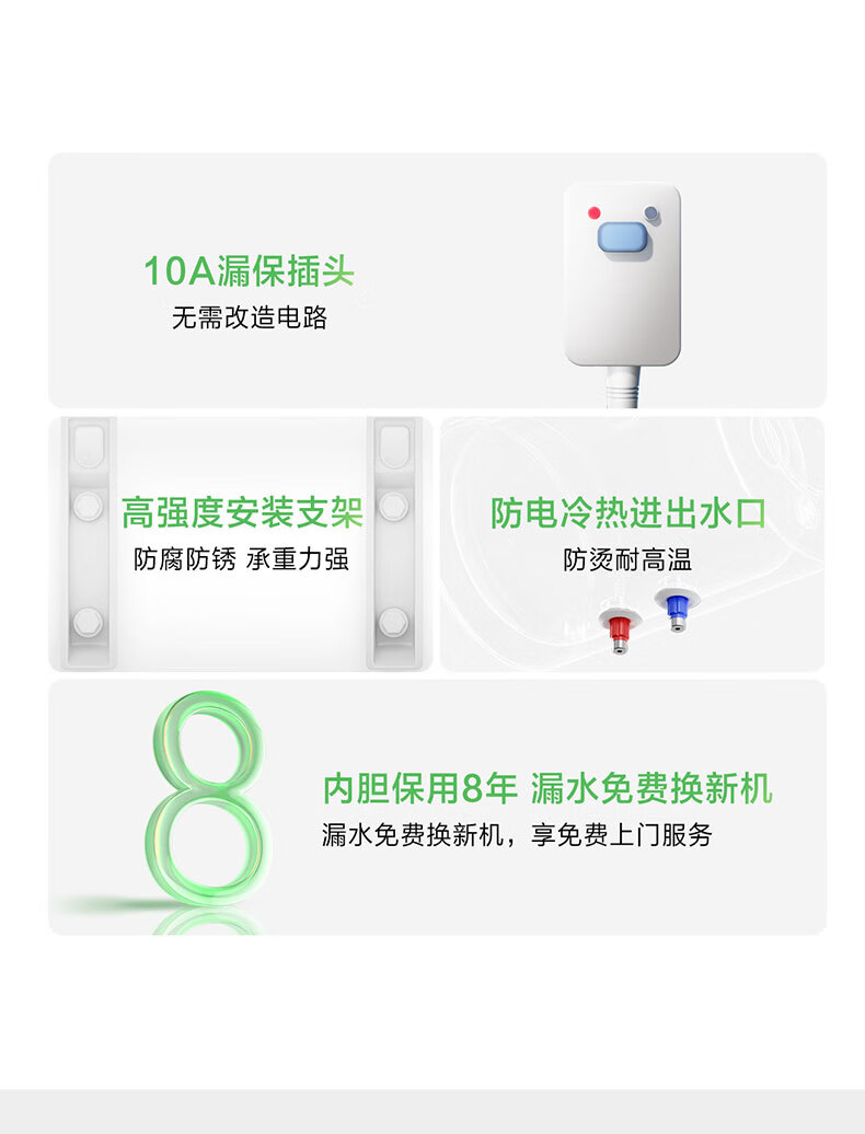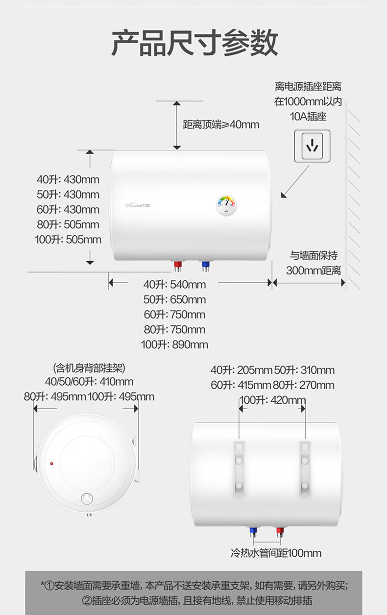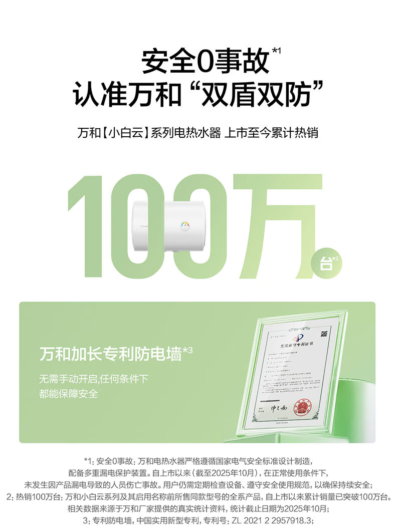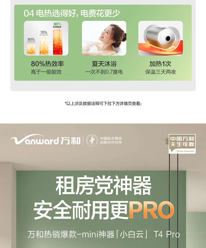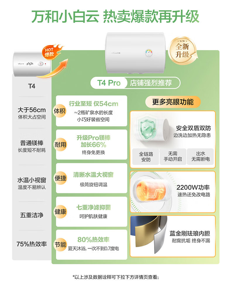 万和【小白云T4Pro】50升2200W速热免换镁棒专利防电墙出水无需断电小体积租房优选电热水器