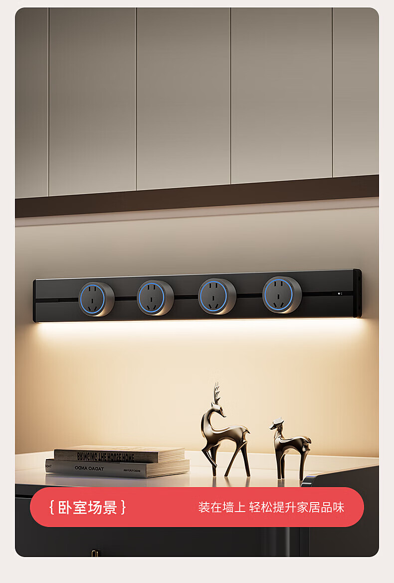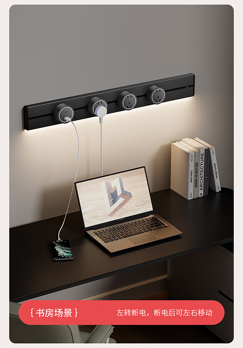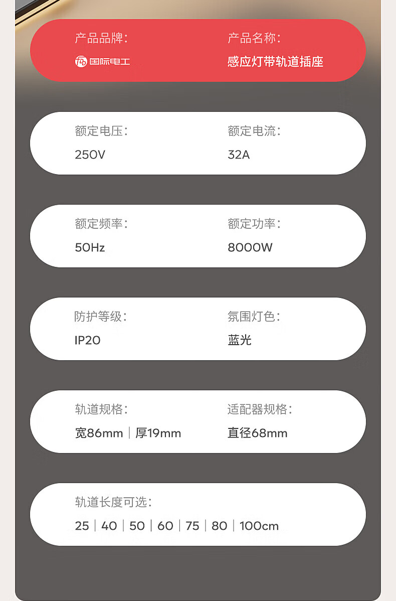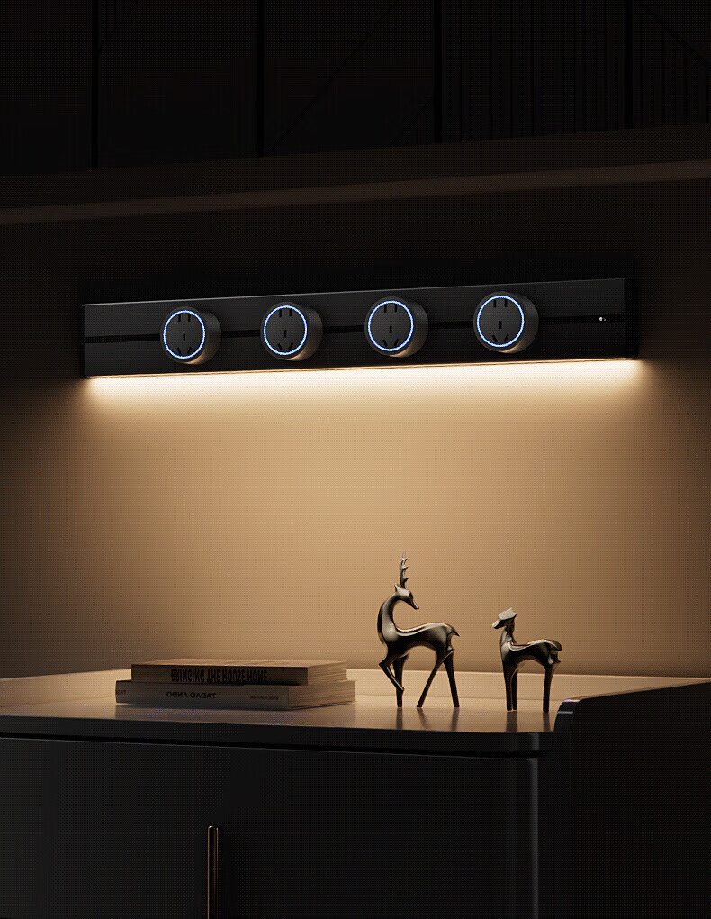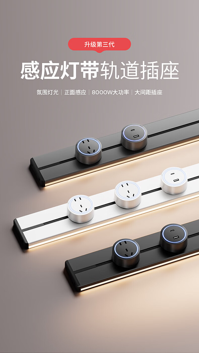 国际电工明装感应灯带轨道插座氛围暖光可移动壁挂式家用厨房电力导轨插排 黑色【感应灯带轨道】 USB+Type-c适配器(不含轨道)