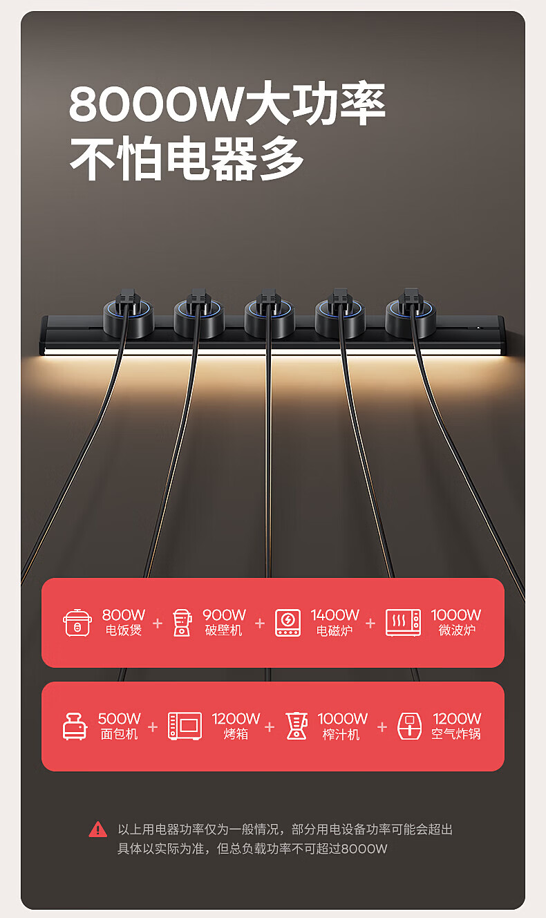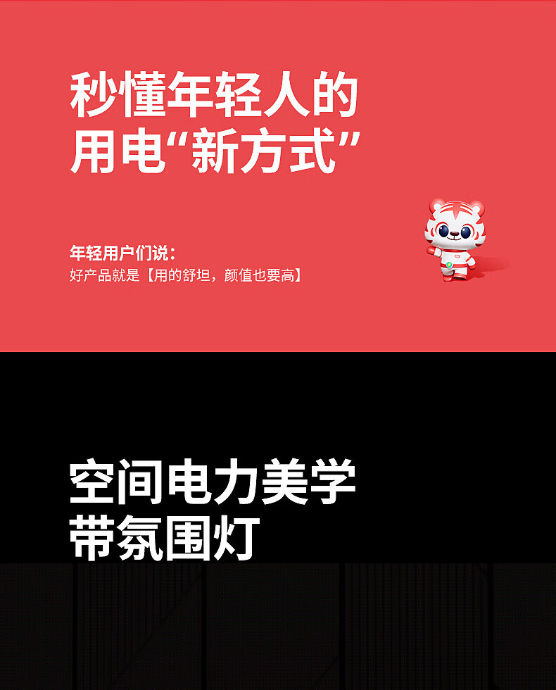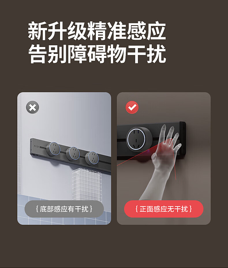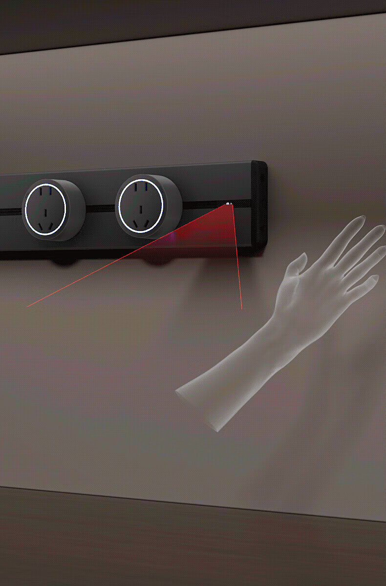 国际电工明装感应灯带轨道插座氛围暖光可移动壁挂式家用厨房电力导轨插排 黑色【感应灯带轨道】 USB+Type-c适配器(不含轨道)
