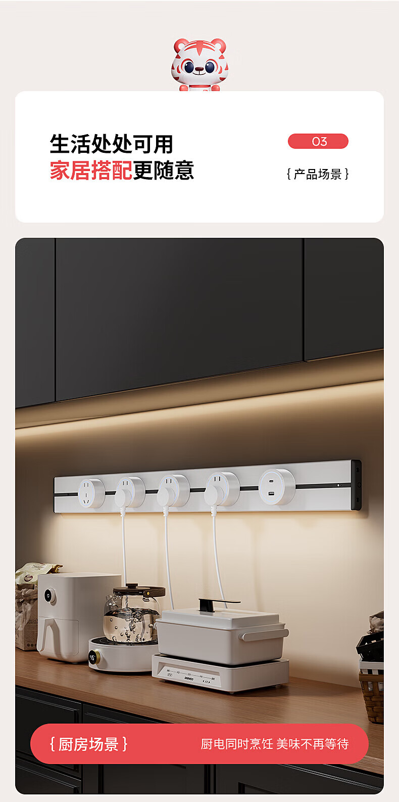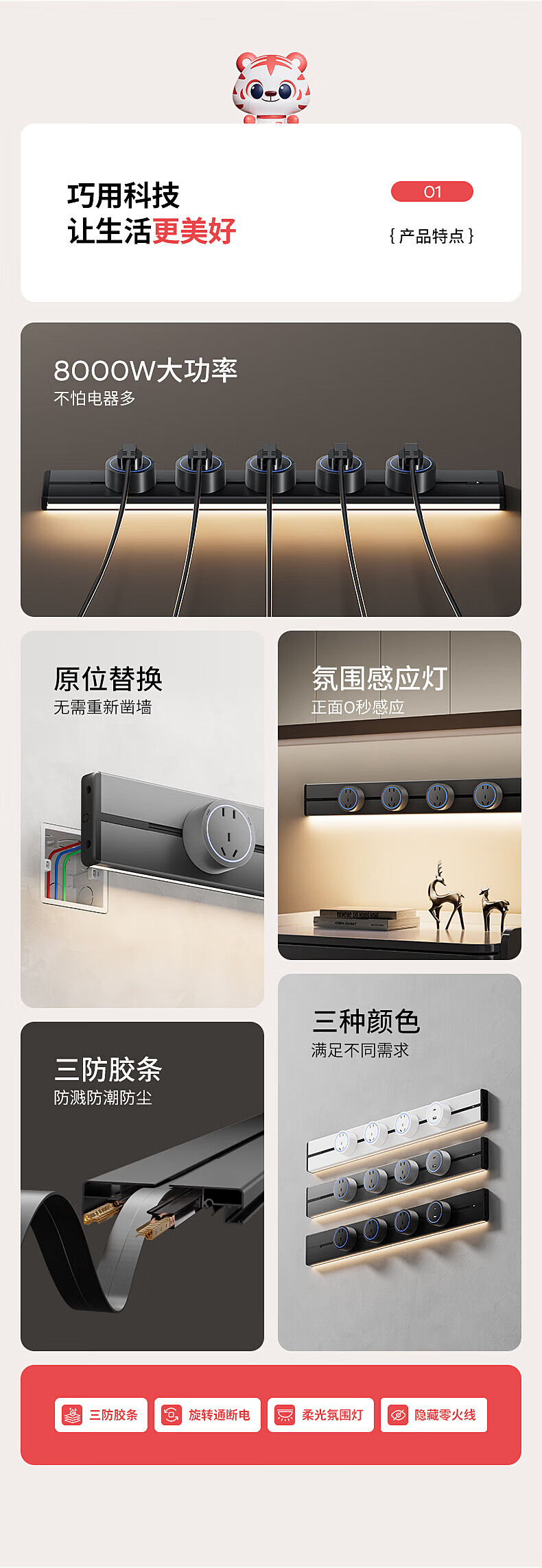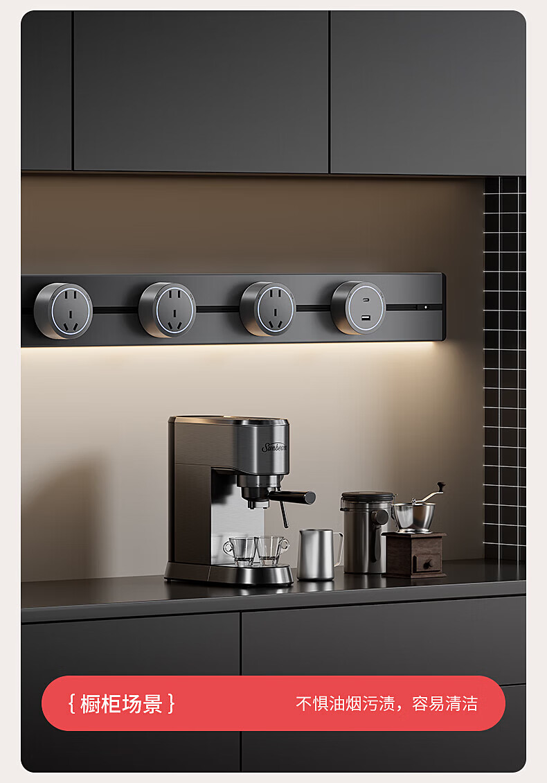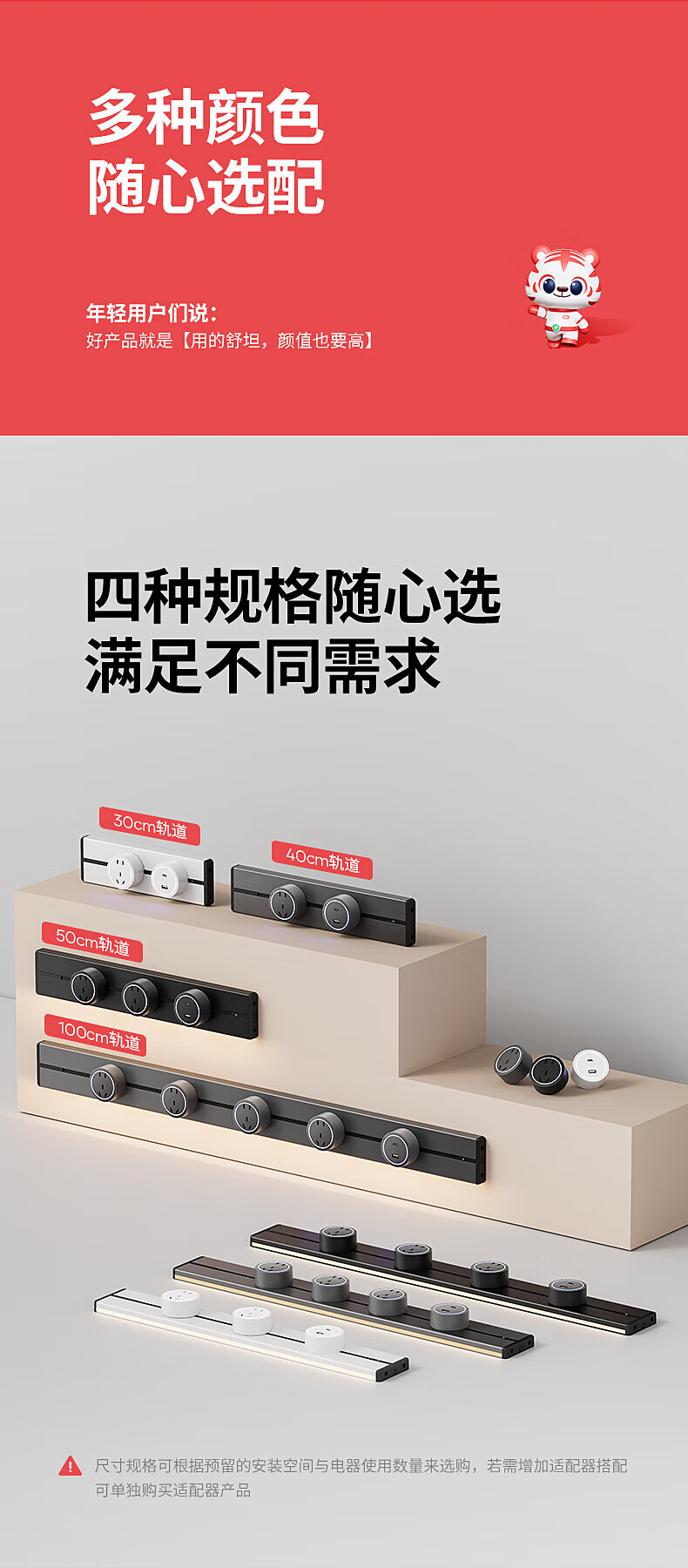国际电工明装感应灯带轨道插座氛围暖光可移动壁挂式家用厨房电力导轨插排 黑色【感应灯带轨道】 USB+Type-c适配器(不含轨道)