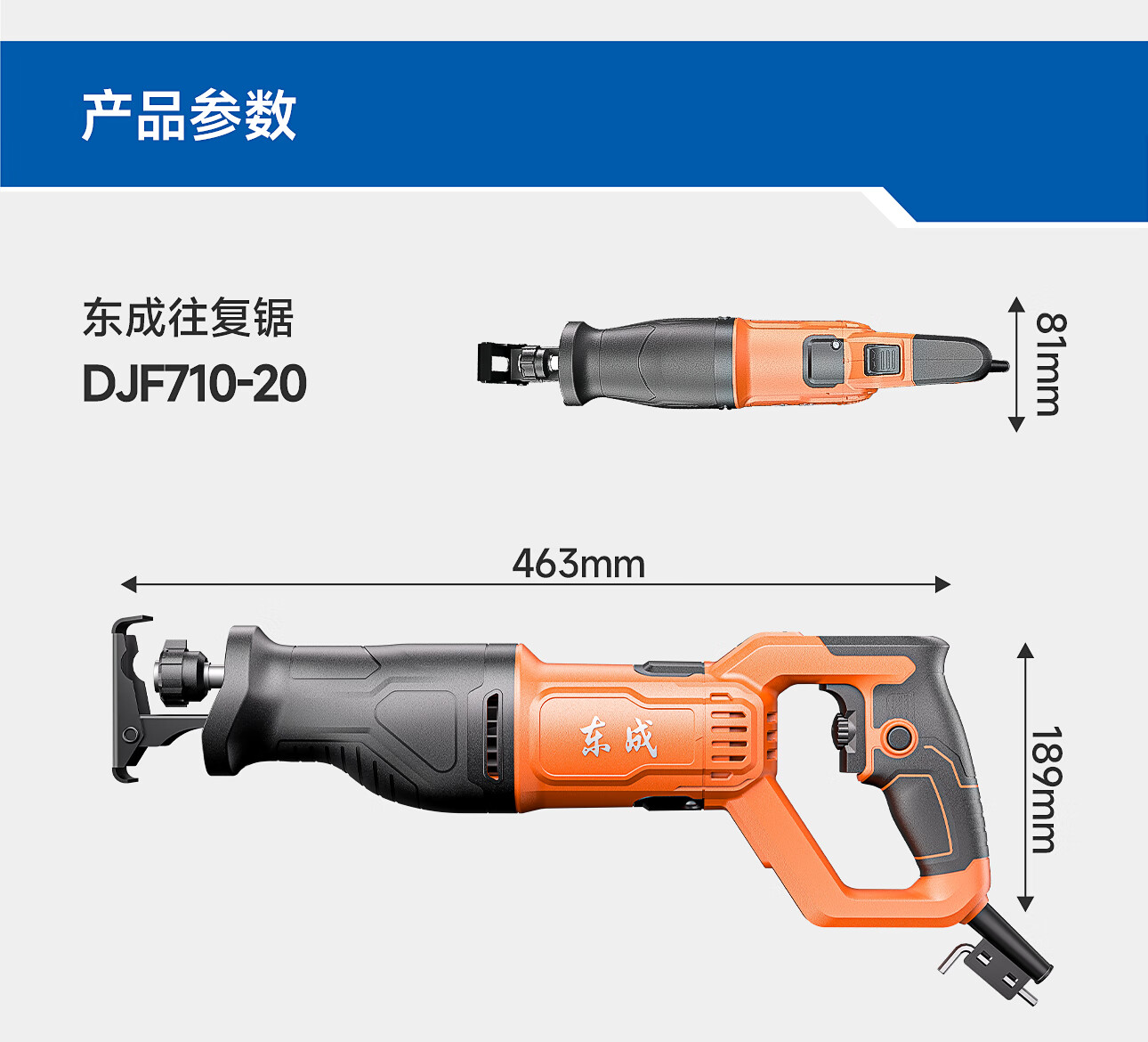 东成 电锯往复锯马刀锯大功率多功能木工手提锯金属修枝切割电动农具 DJF710-20 710W