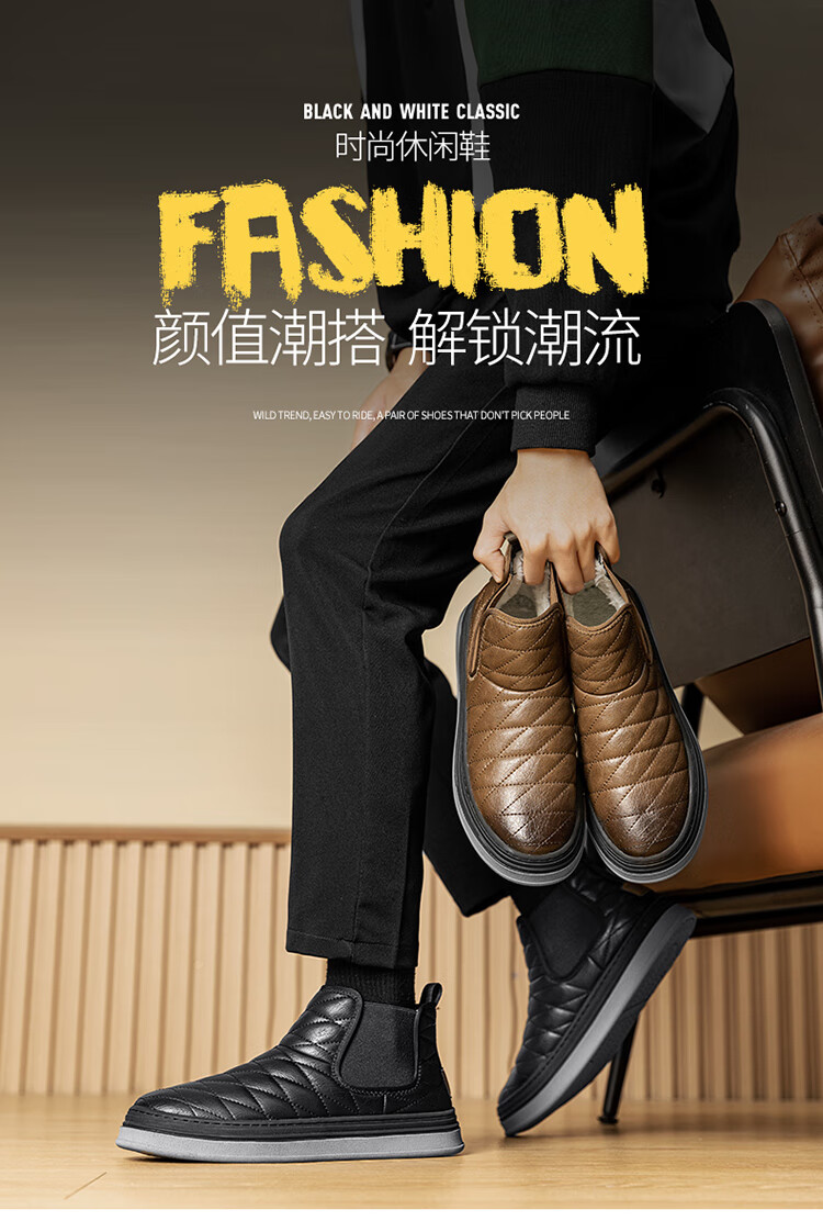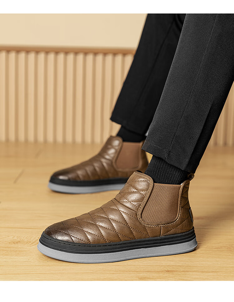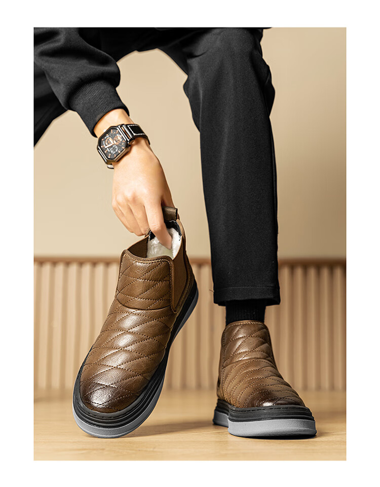 沙驰(SATCHI)男鞋【羊毛皮】防寒保暖雪地靴秋冬棉鞋舒适轻底休闲鞋男靴 卡其(H12A9G0320) 加绒 38 欧码(选小一码)