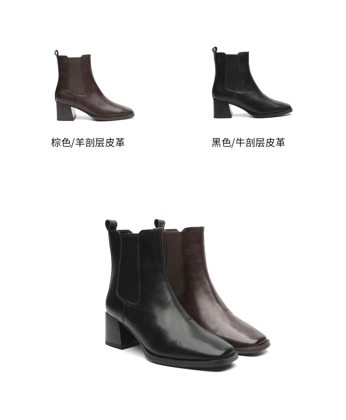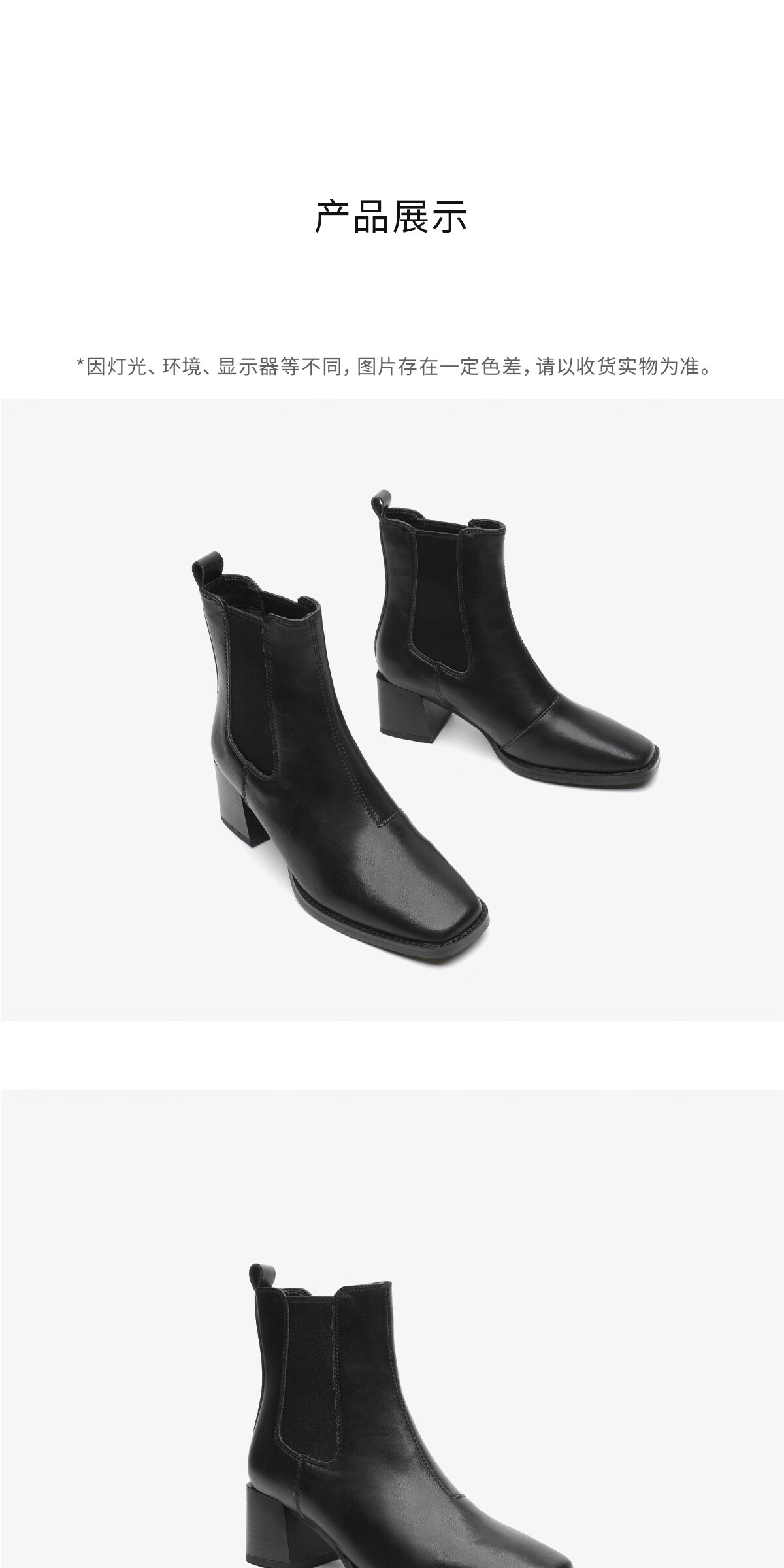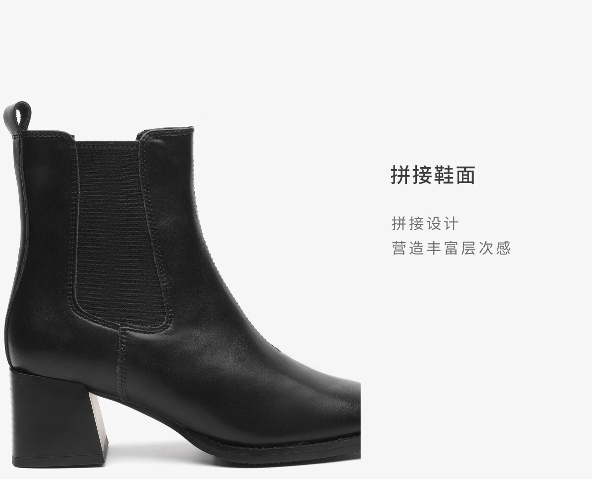月芽儿切尔西靴2025秋冬新款英伦风方头烟筒靴短靴女款马丁靴 绒里黑色01T 34
