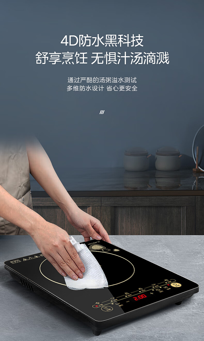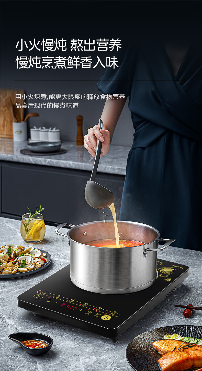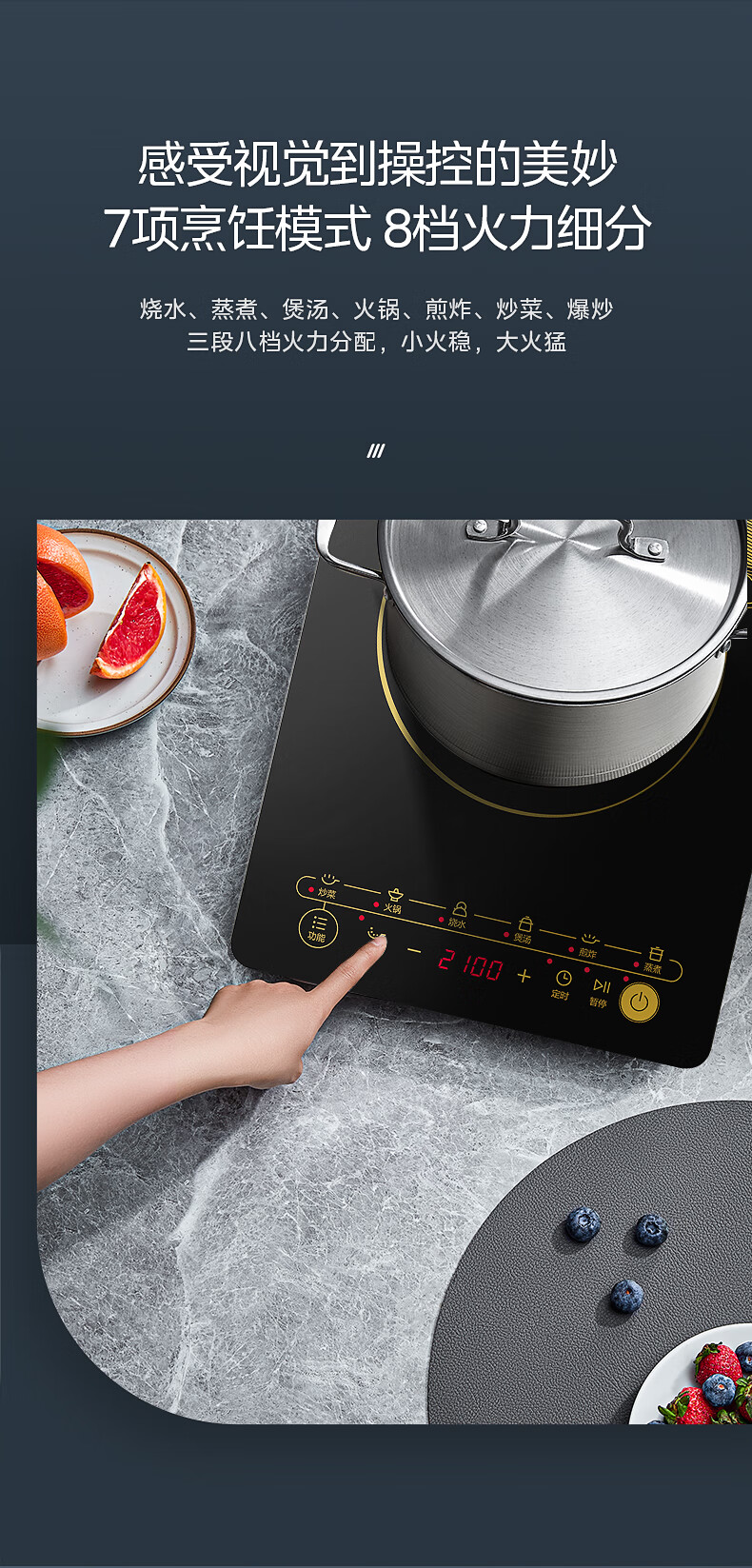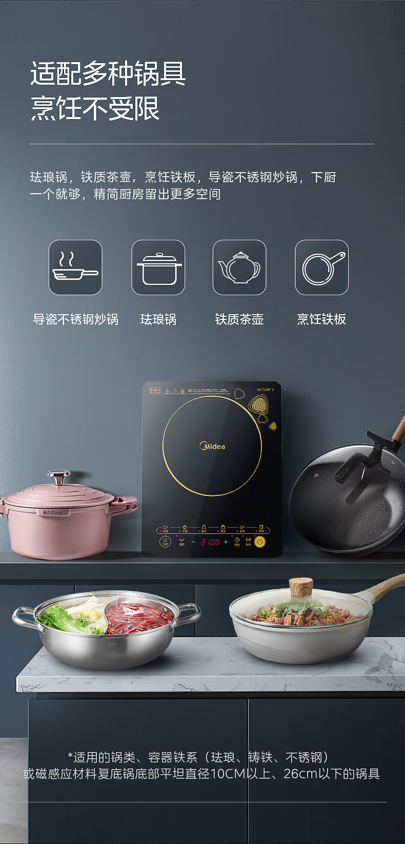 美的(Midea)电磁炉套装家用大功率一键爆炒带锅电磁灶套装火锅电磁炉一体电炒锅WK2102T配双锅
