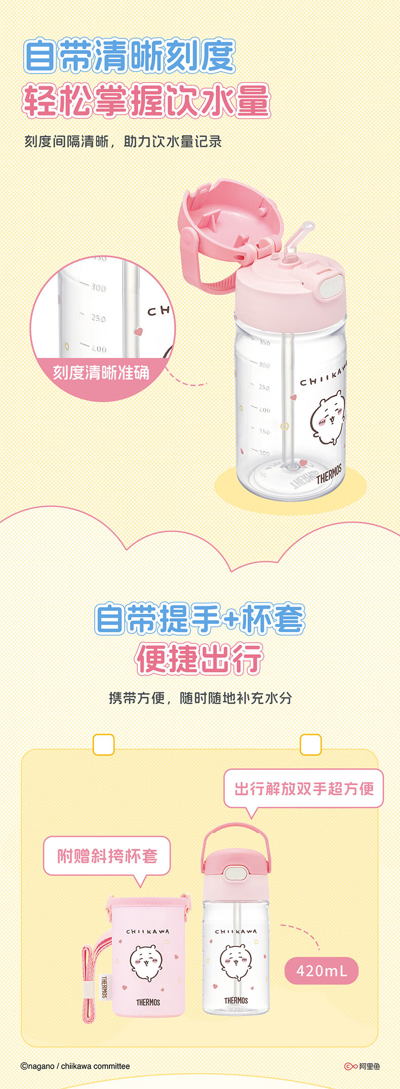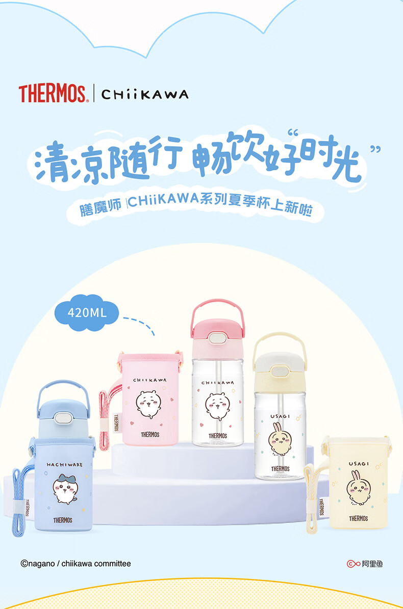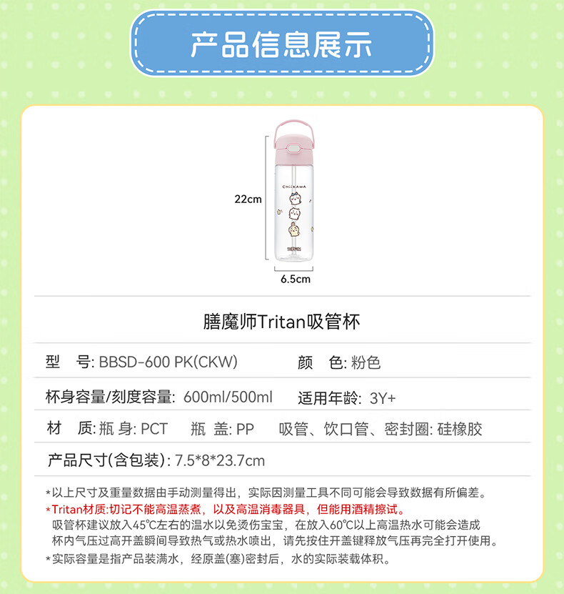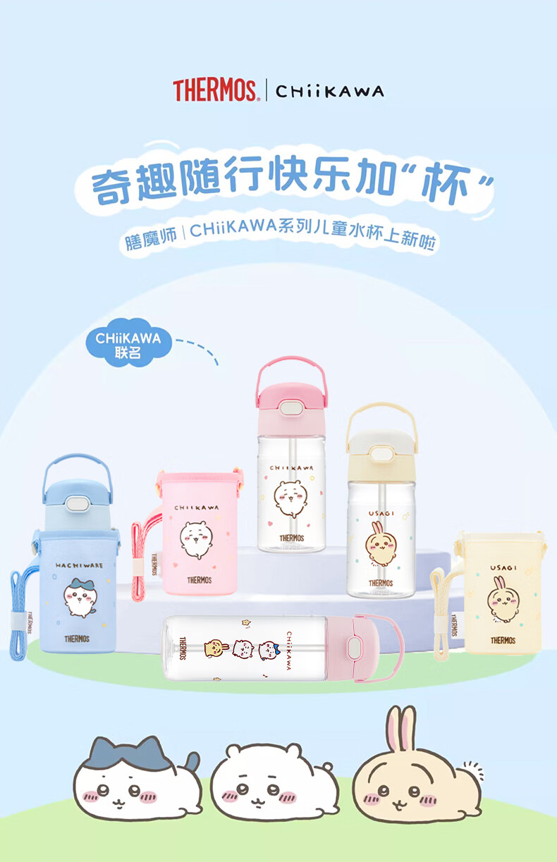膳魔师(THERMOS)儿童夏季水杯chiikawa便携吸管杯提手刻度郊游出行学生杯上学BBSD