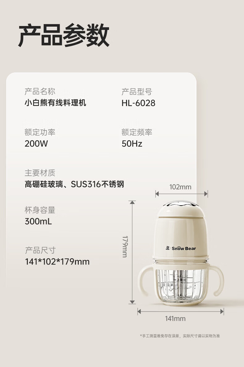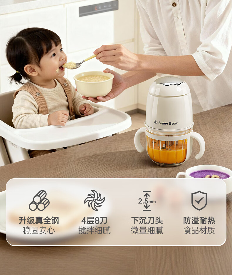 小白熊SnowBear辅食机婴儿小型辅食料理机打泥机宝宝多功能搅拌机6028