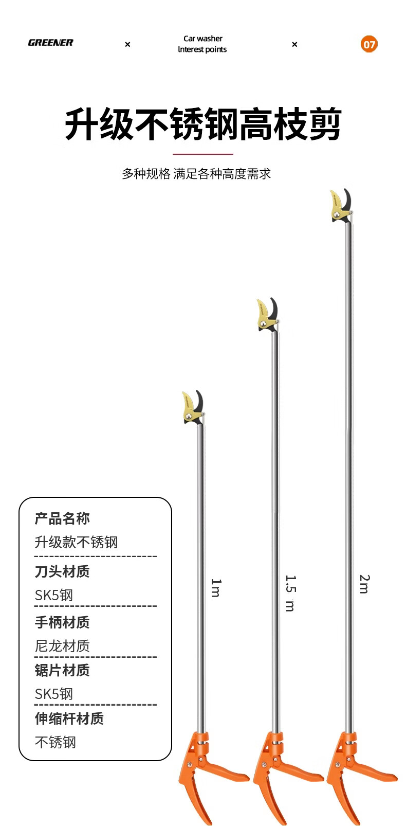 绿林(GREENER)绿林高枝剪树枝专用剪刀高空修枝剪果树长杆修剪器伸缩摘果 【金刃系列】1米高枝剪,不锈钢加厚杆
